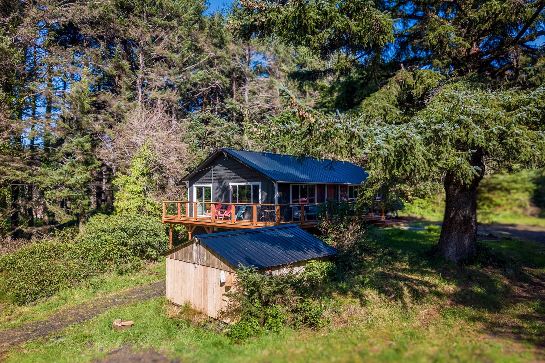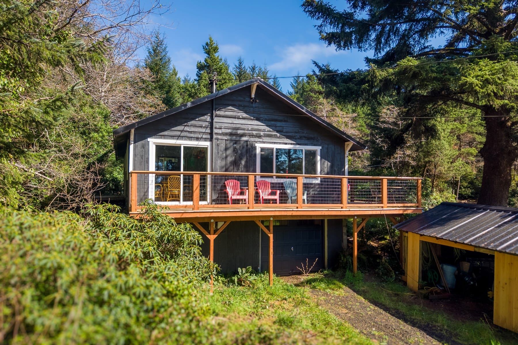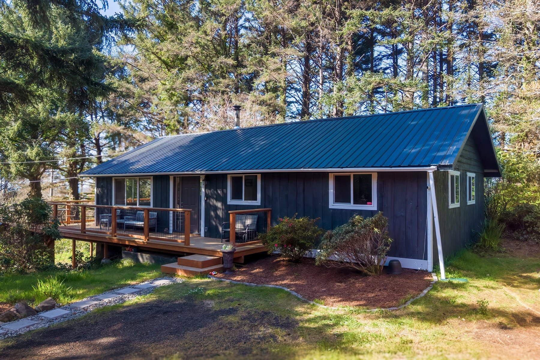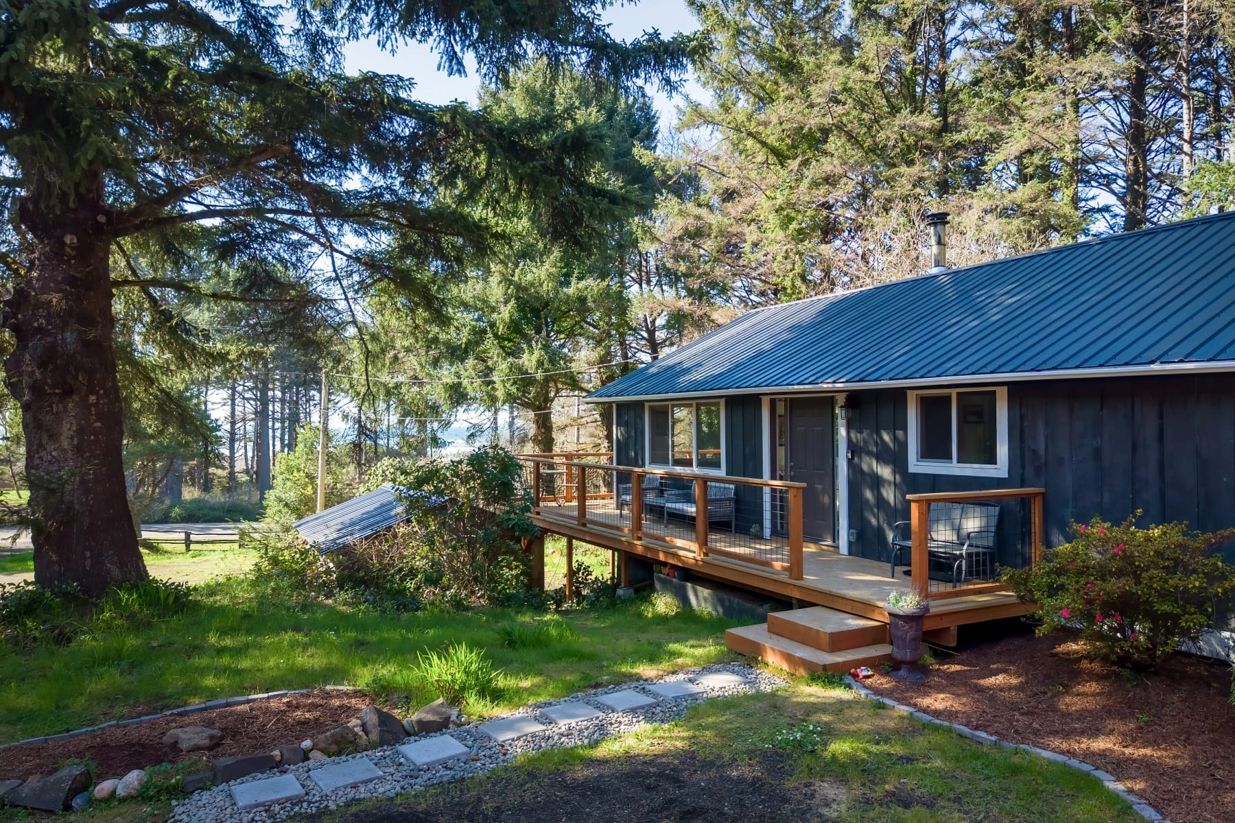Tucked away in a lush forest setting, this completely remodeled coastal retreat offers the perfect blend of privacy, comfort, and ocean views. Set on .21 acres, this 1,196 SF home features 3 bedrooms and 2 bathrooms, thoughtfully updated with stylish LVP flooring, new carpet, and modern finishes throughout. The inviting kitchen showcases stainless steel appliances, beautiful butcher block countertops, and a warm, functional layout ideal for everyday living or entertaining. Enjoy the expansive wrap-around deck where you can take in peaceful ocean views, listen to the sound of the waves, and enjoy the surrounding greenery in total privacy. The property is rich with natural beauty, including established blueberry bushes and a serene forest backdrop that creates a true coastal escape. Beach access is across the Hwy. Additional highlights include RV hookup and a spacious 3-car garage, offering ample room for vehicles, toys, and storage. Whether you're looking for a full-time residence, vacation getaway, or investment opportunity, this home captures the essence of coastal living with comfort and seclusion.