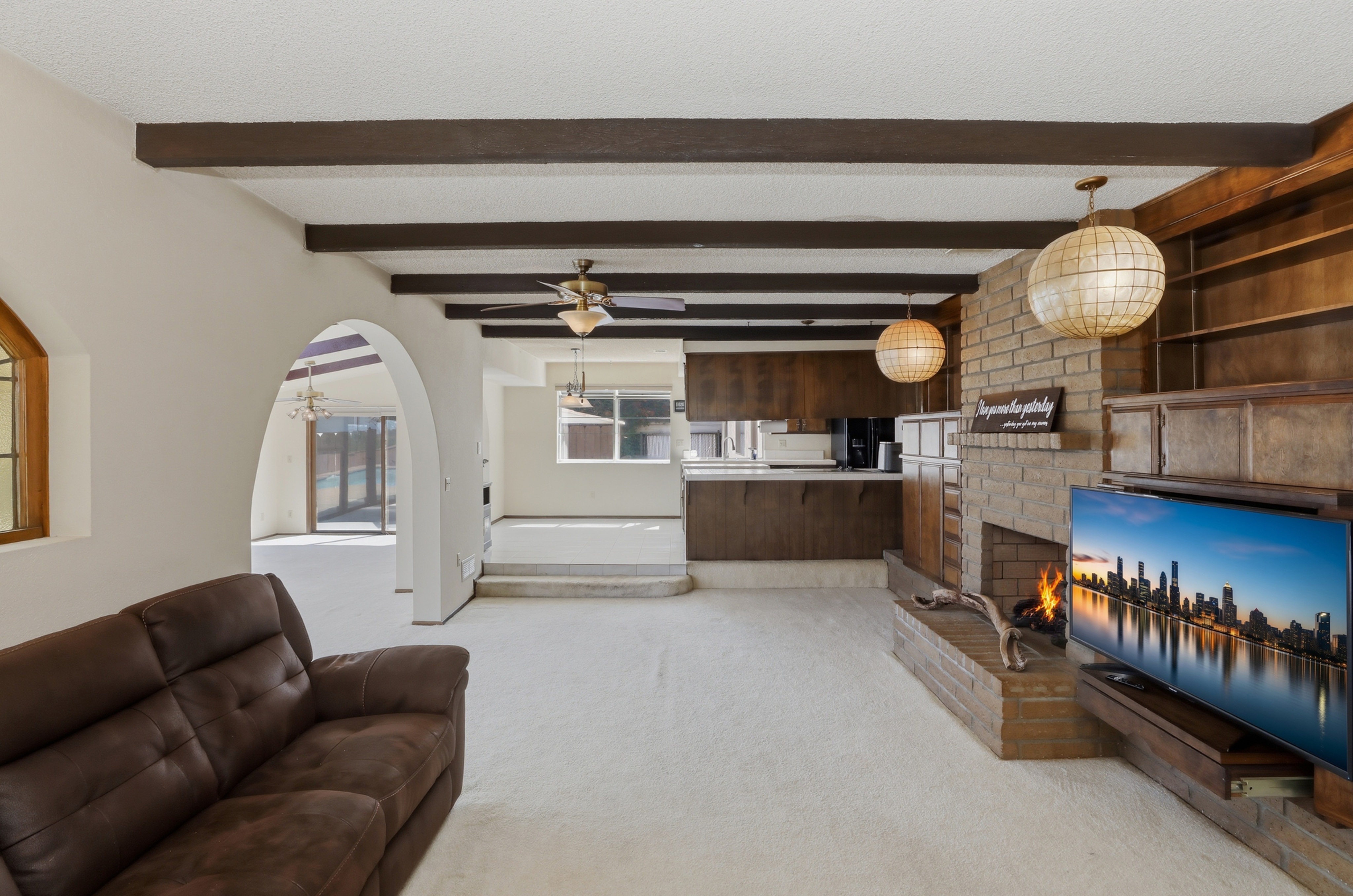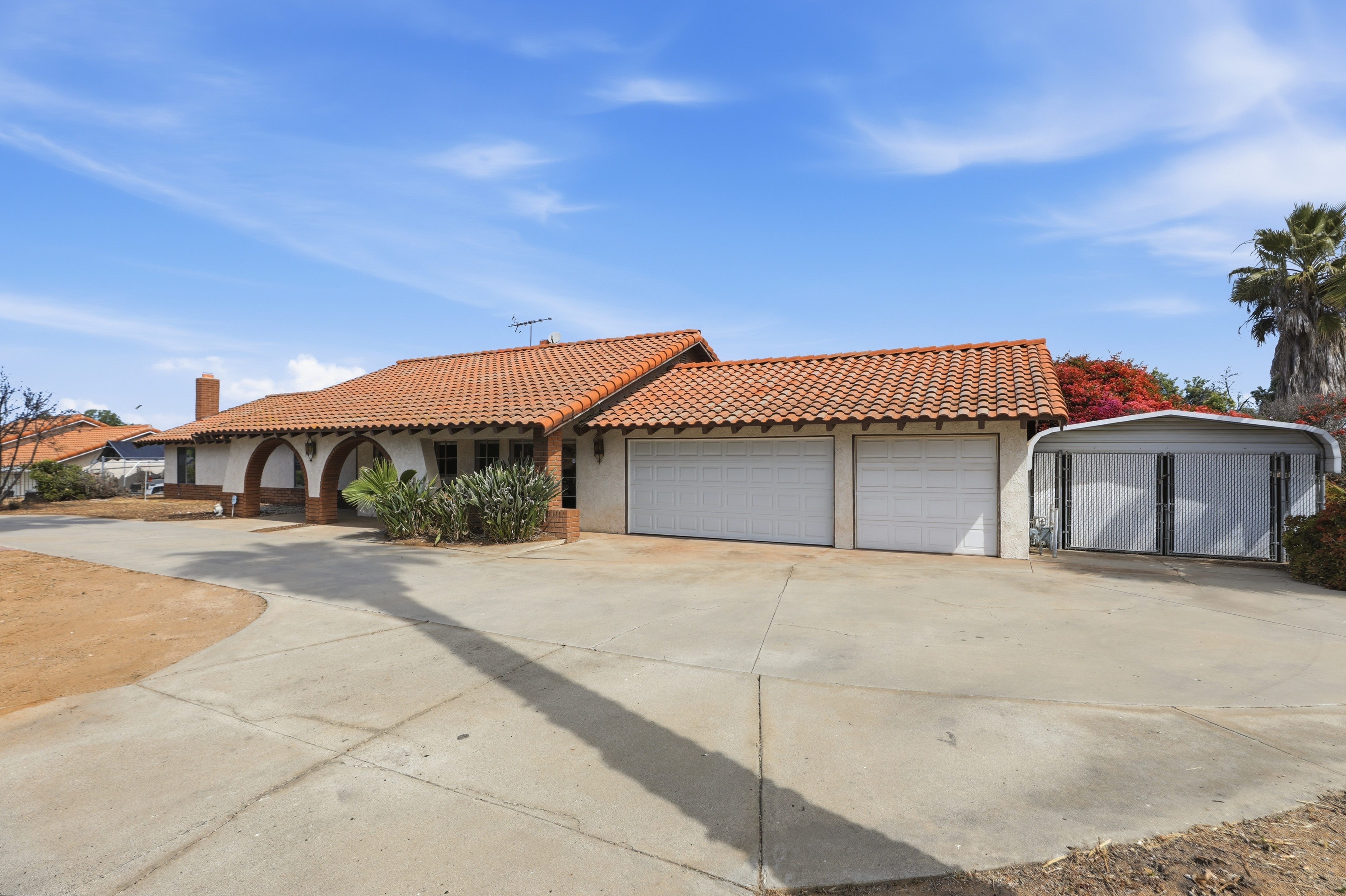 17652 Calle Del CLocated in the highly sought-after Woodcrest community of Riverside, this charming Spanish-style ranch home offers the perfect blend of space, character, and endless opportunity. Set on an expansive 38,333 sq ft flat, fully usable lot, this single-story residence delivers privacy, versatility, and the lifestyle so many buyers are searching for. Spanning approximately 2,340 sq ft, the home features 4 bedrooms and 2 bathrooms with a thoughtfully designed, open-concept layout. The spacious kitchen is the heart of the home, complete with a center island, pantry, and charming garden window, all flowing seamlessly into the living areas—perfect for both everyday living and entertaining. Conveniently located adjacent to the garage, the kitchen adds ease to daily functionality. Rich in character, the home showcases two stunning brick, arched fireplaces—one beautifully positioned to serve both the living room and formal sitting area, and another creating a cozy retreat within the oversized primary bedroom. The primary suite offers generous space and comfort, ideal for relaxing at the end of the day. An added sunroom expands the living space, featuring large glass doors that flood the home with natural light while offering serene views of the backyard. Step outside to your private oasis, where a beautiful pool and spa await—perfect for entertaining in the summer. Enjoy evenings under the patio with twinkling city light views, creating the ideal backdrop for outdoor gatherings. The property is zoned for horse use and offers incredible potential with ample room for an ADU, barn, gardens, RV parking, or a custom workshop—truly a blank canvas for your vision. Additional features include a 3-car garage, covered carport, Flow-Tech water system, and an HVAC system replaced approximately 11 years ago. Located in an established neighborhood with convenient access to shopping, dining, and commuter routes, and within the boundaries of Martin Luther King High School, this home offers both comfort and long-term value. With just a touch of paint and new flooring, this property has the potential to truly shine as a standout estate. A rare opportunity to own a spacious, character-filled home on usable acreage in one of Woodcrest’s most desirable areas. No HOA, priced to sell, and a motivated seller—schedule your private showing today!orral, Riverside, CA 92504