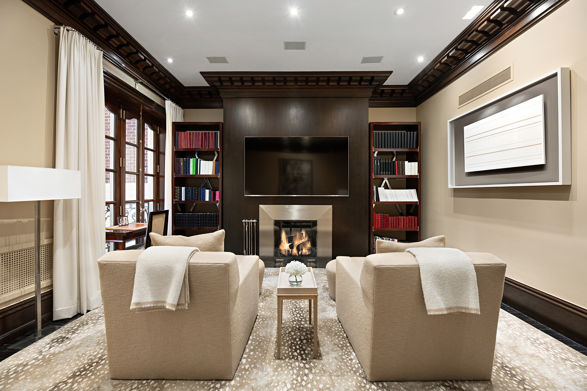 Perfectly situated on one of the city’s most prized blocks, this stunning limestone mansion is distinguished by its elegant yet restrained façade and fortuitous placement just off Fifth Avenue. The house is also most fortunate to be flanked by and across from several houses of equivalent architectural merit, on an especially coveted block. Sun-filled, open and airy, the 22.5-foot wide residence is comprised of a total of five stories plus an immaculately finished basement. The interiors are simply beautiful, and perfectly reflect the very good taste exhibited by the exterior of the house. Moreover, the classic but updated floor plan hits just the right note for today’s lifestyle, while the serene and effortlessly chic rooms are an absolute delight. Entry is into a vestibule with double doors that open into a white marble clad Gallery that imbues the house with a European sensibility. Beyond there is a grand scale Dining Room that very easily accommodates thirty guests. The adjacent eat-in Kitchen and Pantry are absolutely pristine, and newly-renovated with a panoply of state-of-the-art appliances and fittings. Delightfully, the Kitchen benefits from serene outlooks onto the pretty garden. A wide and graciously ascending staircase leads to the exceptional Parlor Floor which is distinguished by a nice big and broad landing, nearly 11-foot tall ceilings, and hand-carved millwork. The tremendous Living Room and elegant wood paneled Library both feature charming tree-line outlooks and wood burning fireplaces. In terms of the private quarters, the very big Third Floor Master Bedroom Suite includes a fireplace, a luxurious and classic white marble bathroom, a large Dressing Area, an abundance of closets, and a lovely Study. The Fourth Floor is comprised of three spacious and sunny bedrooms with ensuite marble baths and very ample closets. And the Fifth Floor, with two bedrooms and baths, is much the same but also includes an utterly charming and most picturesque south facing terrace as well as a pretty planting terrace to the north. This sublime house is a delight in every possible way. Effortlessly, it incorporates the amenities and custom touches now expected for today’s lifestyle with prewar architectural merit and detail treasured by any discerning townhouse buyer.
