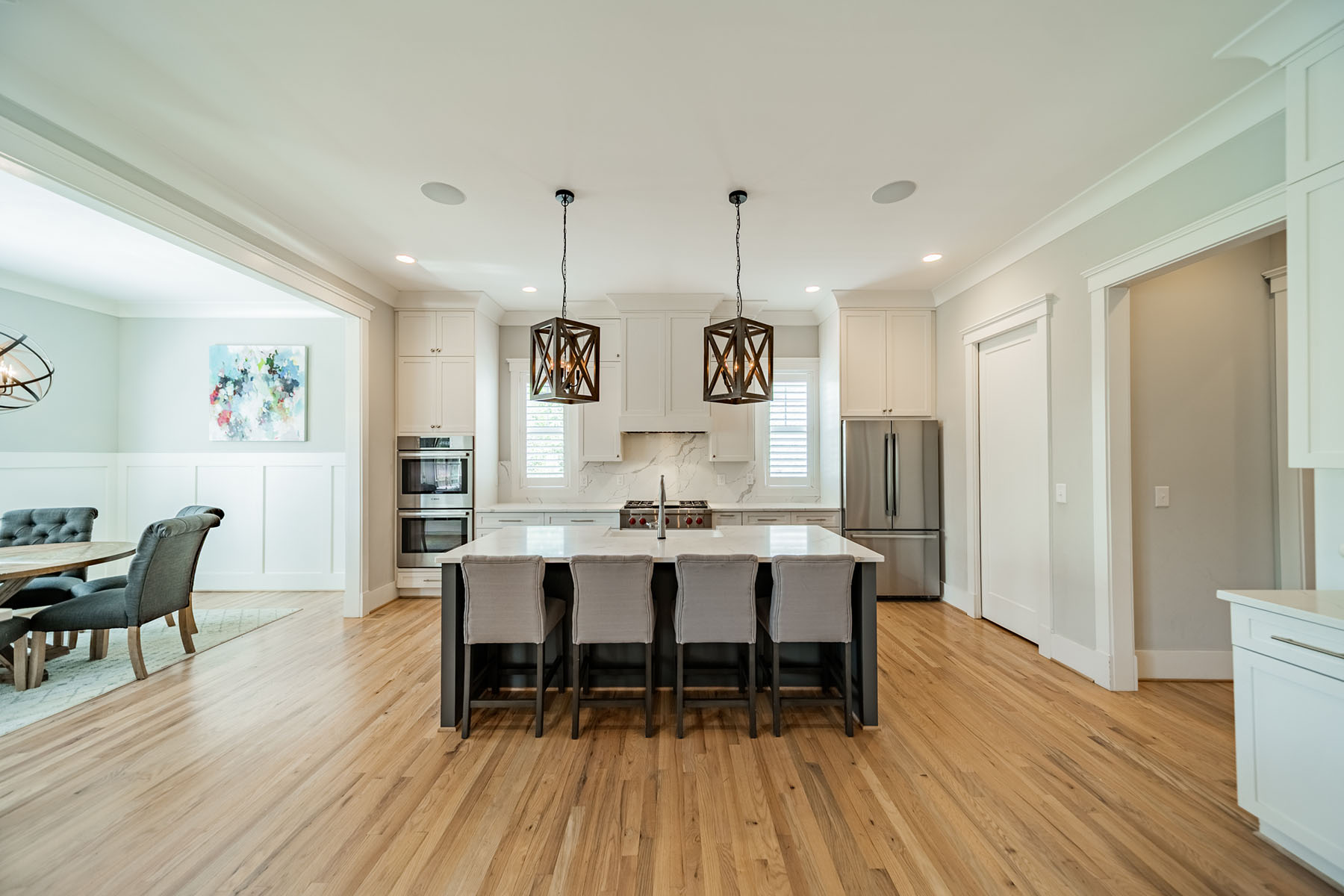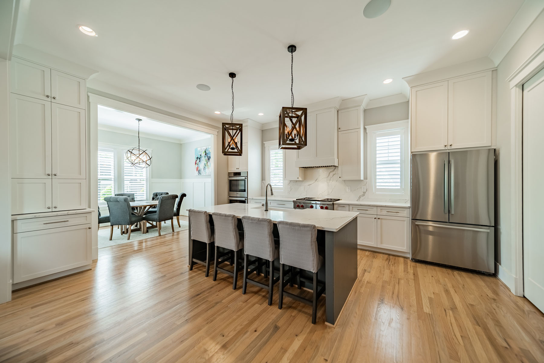 A standout offering in South End, this exceptional single-family residence delivers 3,174 square feet on a private, fenced 0.22-acre lot—an uncommon opportunity in one of Charlotte's most sought-after urban neighborhoods. Designed for a truly walkable lifestyle, the home offers effortless access to Uptown, premier dining, and retail. The chef's kitchen is thoughtfully appointed with custom cabinetry, a Wolf range, Bosch appliance package, appliance garage, and a dedicated coffee station with water supply. An adjacent bar area with ice maker and wine/beverage refrigerator enhances both everyday living and entertaining. The light-filled living space features a generous layout with seamless access to outdoor living, motorized shades, and prewiring for audio/visual integration—aligned with today's modern smart home expectations. A whole-house water filtration system adds an additional layer of comfort and convenience. The primary suite is a true retreat, offering dual custom closets and a beautifully finished bath with elevated, tailored design. Outdoor living is equally impressive, highlighted by a louvered pergola with adjustable airflow and coverage, manual privacy shades, and irrigation in both the front and rear yards. Move-in ready and meticulously designed, this home represents a rare blend of space, quality, and location—positioning it as one of South End's most compelling offerings.