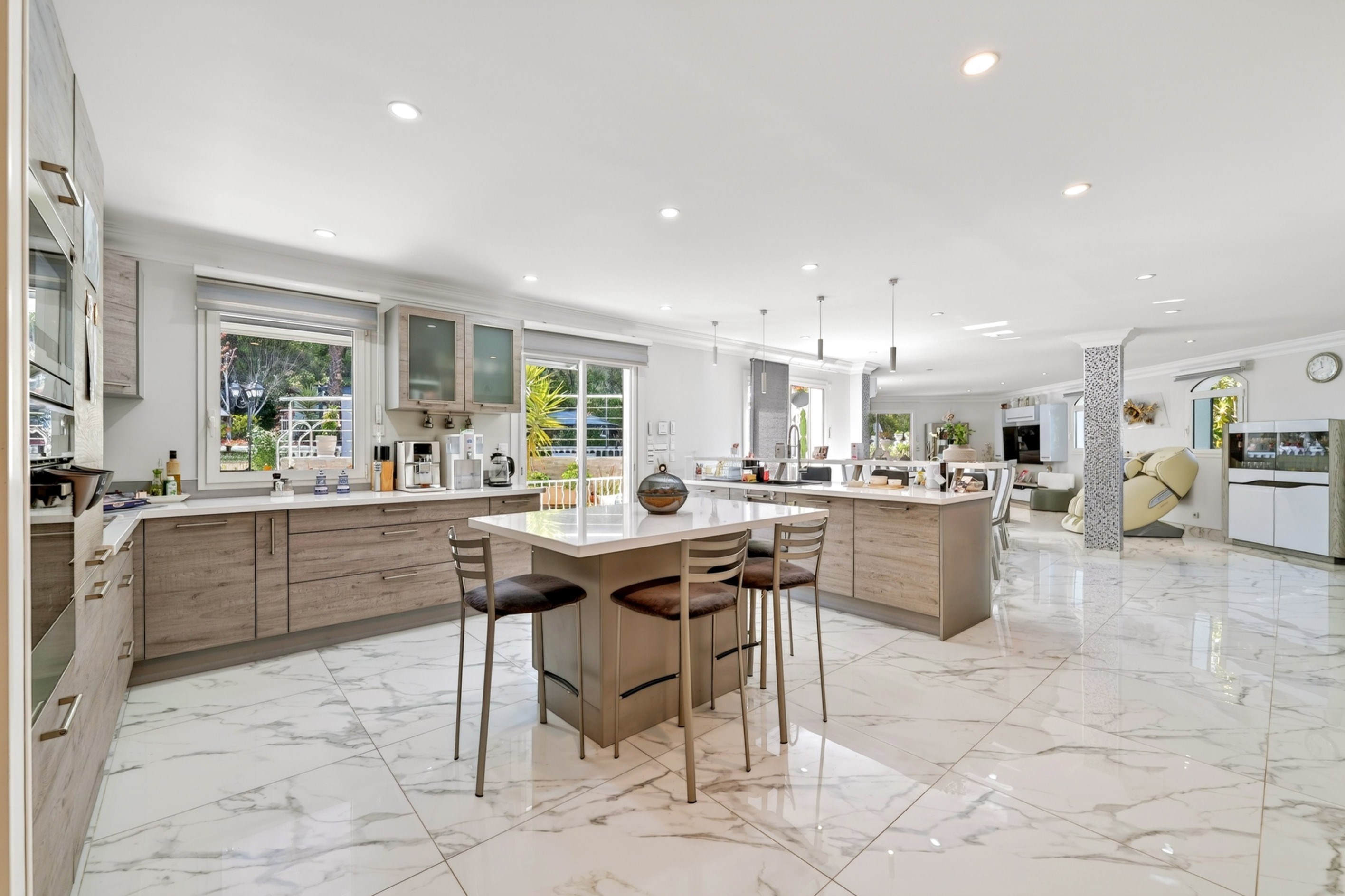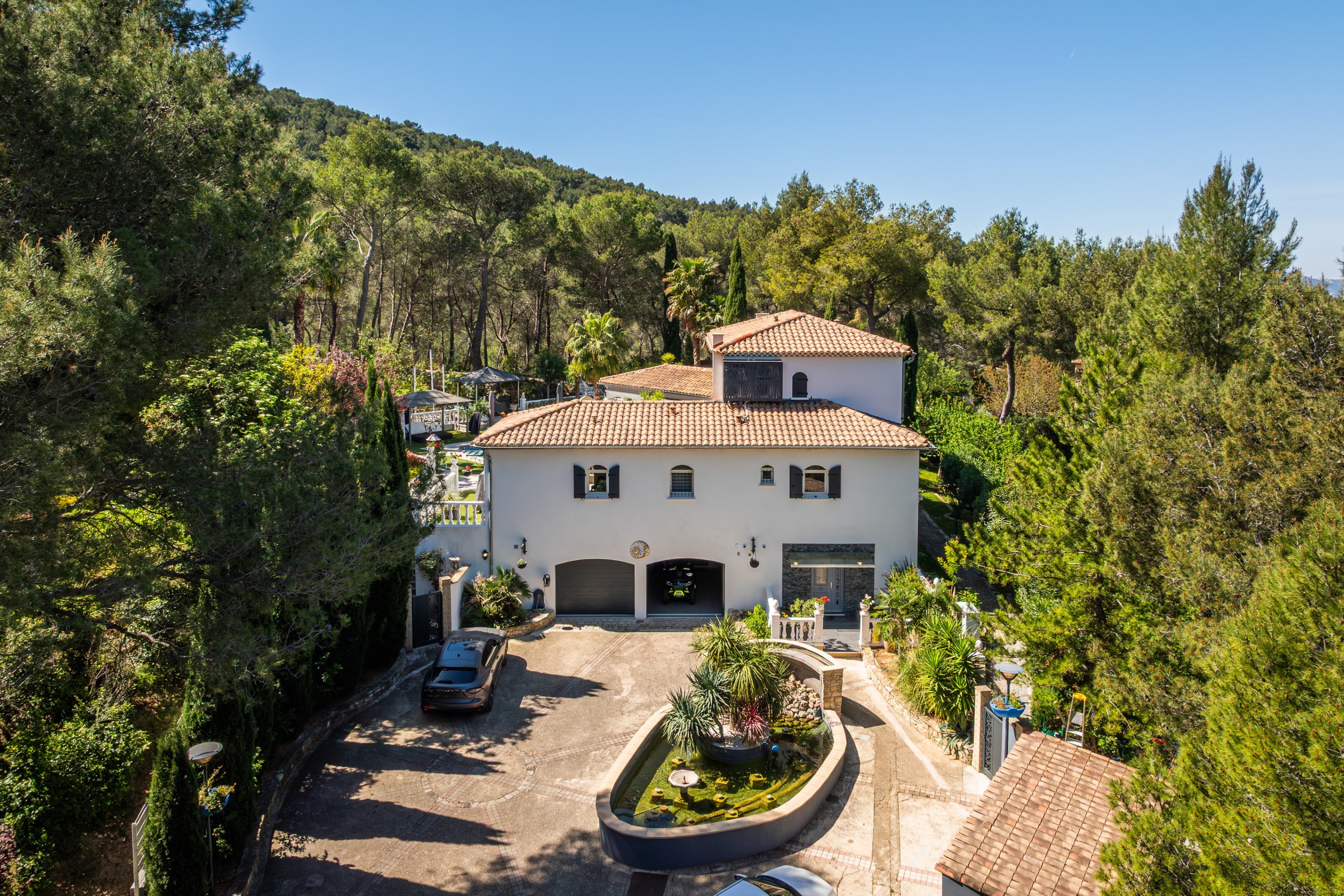 Exclusive listing – For sale in Gémenos, a 401 sqm family property set on an extensive 8,000 sqm garden, featuring a swimming pool and a pétanque court. Set within beautifully landscaped and meticulously maintained grounds, the house captivates from the moment you arrive with its authentic Provençal architecture, light-colored façades, and traditional tiled roof. Outdoors, everything has been designed to fully enjoy the Mediterranean climate: a large sun-drenched terrace, a superb swimming pool with relaxation area, a welcoming pool house, and several shaded spots nestled within a lush garden planted with Mediterranean species. The interior is bright and functional, offering generous living spaces that open onto the outdoors, creating a perfect harmony between comfort and elegance. The layout is ideal for entertaining family and friends in a warm and refined atmosphere, particularly thanks to the open-plan kitchen and spacious living room. The house features three bedrooms, each with its own en-suite shower room. The property also enjoys a privileged setting, with open views over the surrounding hills while remaining close to amenities, main roads, and the charm of the village center. A closed garage and numerous parking spaces on the property complete this exceptional home. A rare opportunity, ideal as a primary or secondary residence, where tranquility meets the Provençal art of living.