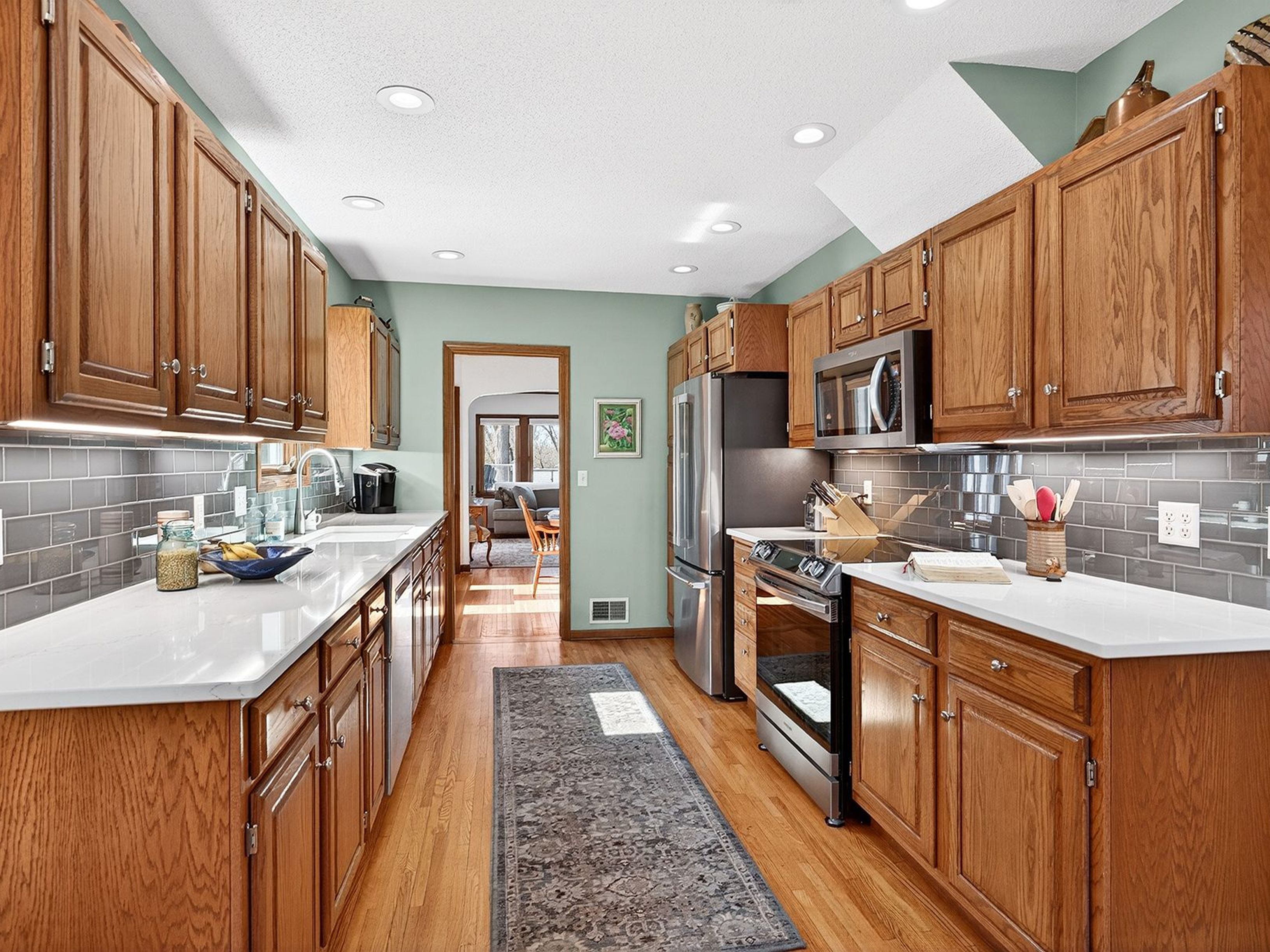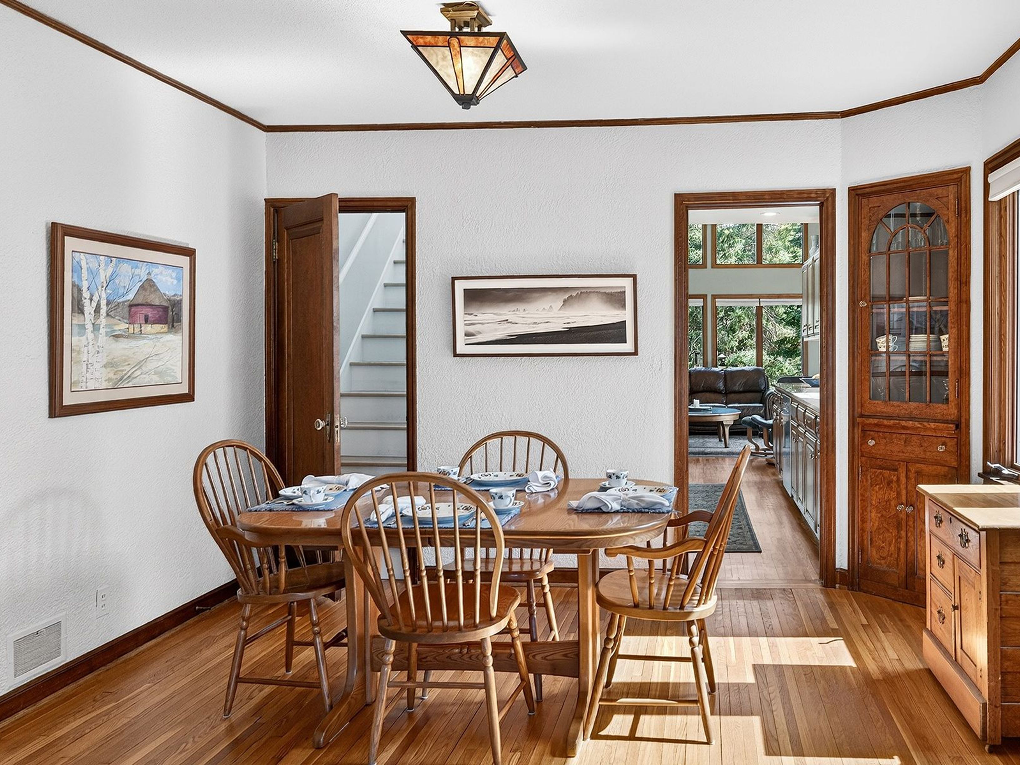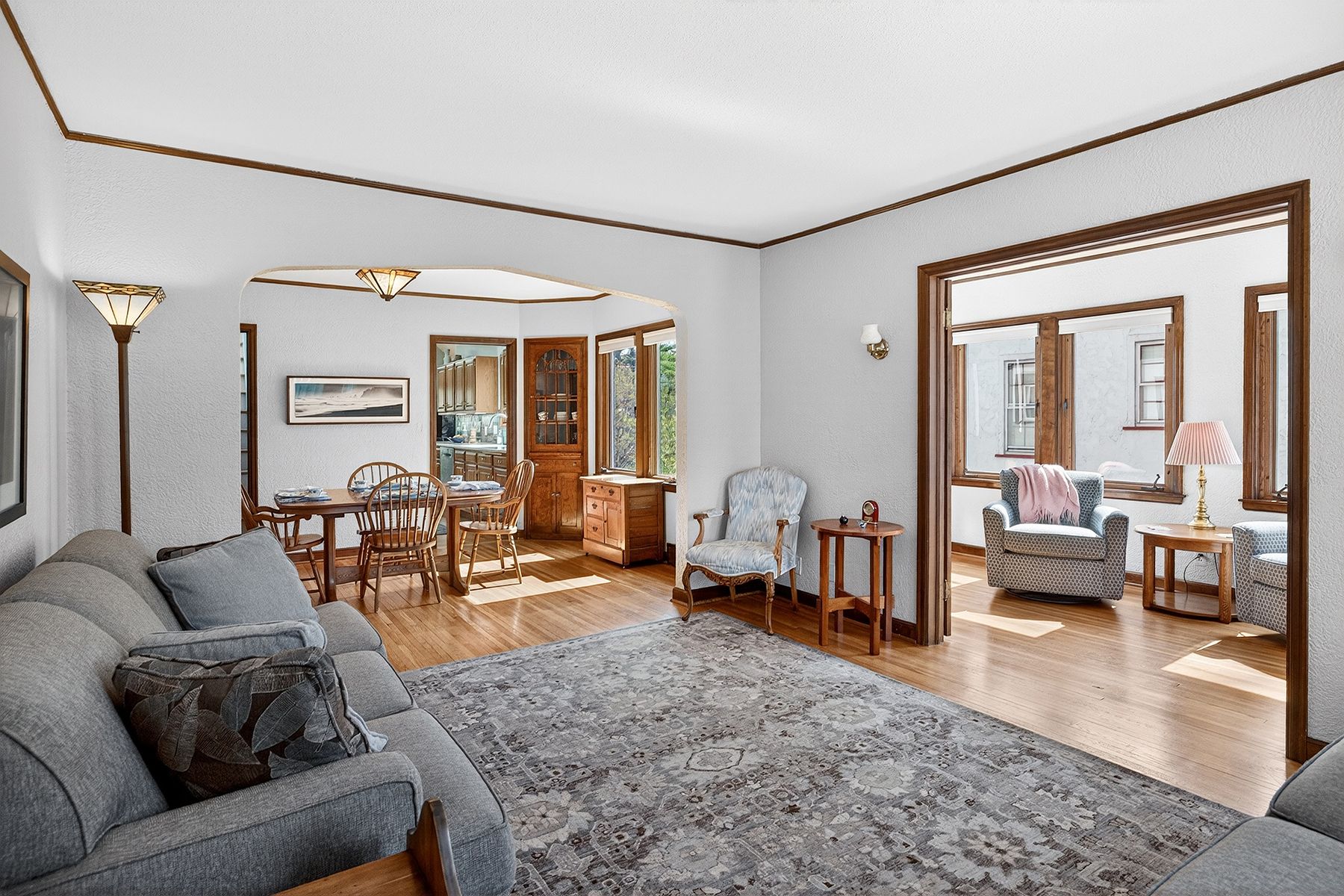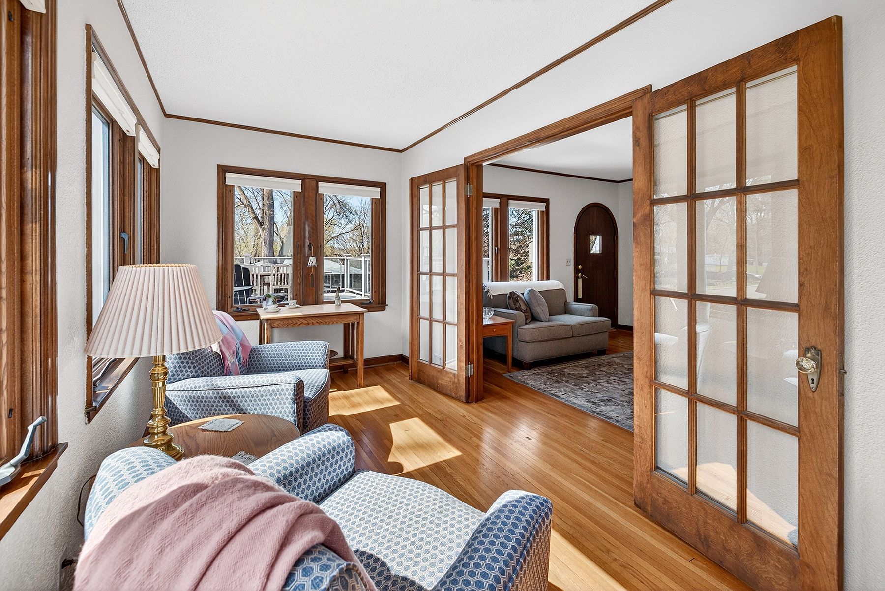 Welcome to this generously expanded gem, nestled on a secluded stretch of York Ave N in Golden Valley, with easy access to Theodore Wirth Park. This lovingly maintained home is a true standout with over 50 years of dedicated ownership and improvement. Pride and care is evident at every turn, this is a property that truly offers more than meets the eye. Enter inside to discover a bright, welcoming interior filled with natural light, highlighted by a stunning vaulted great room and beautifully preserved original hardwood floors. The updated kitchen blends modern convenience with timeless charm, while the home’s original character shines throughout. Upstairs, the private primary suite provides a comfortable retreat with a bonus space, and the finished basement adds valuable living and entertaining space. An east-facing sunroom on the main level with elegant French doors is the perfect spot to start your day. Outdoors, you’ll find not one but two incredible deck spaces, ideal for relaxing or hosting. The south-facing front deck with glass balustrade is a testament to dreams come true, and the rear deck overlooks a lush, natural oasis that offers both beauty and privacy. An attached tandem garage adds practicality to this already impressive home. A rare opportunity to own a property where charm, thoughtful updates, and true pride of ownership come together in one exceptional package.
