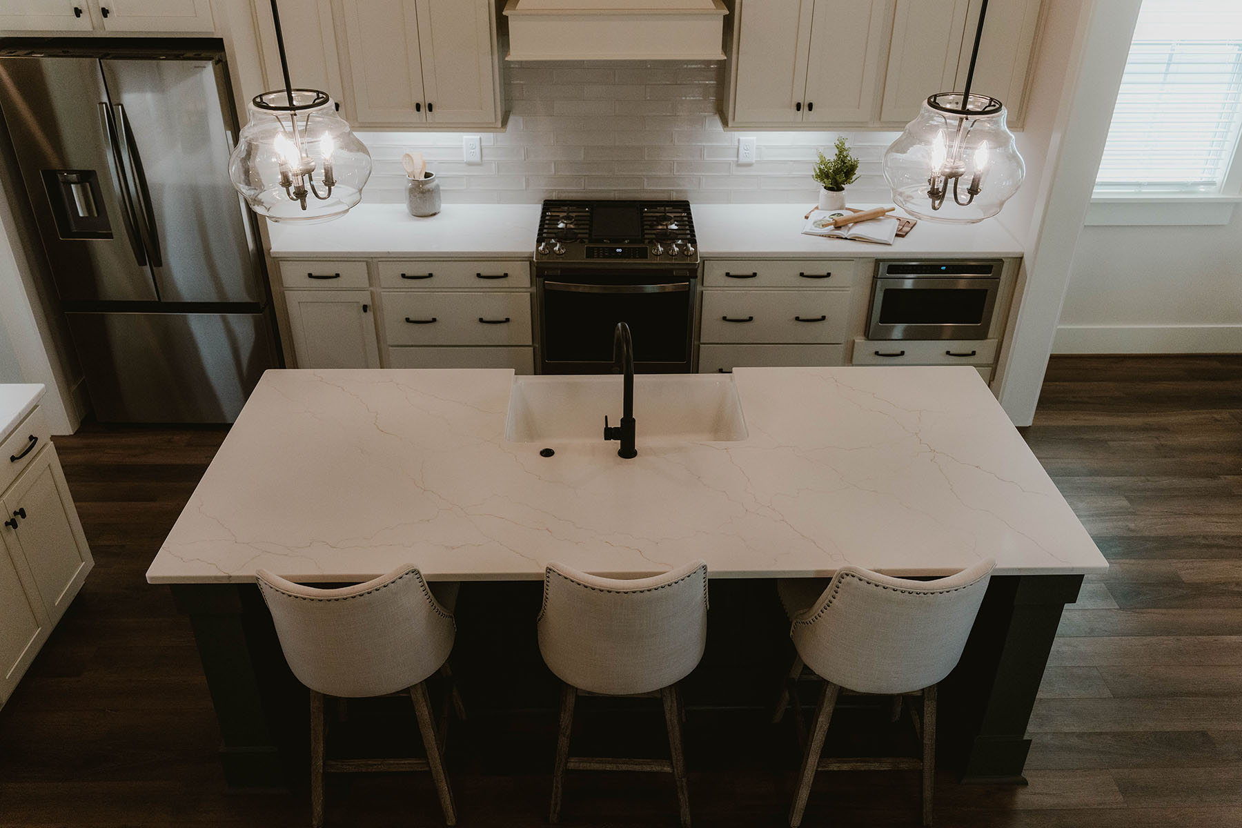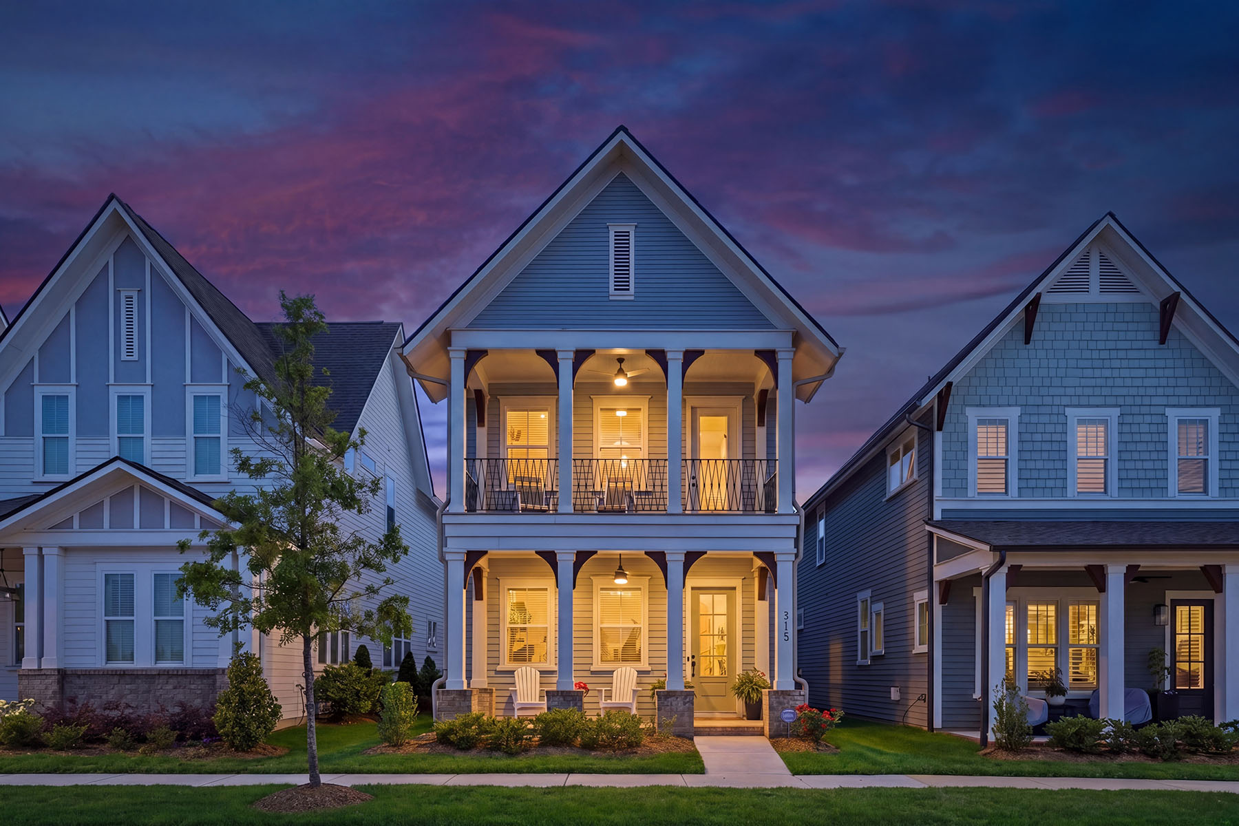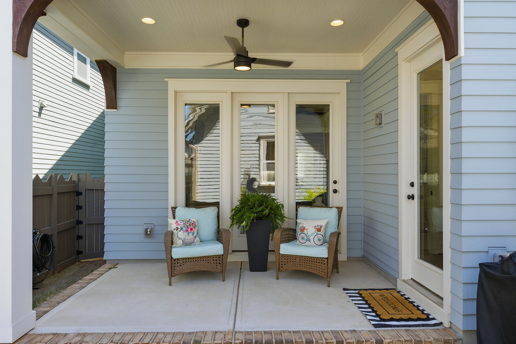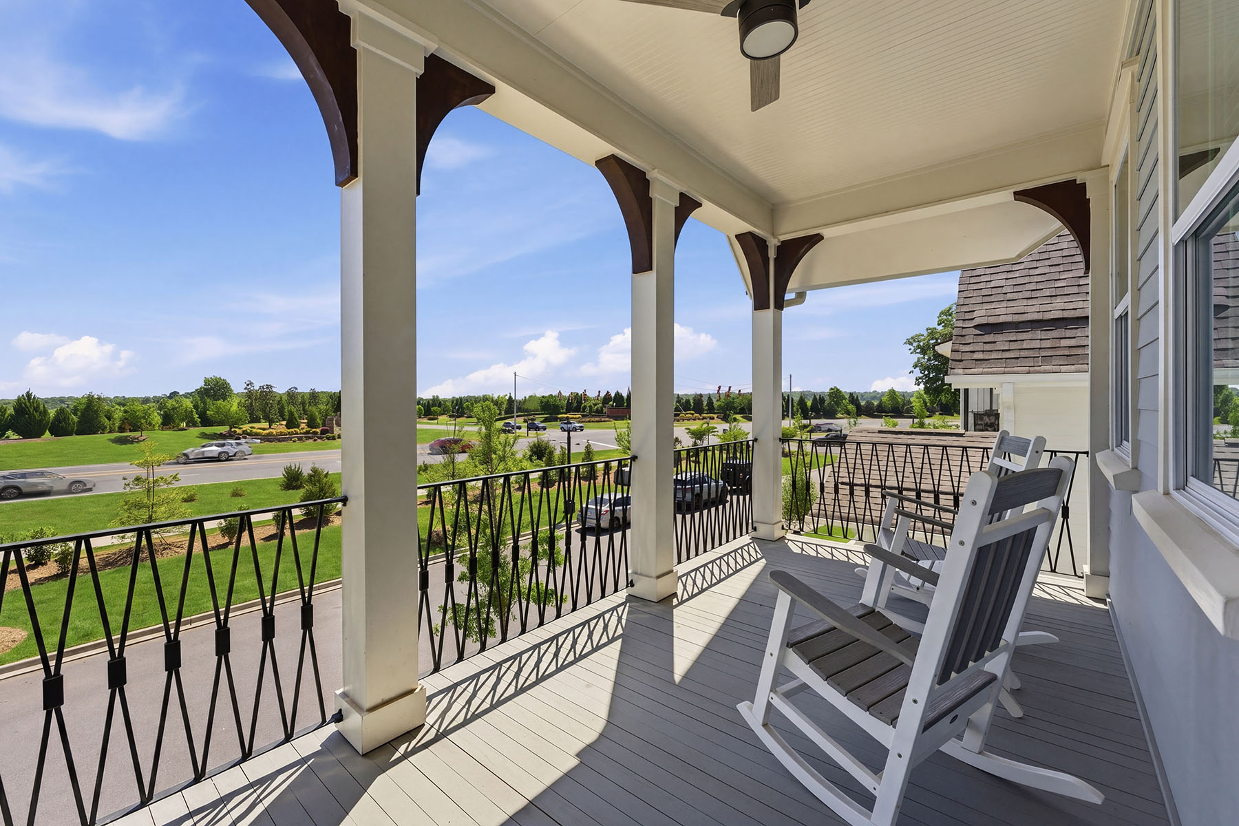 Welcome to 713 Barrel Alley in Fort Mill, South Carolina, a newly constructed residence built in 2024 by Saussy Burbank that reflects classic Southern design with Arts and Crafts influence. Framed by double-decker covered porches, the home presents a balanced approach to architecture and livability, where outdoor spaces are as intentional as the interiors. A covered front porch introduces a welcoming foyer, setting a composed and inviting entry point. Just beyond, a dedicated dining room offers a defined space for gatherings, positioned to support both everyday living and more formal occasions. The main living area unfolds with continuity, featuring luxury vinyl plank flooring, coffered ceilings, a ceiling fan, and a gas fireplace that anchors the room. A thoughtfully placed drop zone provides a functional transition to the rear of the home. The kitchen is designed with both utility and refinement in mind, complete with quartz countertops, a farmhouse sink, a gas oven and cooktop, and extensive cabinetry. A walk-in pantry or butler's pantry enhances the space with custom shelving and a designated coffee station, supporting both storage and daily routines. Upstairs, the primary suite is filled with natural light and offers direct access to a covered porch, creating a private extension of the living space. The en-suite bath includes a dual-sink vanity, zero-entry shower, and a walk-in closet with custom shelving, designed for both comfort and organization. Two additional bedrooms are well-proportioned, each offering ample natural light and flexible use. The outdoor setting continues with an enclosed backyard and a covered rear patio, complemented by a two-car rear-load garage. Each element of the home reflects a cohesive approach to design, function, and Southern architectural character. Showings begin April 25. Schedule your private tour to experience the design, layout, and outdoor living this residence offers.