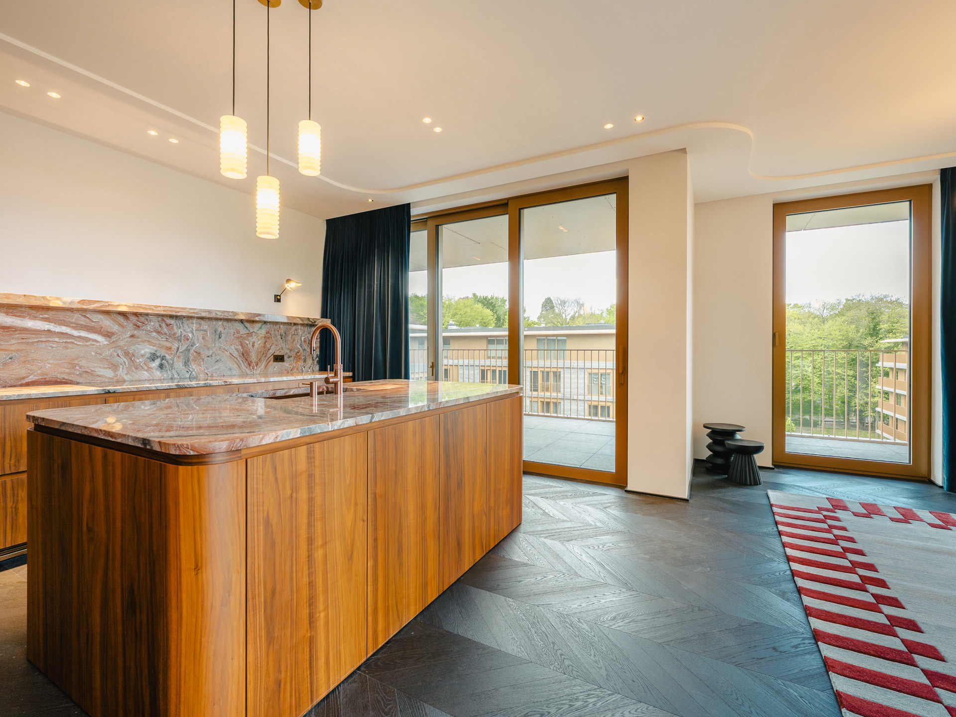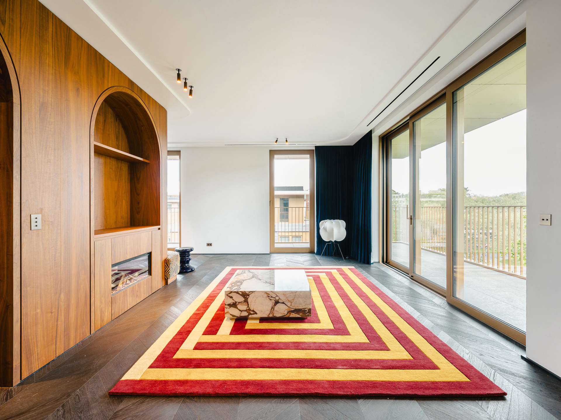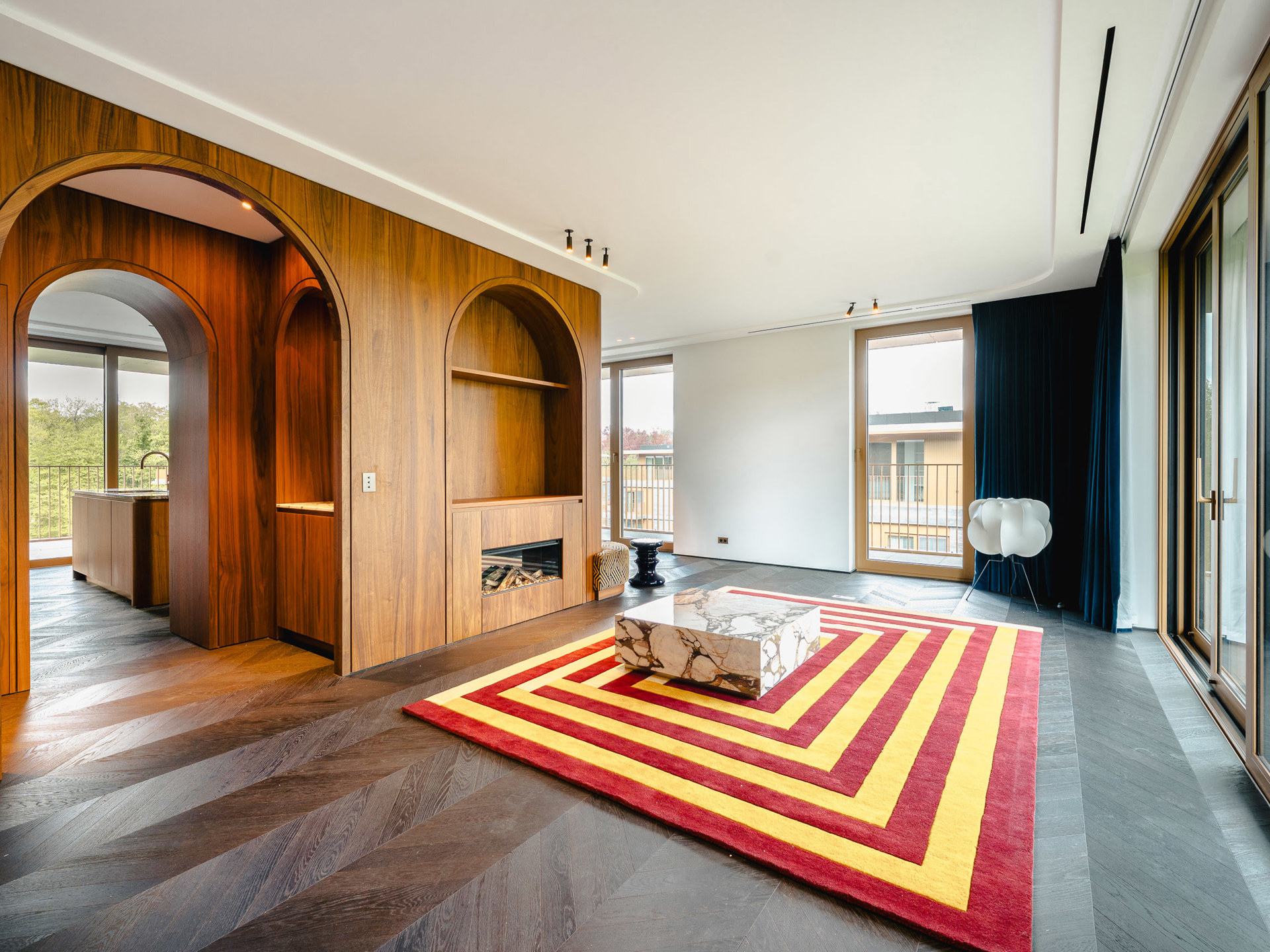 Ideally located on the edge of the Sonian Forest and in close proximity to the Mix cultural center, this brand-new, fully furnished penthouse offers approximately 168 m² of gross floor area (as per the Energy Performance Certificate - EPC) and features two bedrooms, an office, and a spacious wraparound terrace. The apartment, situated on the 4th and top floor, boasts high-end finishes. It opens onto an entrance hall with a cloakroom and guest toilet. The living room features a gas fireplace and a fully equipped, high-end American-style kitchen with marble countertops, open to the dining area (including a steam oven, hot and sparkling water). The sleeping area comprises a master bedroom with a dressing room and ensuite bathroom, a double bedroom (or a bedroom and an office), and a separate shower room. A separate laundry room completes the property. The entire apartment is bathed in light thanks to large bay windows opening onto a south-facing terrace of approximately 25 m². Other: company lease possible, air conditioning in the living room and master bedroom, built-in storage, underfloor heating, triple glazing, video intercom, double-flow ventilation (MVHR), cellar and wine cellar, 5 parking spaces available, electric vehicle charging station, common charges of €300. (EPC): pending. Watermael-Boitsfort is a wooded municipality with numerous shops. For further information, please contact Melody Bingoni at +32 (0) 2 640 08 01.