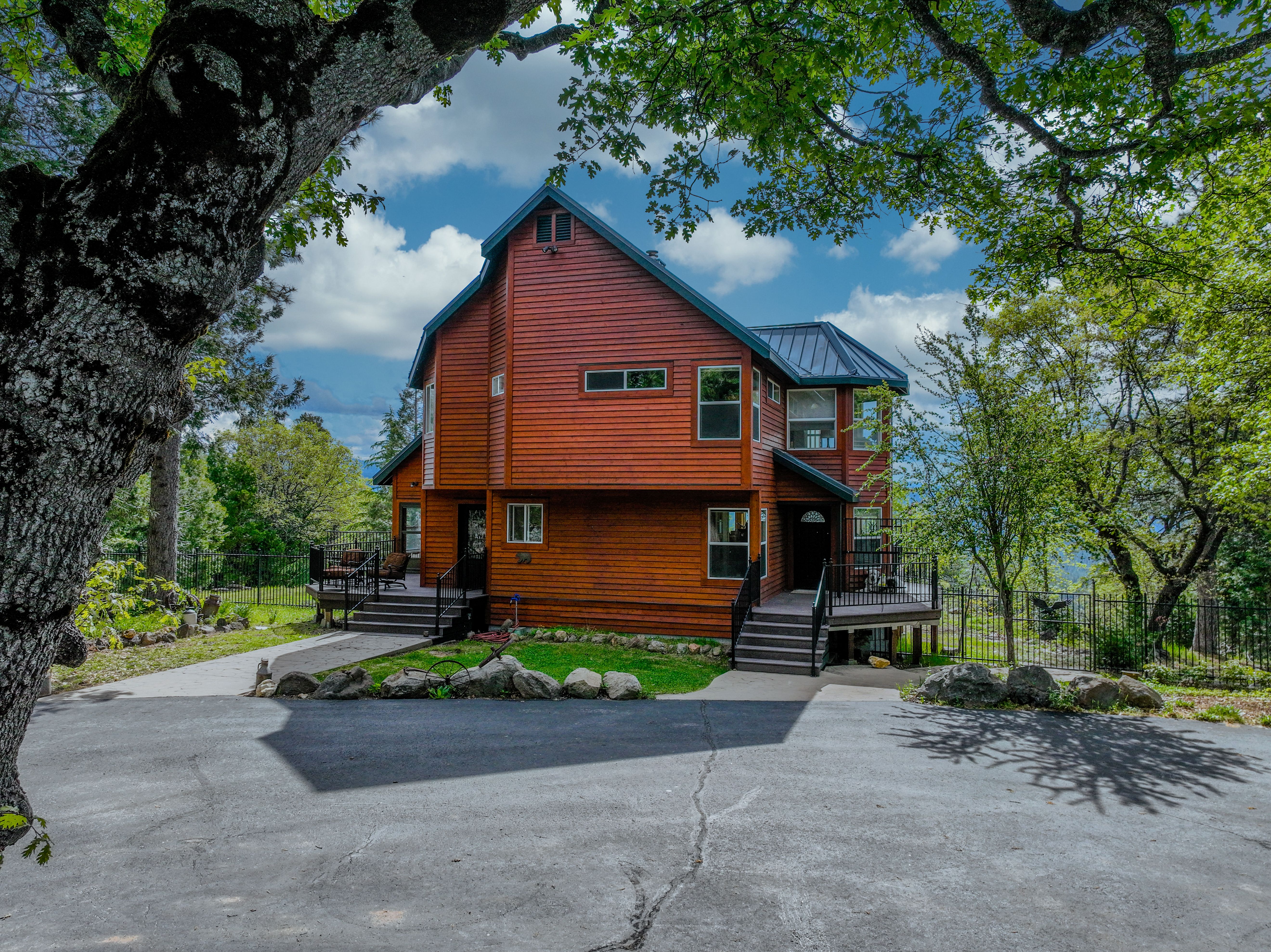 Peaceful canyon views beyond your dreams! Overlooking Blue Canyon with train tracks nestled below, enjoy the occasional whistle echoing through the landscape. This cozy Truckee/Tahoe-style cabin offers mountain charm at half the price, just 55 minutes away. Built in 1993, the home features an upgraded kitchen with granite countertops and a Wolf stove, perfect for any chef. Downstairs includes a versatile office/bedroom with a Murphy bed cleverly disguised as beautiful cabinetry. The family room is warmed by a wood-burning stove, while upstairs offers a loft bedroom with a sitting area leading to the primary suite. Relax in the primary bath's Jacuzzi tub after a day exploring nearby trails. Ideal horse property with barn, two stalls, hay storage, large fenced area, and round pen. A mechanic or toy enthusiast's dream with an oversized garage for RV, boat, and more. This is a must-see!