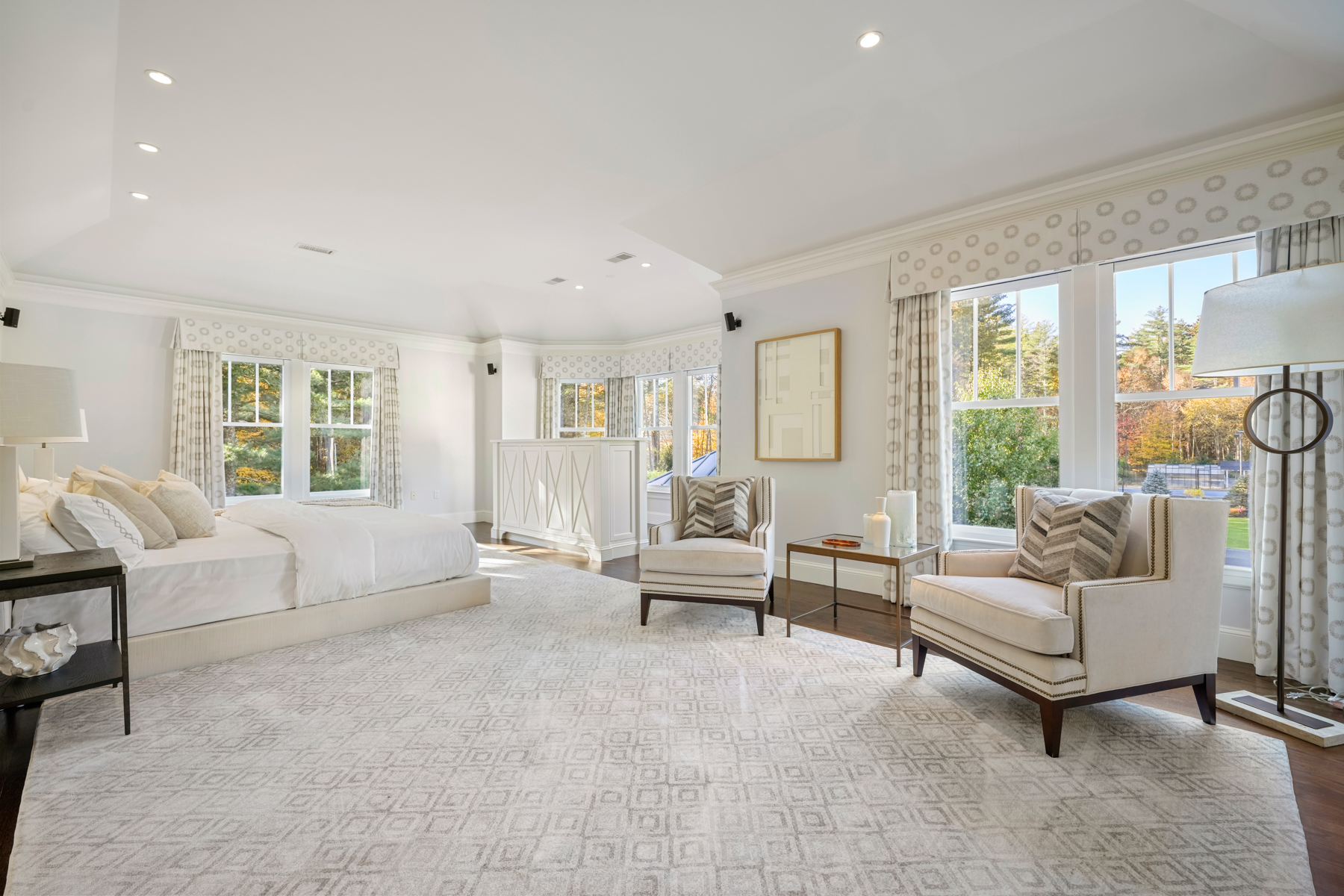 This exceptional 6-acre estate offers supreme privacy and tranquility on a quiet cul-de-sac bordered by conservation land and completed fenced in with three gated driveways. The luxurious main residence includes seven bedrooms, a gourmet kitchen with scenic views, solarium, library, private theater, billiards room, and a state-of-the-art fitness gym with infrared room, juice bar club house with a connecting wing to the Indoor Outdoor Heated Pool with spa features for year round use. Impeccable grounds feature a heated driveway, greenhouses, fruit orchard, tennis court, three separate guest accommodations, and a commercial kitchen with chef's suite. A multi-car garage completes the offering. Just minutes from historic downtown Concord and top equestrian destinations, this secure, secluded retreat blends unmatched luxury with convenient New England access. Within minutes to Bedford Airport and New England's premier private boarding schools. Multi-Generational Living under one roof!