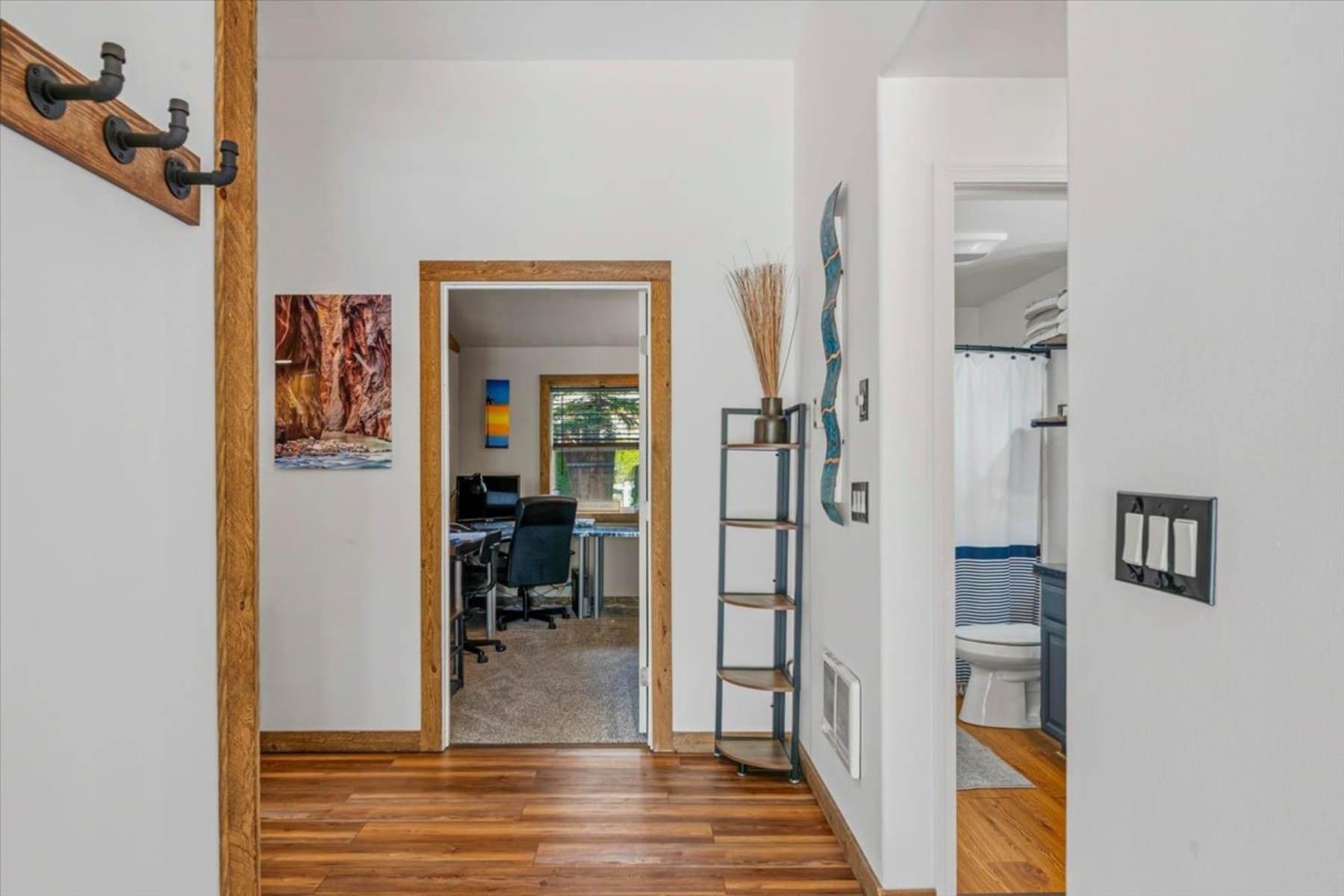 Experience the ultimate high-desert compound, where rugged utility meets refined luxury on a 1.24-acre corner lot. The premier 2,560 SF industrial shop (64'x40') completed in 2022, features a versatile finished shop and a full RV hookup for your adventure rig. The 1,483 SF residence has been elevated with sleek new flooring, high-efficiency AC, and custom countertops. This modern farmhouse is offering 3 bedrooms, office, plus a flexible bonus room. Outside, a solar-heated salt water pool, hot tub, and cabana bed anchor a private resort-style backyard, complete with a put-put course, chicken coop, garden beds, and a dedicated dog run. The fully fenced grounds are meticulously maintained by a multi-zone timer irrigation and sprinkler system, ensuring lush landscaping with ease and efficiency. Whether you are housing a massive fleet or hosting poolside, this property delivers a turnkey lifestyle for the modern hobbyist. This property is a must see!