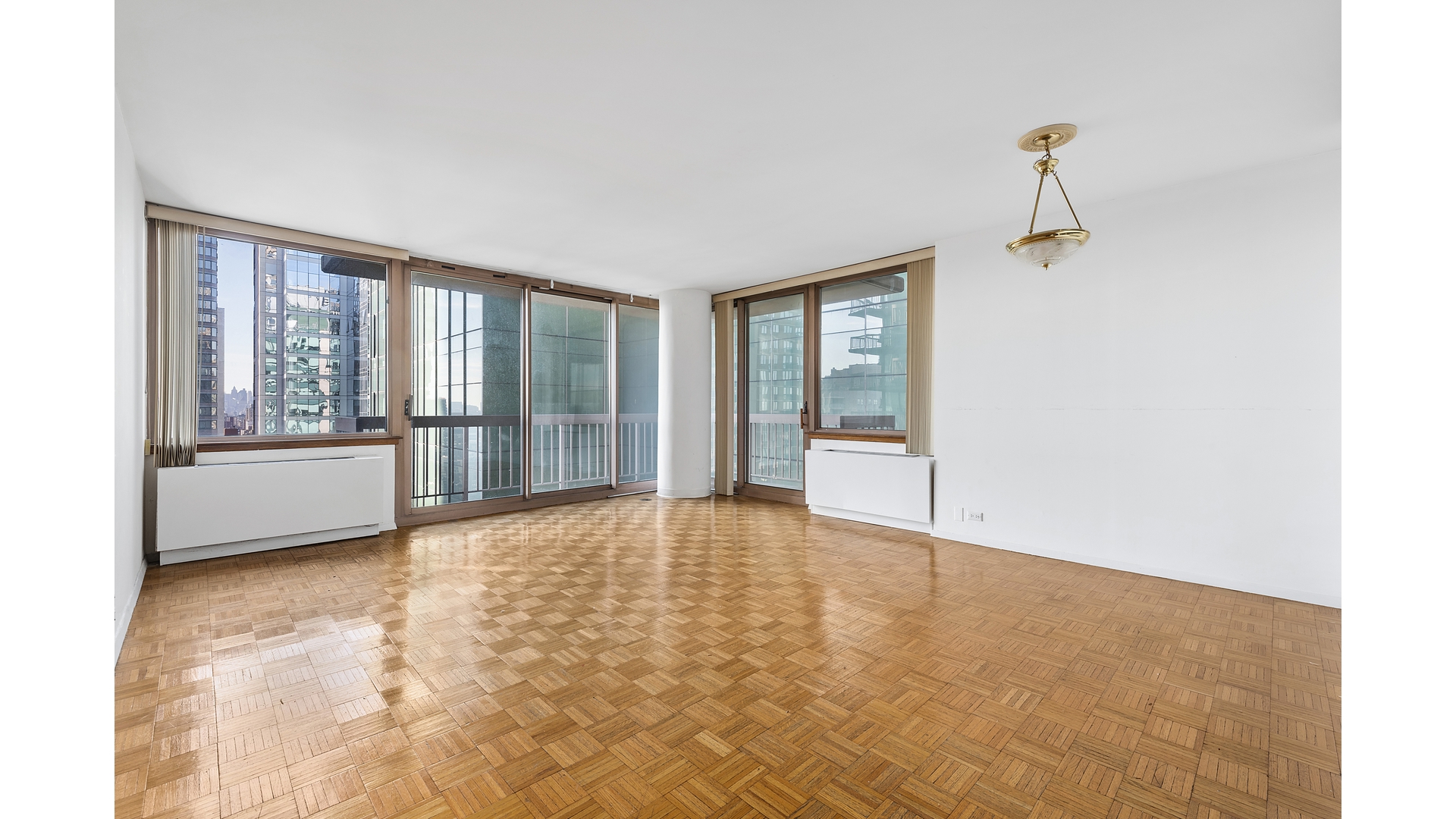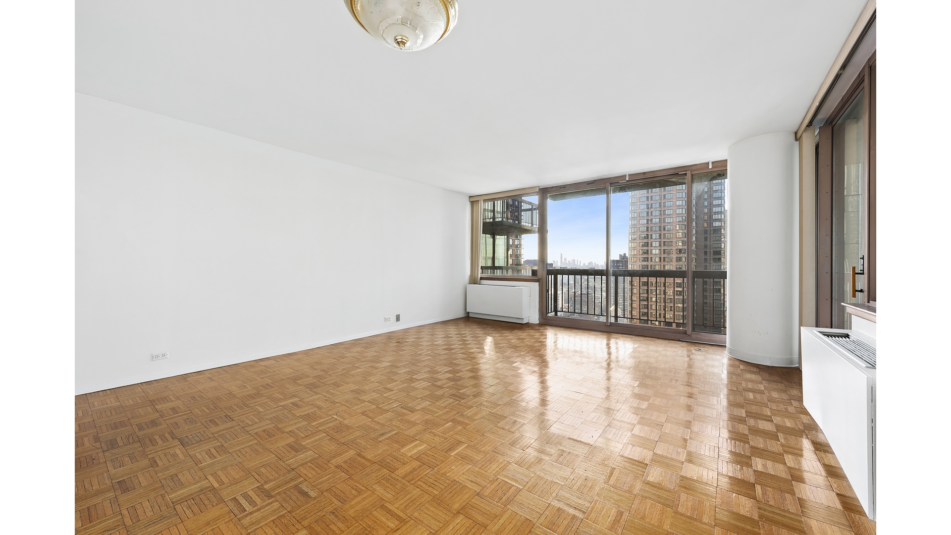 Quiet and bright, this beautiful 31st floor 1 bedroom 1.5 bath home features a gracious entrance foyer preceding a large south-west corner-exposure living room with floor-to-ceiling windows and a wonderful 84 square foot wrap-balcony. The spacious white windowed kitchen with white appliances and a pass-thru to the living room has plenty of counter-top space and great storage.