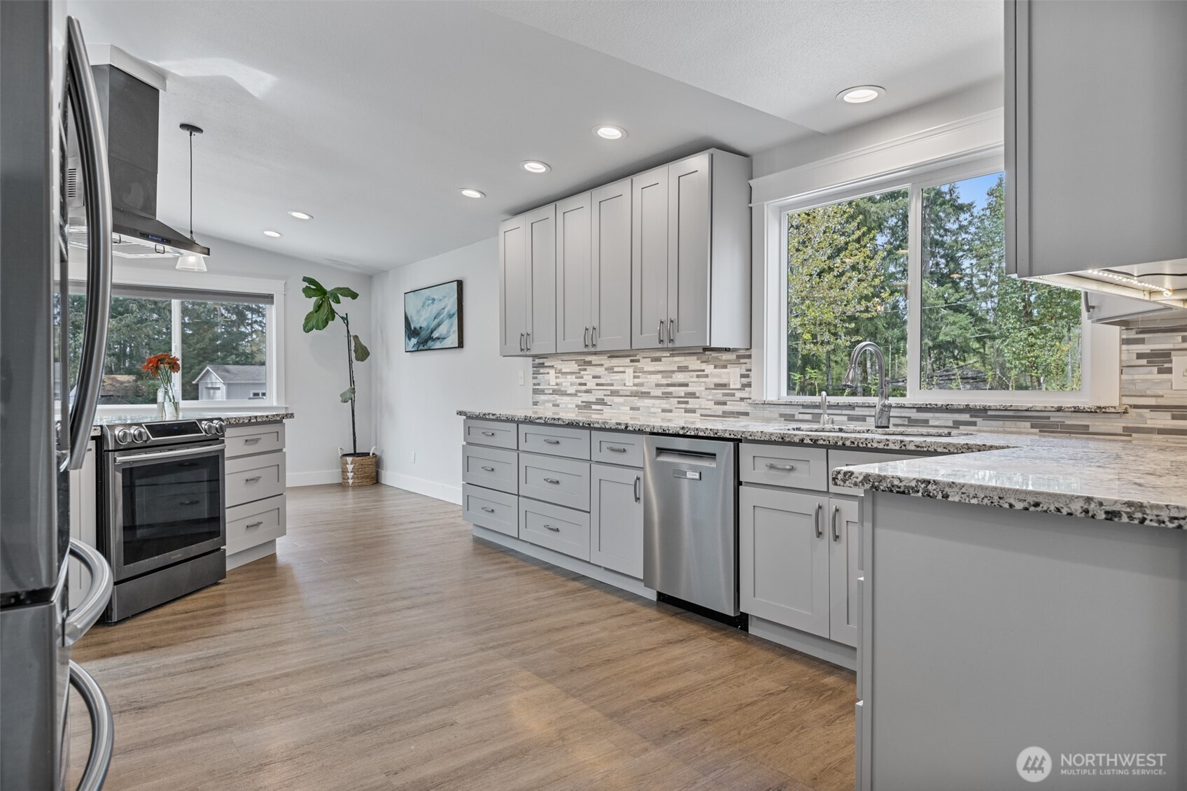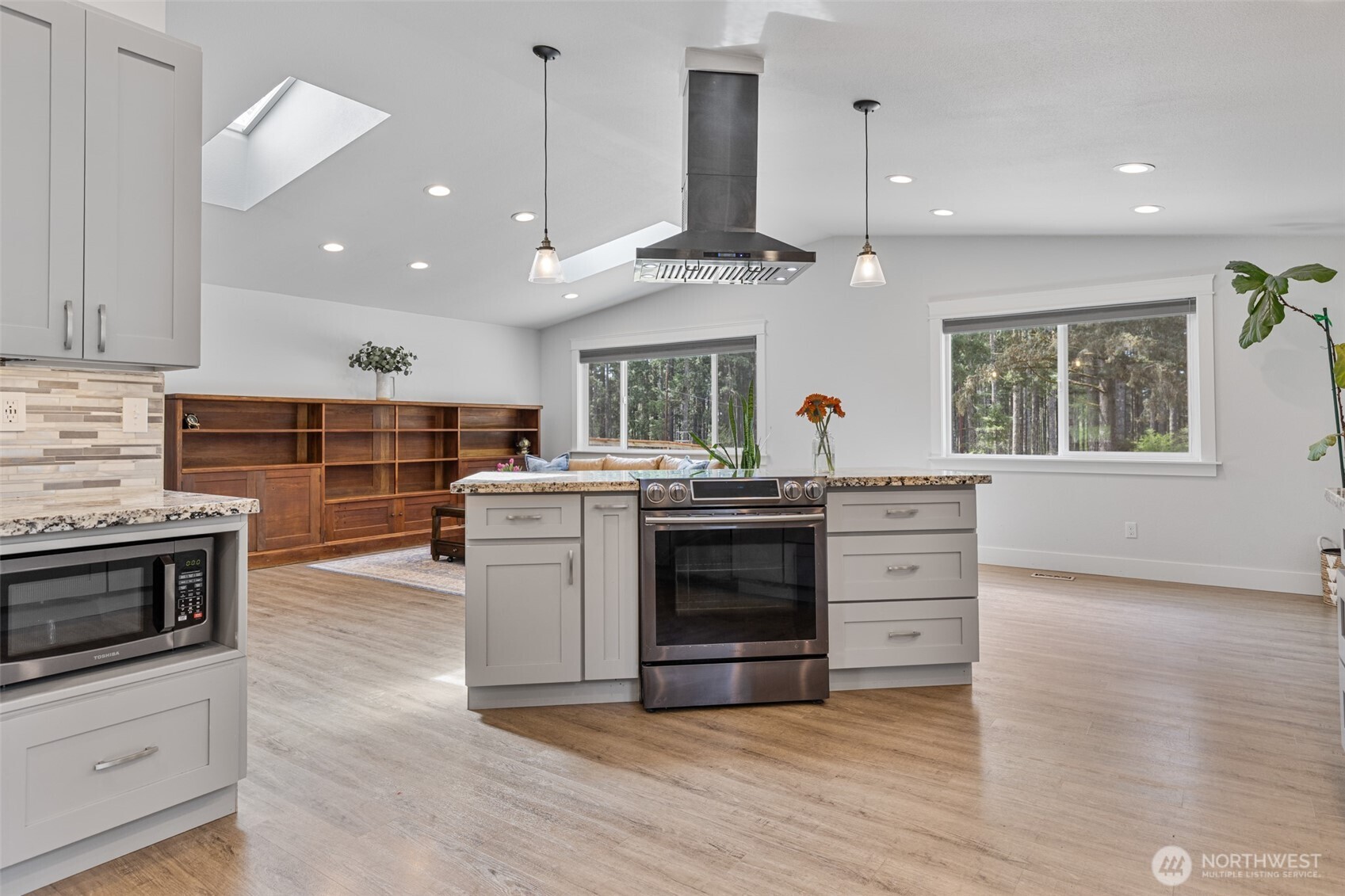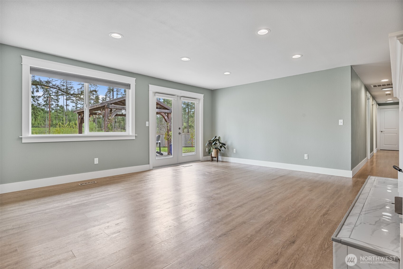Experience the best of Belfair living with this beautiful single-story home set on 4.75 mostly flat, usable acres just minutes from town and the scenic Hood Canal. Recently refreshed with new exterior paint, this property offers standout curb appeal along with the perfect blend of privacy and convenience. Inside, the thoughtfully updated 4-bedroom home features a bright open-concept layout with vaulted ceilings and skylights, a spacious kitchen with abundant cabinetry, all appliances included and a walk-in pantry. Two separate living areas offer flexibility for furniture and french doors lead to an expansive 1,500+ sq ft patio with a covered gazebo, ideal year round BBQ or enjoying peaceful Pacific Northwest evenings. Designed for the Belfair lifestyle, the property includes a greenhouse, chicken coop, multiple sheds, and plenty of cleared, fenced land for hobbies, animals and garden space, while mature trees provide natural privacy. Additional highlights include 2.25 bathrooms with gorgeous tilework, air conditioning, 3-car garage with EV prewire & RV parking. If you're seeking space, privacy, and easy access to outdoor recreation near the water, this move-in ready property delivers it all.