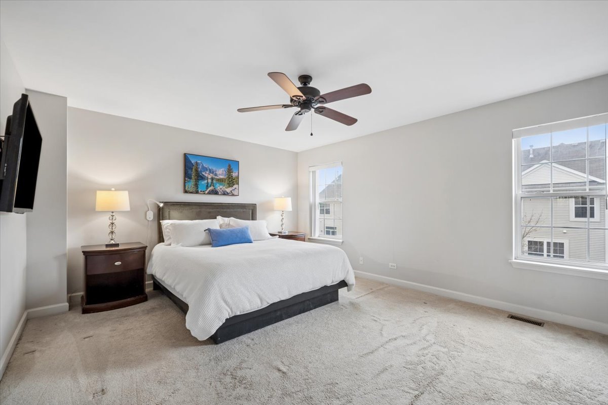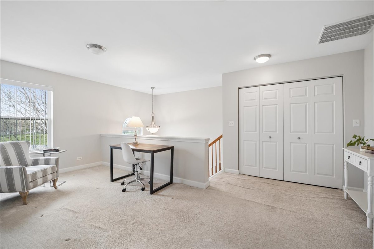 SPECTACULAR VIEWS! FANTASTIC PRIVACY! MODERN LAYOUT! GREAT VERSATILITY! ~ Main floor living room with gas log fireplace and west-facing balcony overlooking scenic wetlands, park, and tons of green space ~ Main floor family room/eating area with second sliding glass door leading to second balcony ~ Gorgeous kitchen features 42" maple cabinetry, granite countertops, huge breakfast bar, pantry closet, and stainless steel appliances ~ Two generous second floor bedrooms including primary with walk-in closet and private bath ~ Large second floor loft (could be converted to additional bedroom) ~ Convenient second floor laundry with washer and dryer ~ Lower level 3rd bedroom offers great possibilities as home office, playroom, craft/hobby room, or home gym ~ BEAUTIFUL HARDWOOD FLOORING ~ WHITE DOORS AND TRIM THROUGHOUT ~ Neutral decor ~ Attached 2 car garage ~ Great curb appeal ~ New oven 2024 ~ New Microwave 2024 ~ New dishwasher 2024 ~ New refrigerator 2022 ~ New air conditioner 2021 ~ Walking distance to restaurants, shopping, and plenty of conveniences ~ Ultra close to park district facilities, forest preserves, and biking/walking trails ~ THIS ONE IS STYLISH, SOPHISTICATED, AND CLOSE TO EVERYTHING! ~ DON'T MISS IT!
