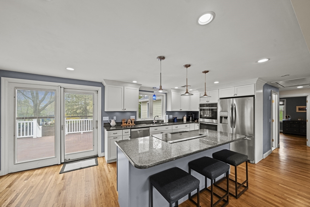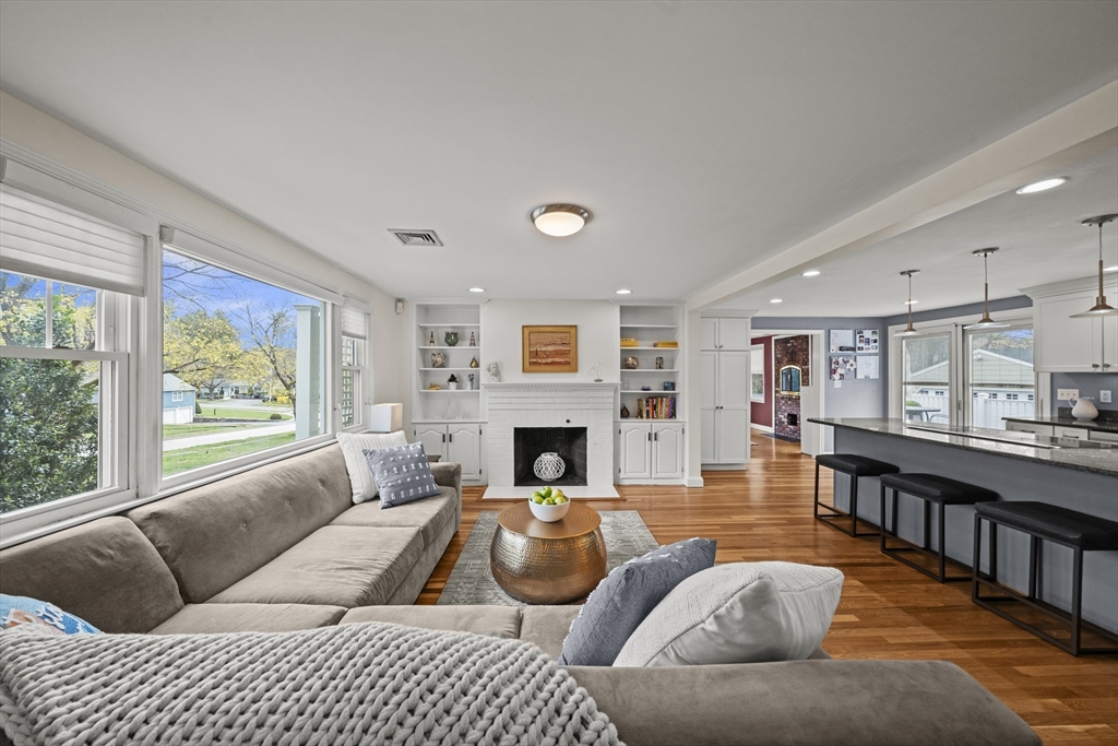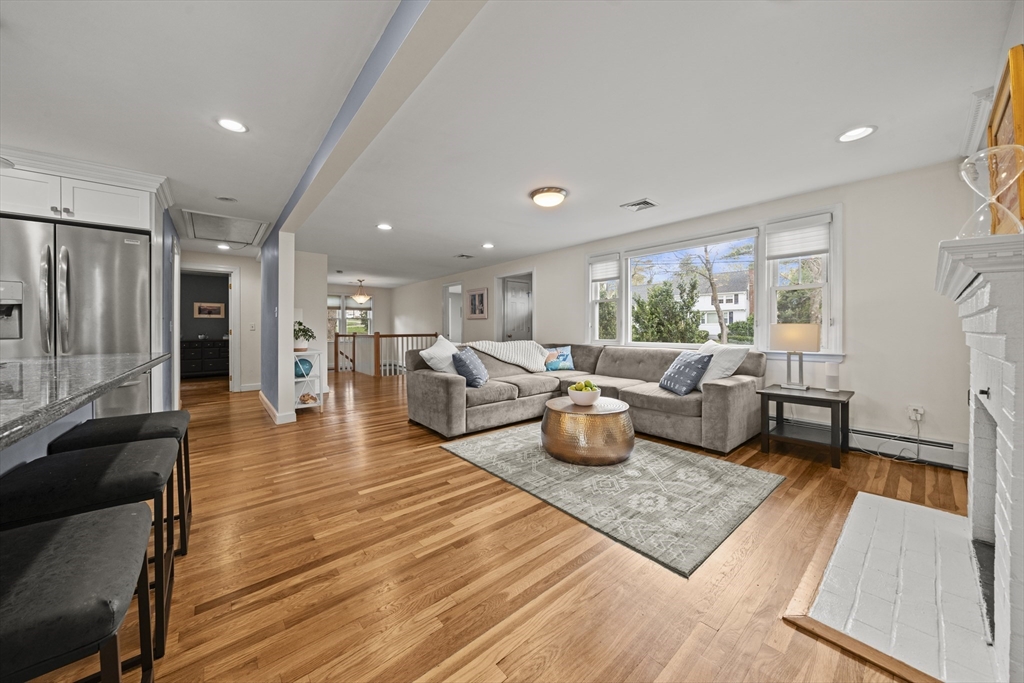 Highly sought after Glen Meadow location! Welcome to 10 Newhall Rd! This expanded ranch is a rare find! Home offers 3 large bedrooms, 2.5 baths, open concept, two fireplaced rooms on main level, formal dining room, mud room, central AC and fully finished basement with stairs open to main level for seamless flow! Massive deck off the kitchen perfect for entertaining friends and family. Oversized driveway and detached 2 car garage with work area complete this forever home! Home sits perfectly on its .36 acre flat cleared lot. Close proximity to Huckleberry elementary, Market Street shopping and entertainment , Rte 95 and all Lynnfield has to offer! Private showings available & Open houses are Sat 4/25 & Sun 4/26 12-2! Don't miss this one!