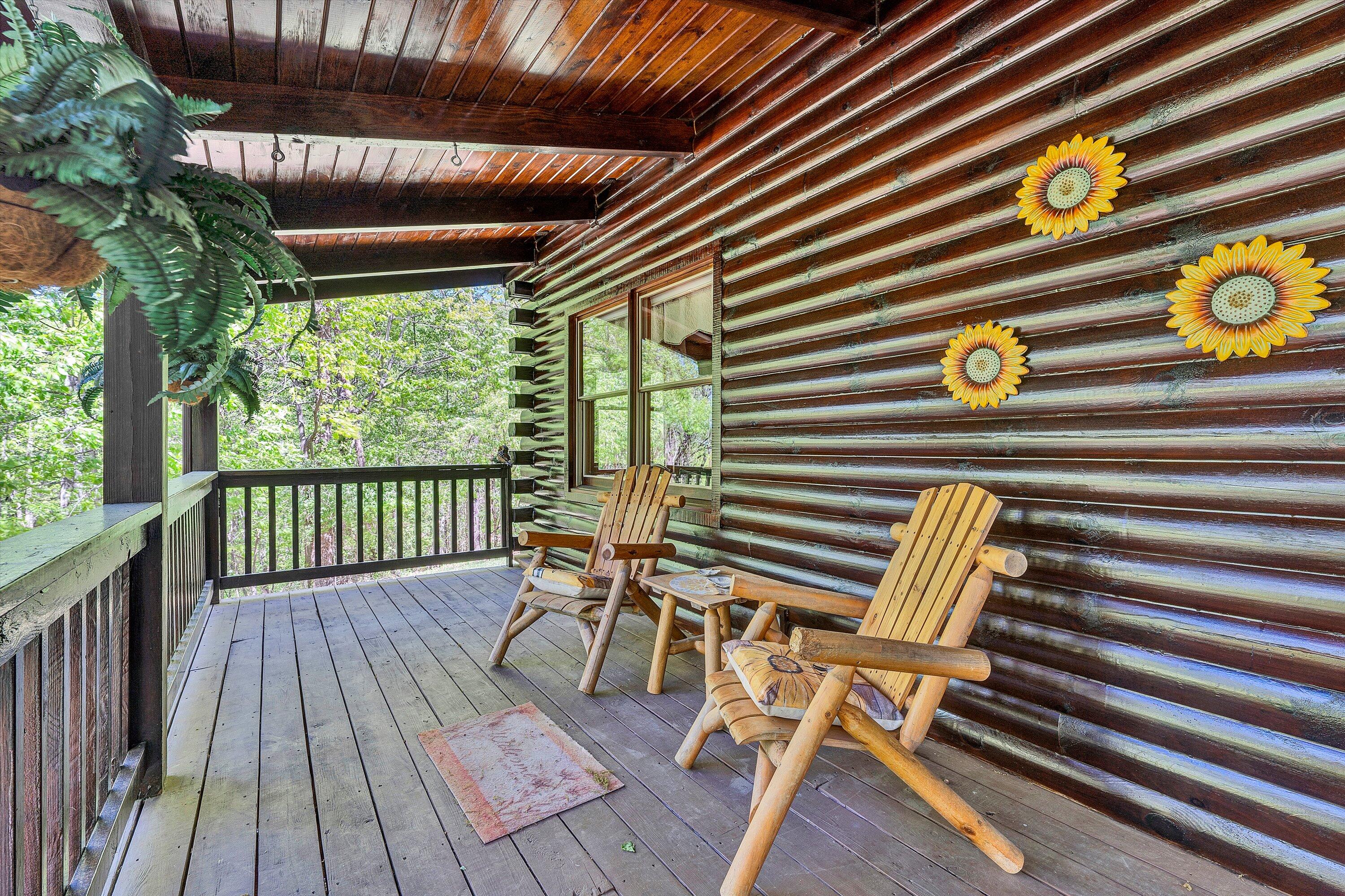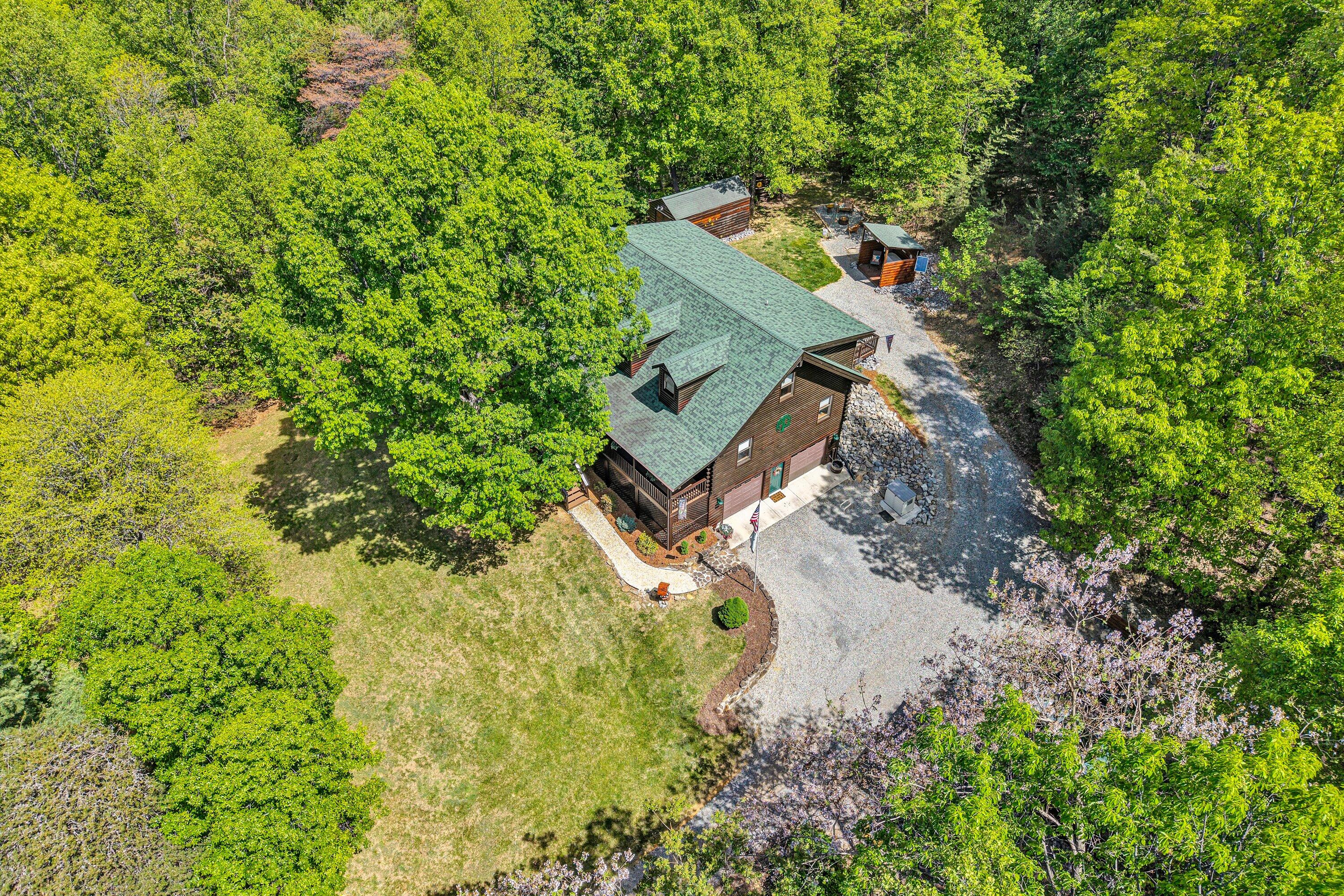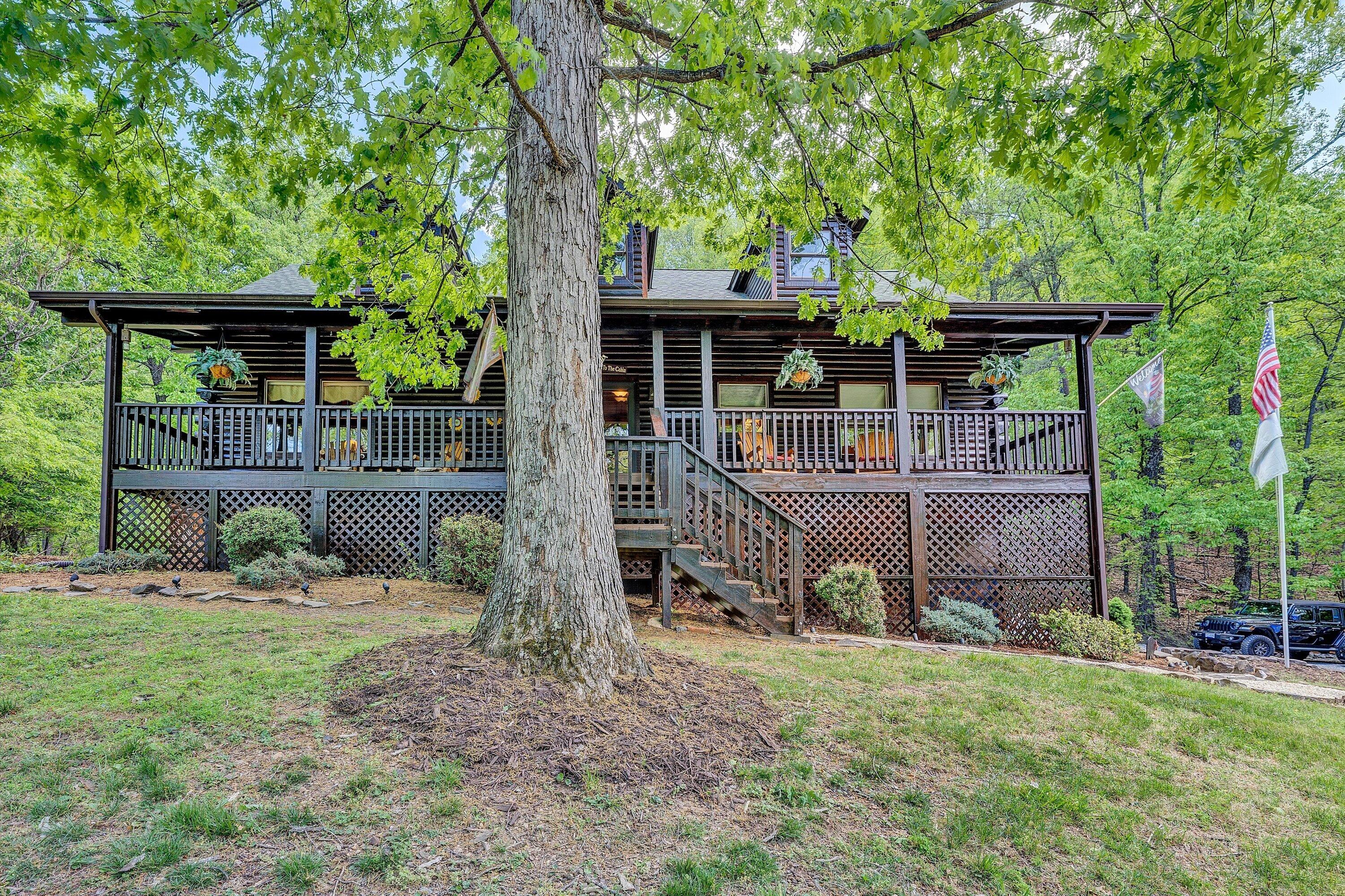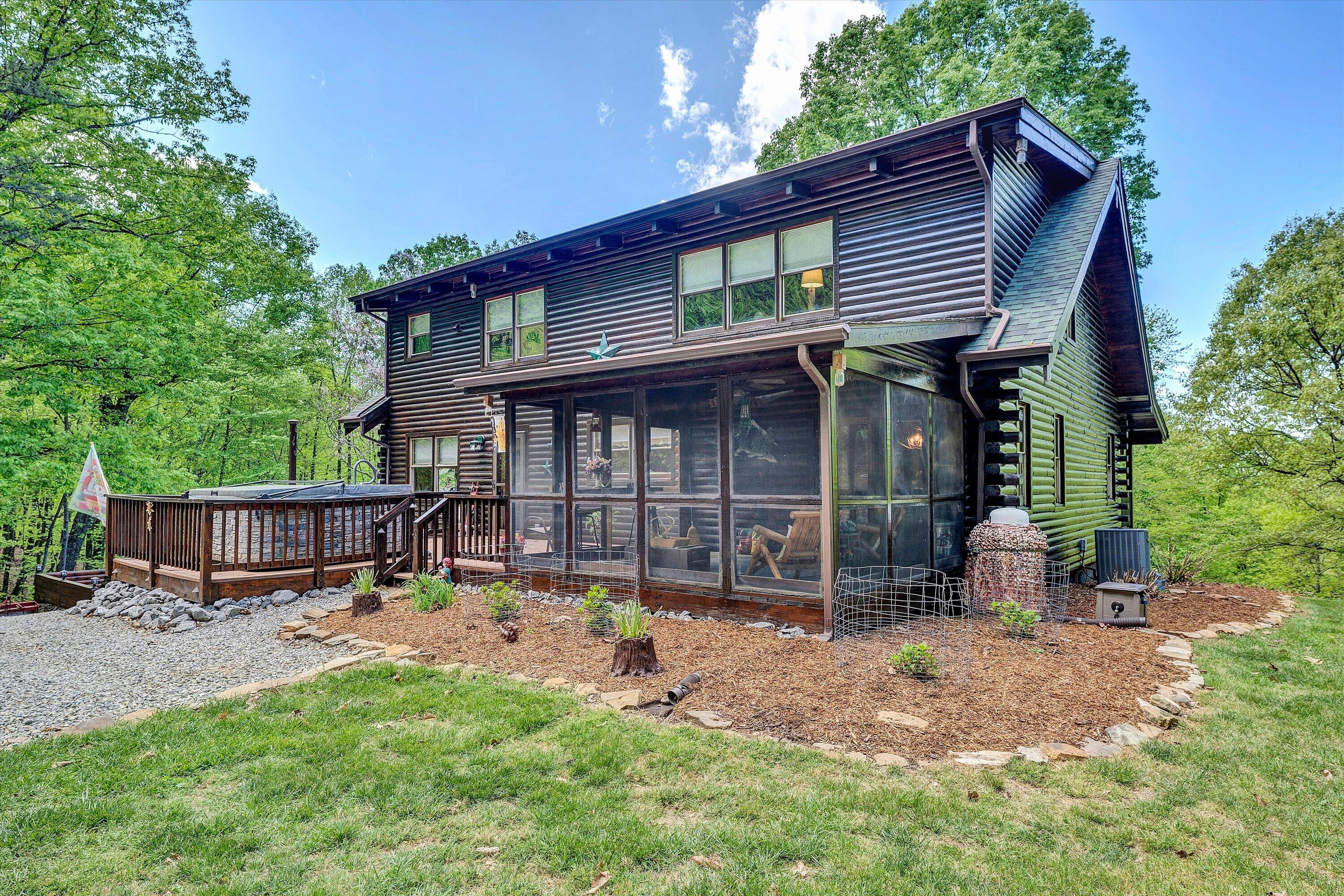 Calling all log home lovers - your search has ended! Escape to your private retreat featuring this 3 BR, 2 BA log home tucked away on 6+ acres. For the nature lover, this is the perfect blend of peace, privacy & outdoor living. A classic log interior w/great room & stone fireplace; mantle is built from wood on the property. Additionally the main level features 2 BRs, a well-designed kitchen w/plenty of cabinets, laundry & hall bath. Upstairs is another large gathering area & the primary bedroom suite w/bathroom featuring soaking tub, large tiled shower, double sinks, & walk-in closet. Outside is a screened porch, deck w/hot tub (Hot Springs model). A separate 10 x 20 shed & a firepit area & barbeque pavilion (lighting by solar power) for outdoor entertaining A 13 kw generator conveys so
