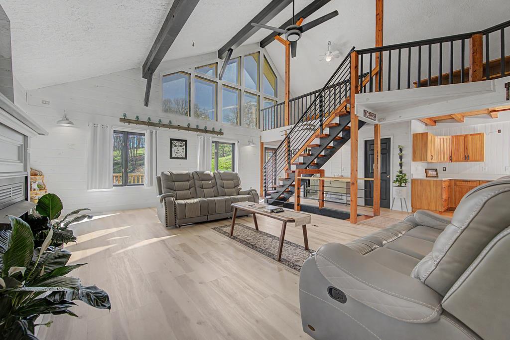 This rare, turnkey property blends modern comfort with peaceful country living. The fully remodeled and furnished historic farmhouse features high-speed fiber optic internet, ideal for remote work and entertainment. A stunning spring-fed pond is stocked with catfish, largemouth bass, and bluegill. The generous 12 acres include a high-producing apple tree and an established orchard with 10+ fruit varieties, along with berries and grapevines. The property is landscaped for season-long blooms and abundant wildlife. The spacious interior, with vaulted ceilings, offers excellent entertaining areas and convenient upgrades. The well-designed floor plan functions exceptionally well as an income-producing vacation rental. A 3-car garage with a basement adds even more availability. This property offers space for a wide range of hobbies and interests, with abundant recreational amenities both on-site and nearby. A truly unique opportunity to own a Blue Ridge Mountain gem. Come see for yourself!