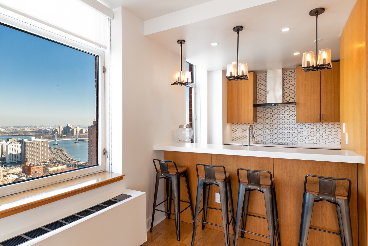 Start your mornings at the café counter with a cup of coffee while enjoying serene views of the East River.