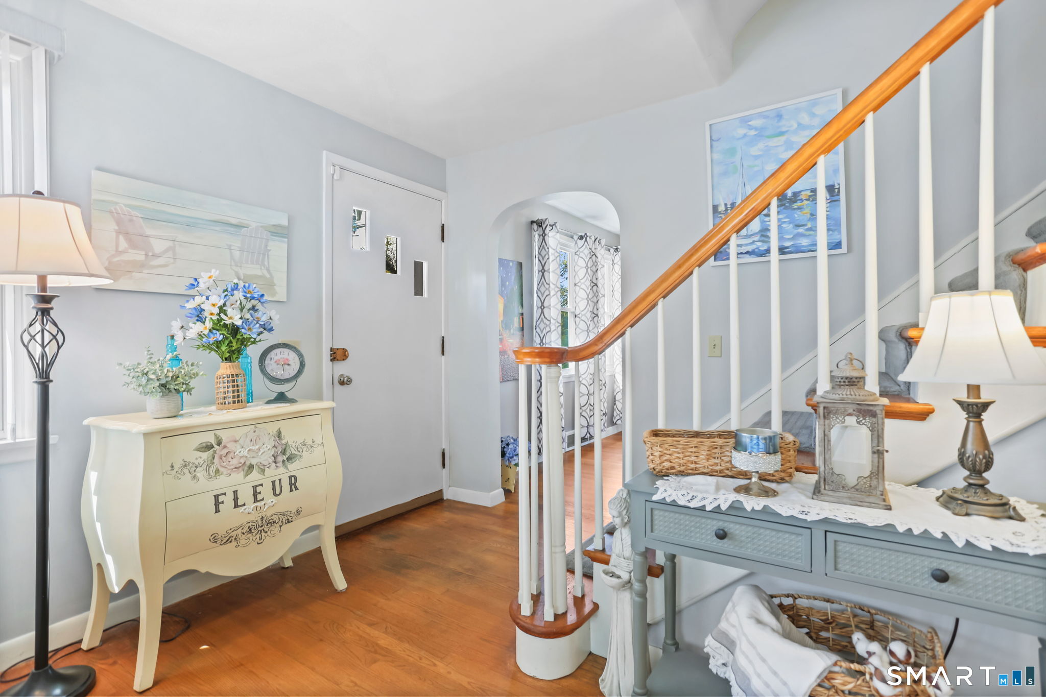 Welcome home to a charming 3 BD Cape Cod in Shelton, set on a beautifully landscaped, level .39acre fully fenced lot with garage. Lovingly maintained & thoughtfully updated, this home offers generous living spaces, H/W flrs, fresh paint & a private backyard oasis you'll truly enjoy. Step inside to a bright & sunny LR, where a large picture window fills the space with natural light. The formal DR features a lovely builtin hutch & closet, perfect for hosting gatherings. The beautifully remodeled EIK shines with quartz countertops, SS appl, a center island, pantry, & opens to a covered 3 season sunporch with exciting expansion potential. Outdoor living is a delight with a spacious Trex deck overlooking the serene, fully fenced backyd complete with patio, gardens, shed, firepit, & swing -ideal for entertaining or simply relaxing. The 1st flr primary BD offers 2 closets, while a full hall bath with tub/shower completes main level. Upstairs, you'll find 2 additional roomy BDS with H/W flrs, built-ins & attic storage. Full unfin bsmt provides abundant storage, a sink & direct garage access. Major updates include a new furnace, hot water heater, & C/A system in 2023, along with a newly insulated attic, new front entrance railing & new deck storm door. Addl features include an attached 1 car garage, security sys, natural gas heat, central A/C, city sewer. City water available in the street. Enjoy LOW Shelton taxes & a convenient location, close to hiways, shopping, restaurants, parks!