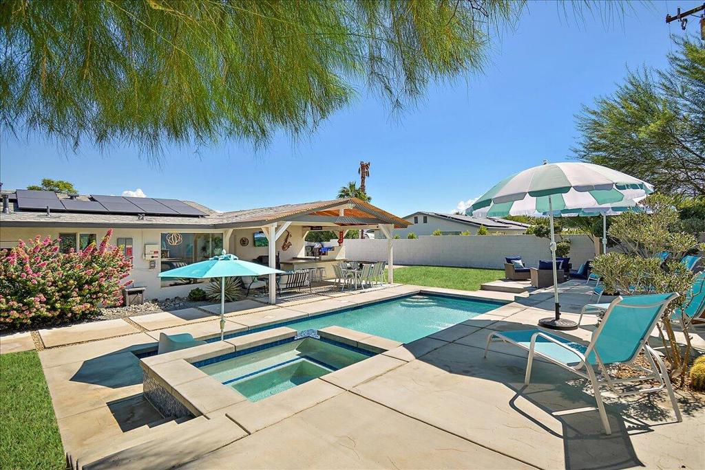 Need a soft landing before you buy or the perfect work-from-home space? This beautifully remodeled 3-bedroom, 2-bath home in Palm Springs is available for a 12-month lease and offers comfort, privacy, and incredible mountain views. Enjoy a spacious, private backyard with a covered patio, built-in BBQ, and a Pebble Tec saltwater pool and spa perfect for relaxing or entertaining. Inside, the home features a bright, open feel with large windows, a modern kitchen with stainless steel appliances and quartz countertops, and clean, updated finishes throughout. Additional perks include a finished 2-car garage, RV parking, solar for energy efficiency, and included refrigerator, washer, and dryer. Pet-friendly with approval. Move-in ready come experience the Palm Springs lifestyle! Home has solar. Great utility savings. Bathroom in garage to service pool.