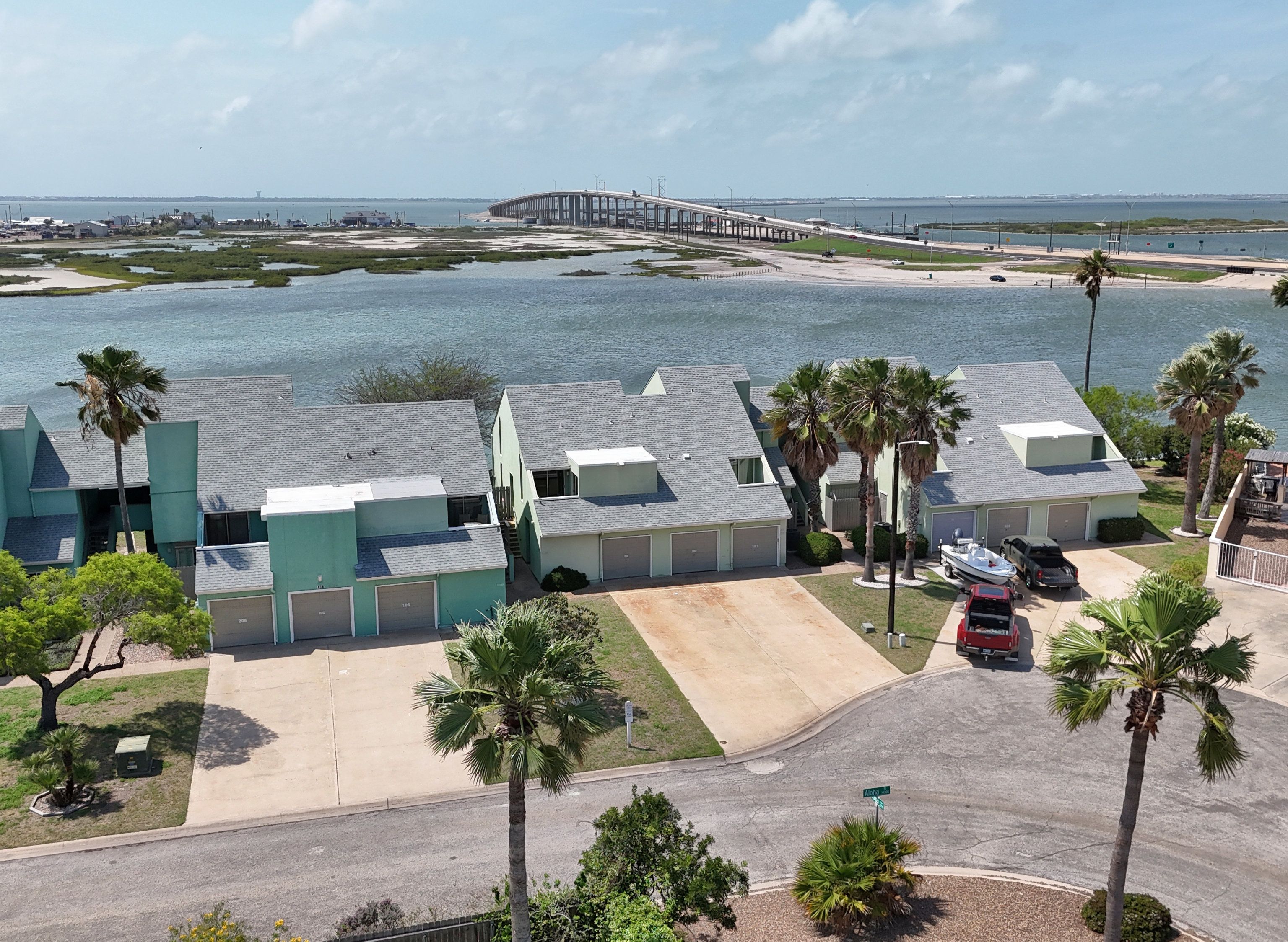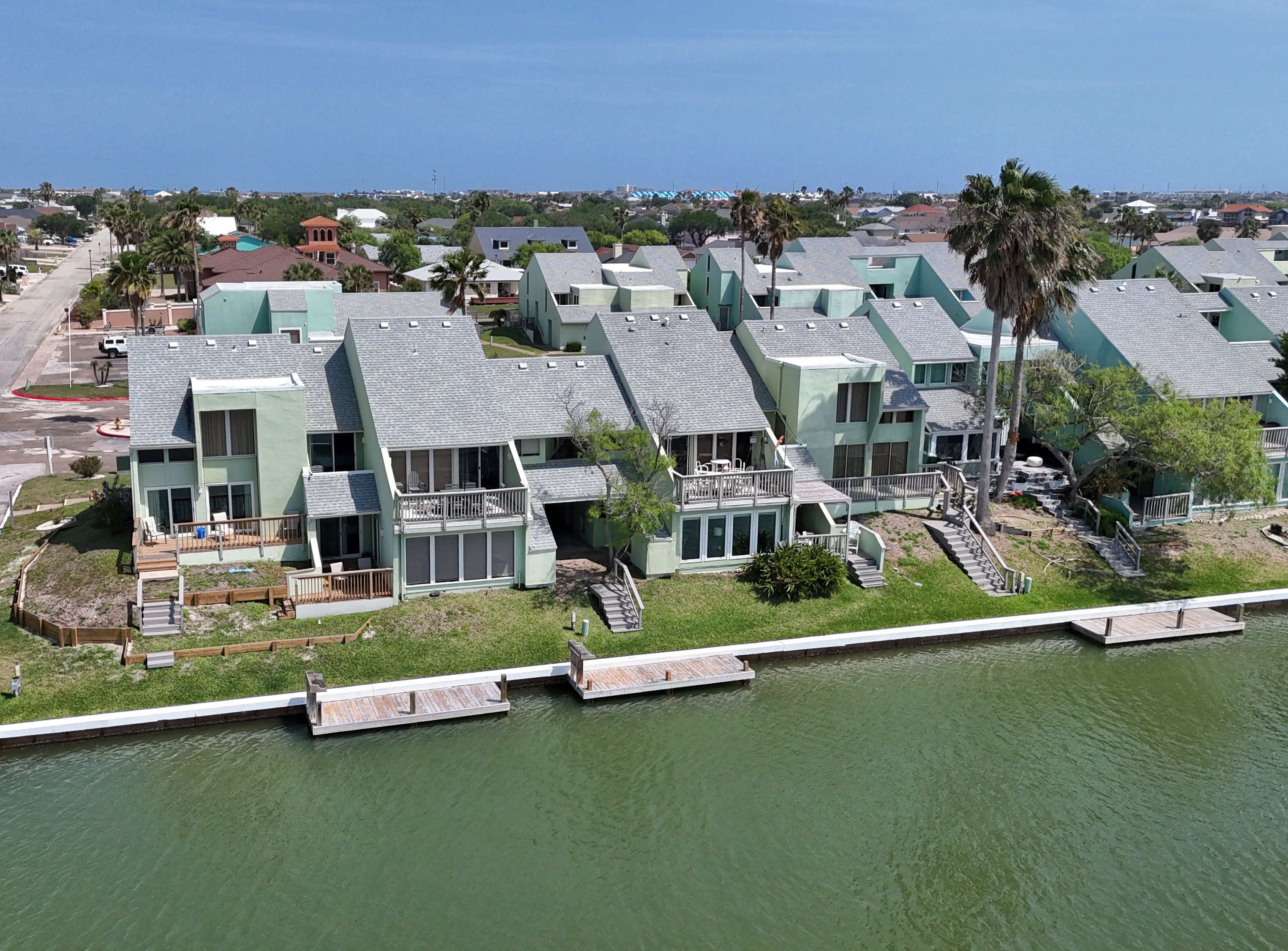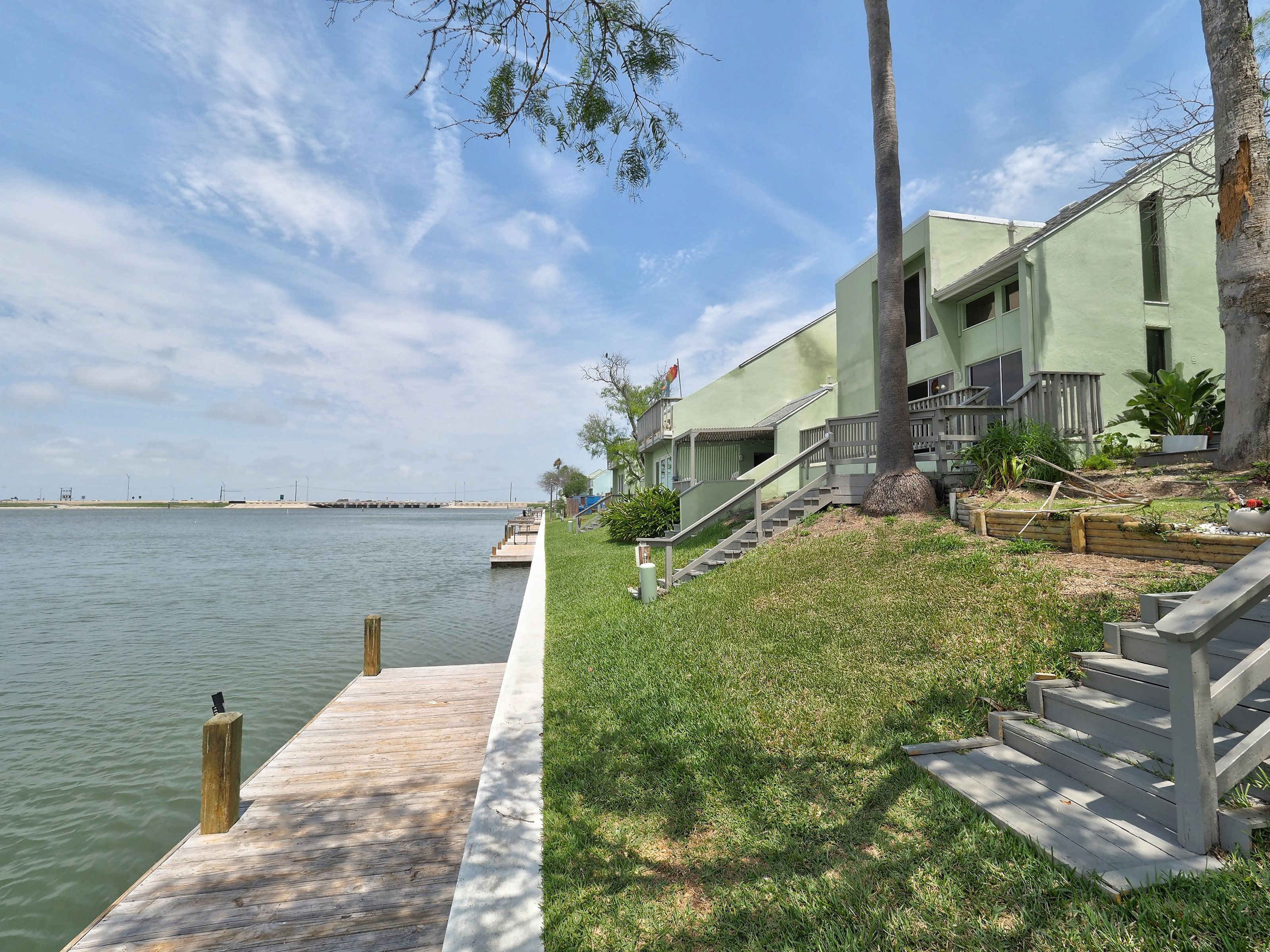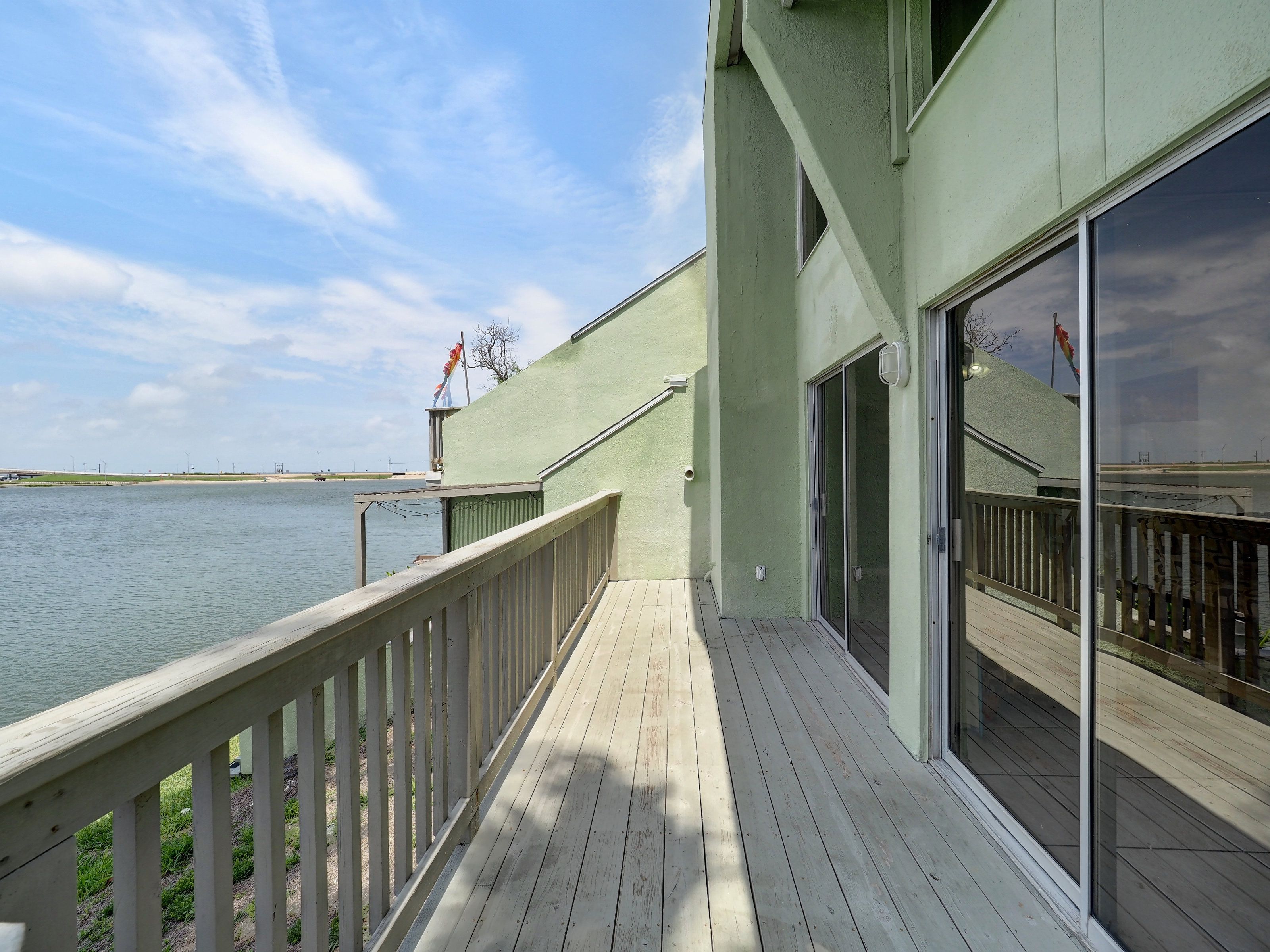 Reel in the lifestyle you’ve been looking for—where fishing days and sunset evenings come standard. This canal-front Puente Vista condo offers front-row views of the Laguna Madre and an easygoing coastal vibe that’s hard to beat. Featuring 2 bedrooms and 2 bathrooms in a split-level layout, this unit offers a functional design with added privacy between living and sleeping spaces. Step outside to a generous waterfront patio overlooking the bay and community dock—ideal for unwinding, entertaining, or dropping a line just steps from home. The single-car garage is a major bonus, providing covered parking plus extra storage for a golf cart, beach gear, or all your fishing essentials. Main deck has been redone in the last 3 years. A new water heater was installed April 2026. Puente Vista residents enjoy a range of amenities, including a resurfaced pool (2024), clubhouse, updated laundry facilities (2025), and plenty of parking for vehicles and boats. HOA dues cover water, cable, trash, and exterior maintenance, making for low-maintenance ownership. With short-term rentals permitted, this property is well-suited as a vacation rental, second home, or personal coastal retreat. Move-in ready as-is, or bring your vision and elevate it to your own style—either way, this waterfront opportunity checks all the boxes. Units 114 and 203 single car garage spaces are currently open to each other. Seller will install a wall to divide, or purchase both units for more space!