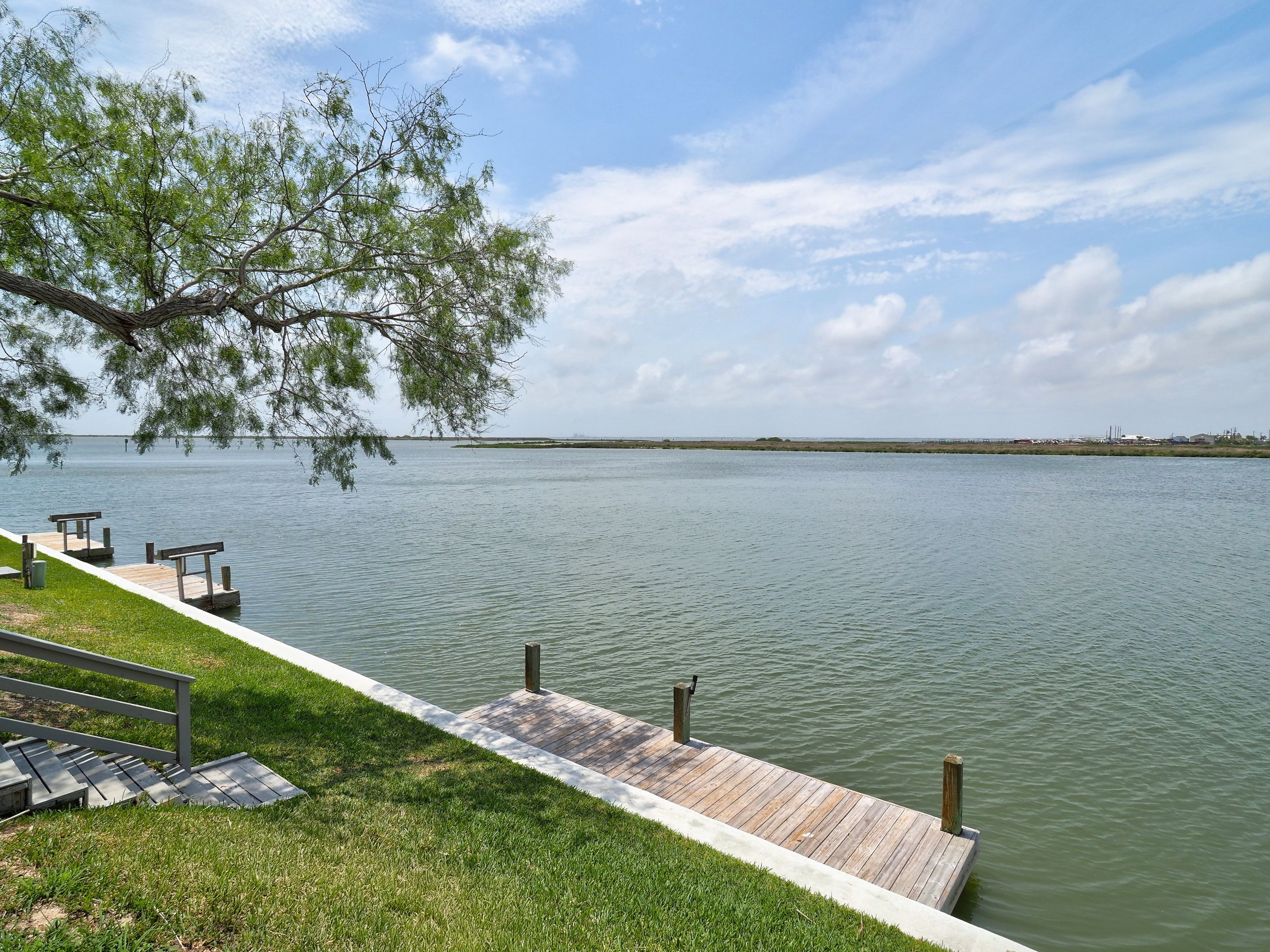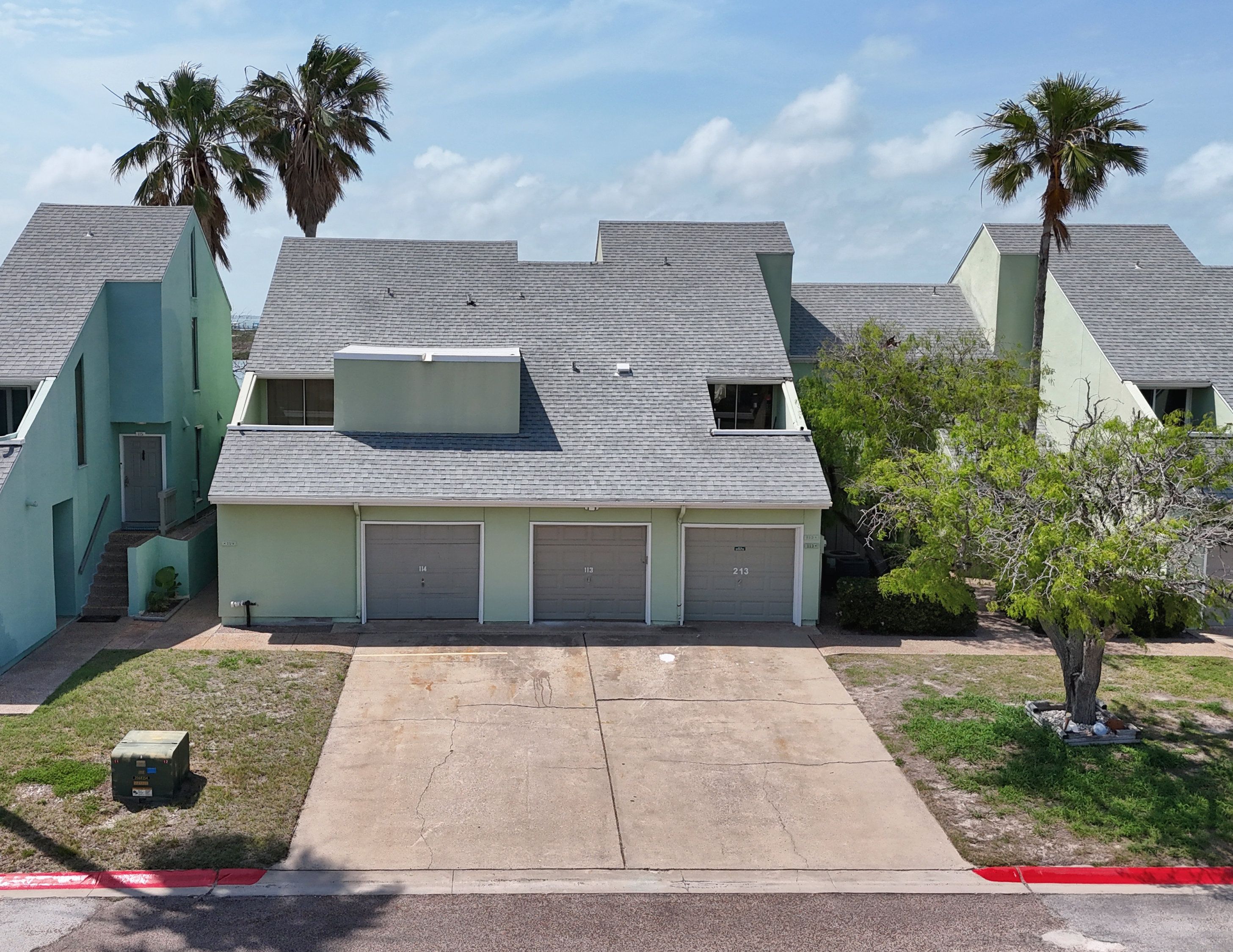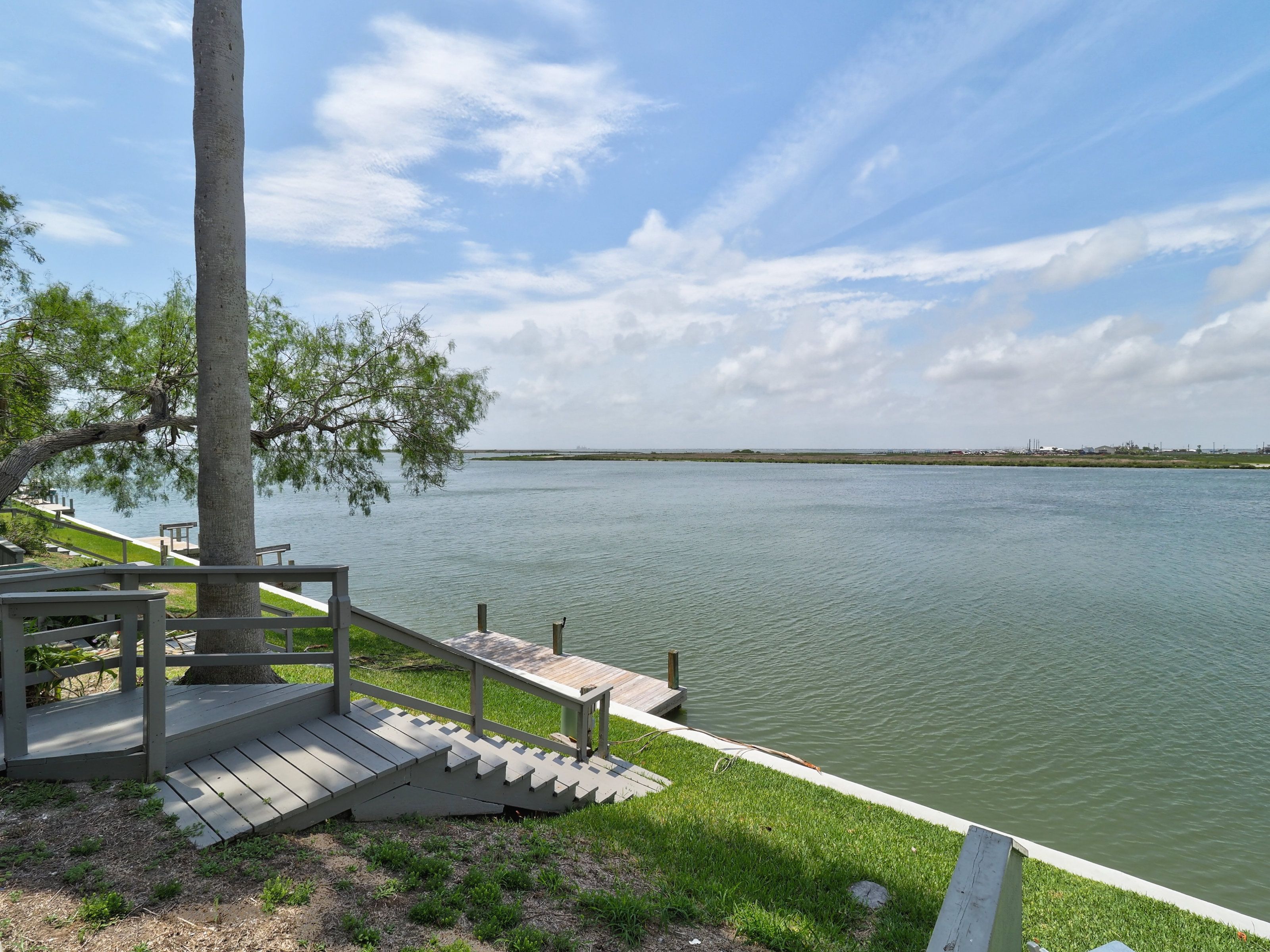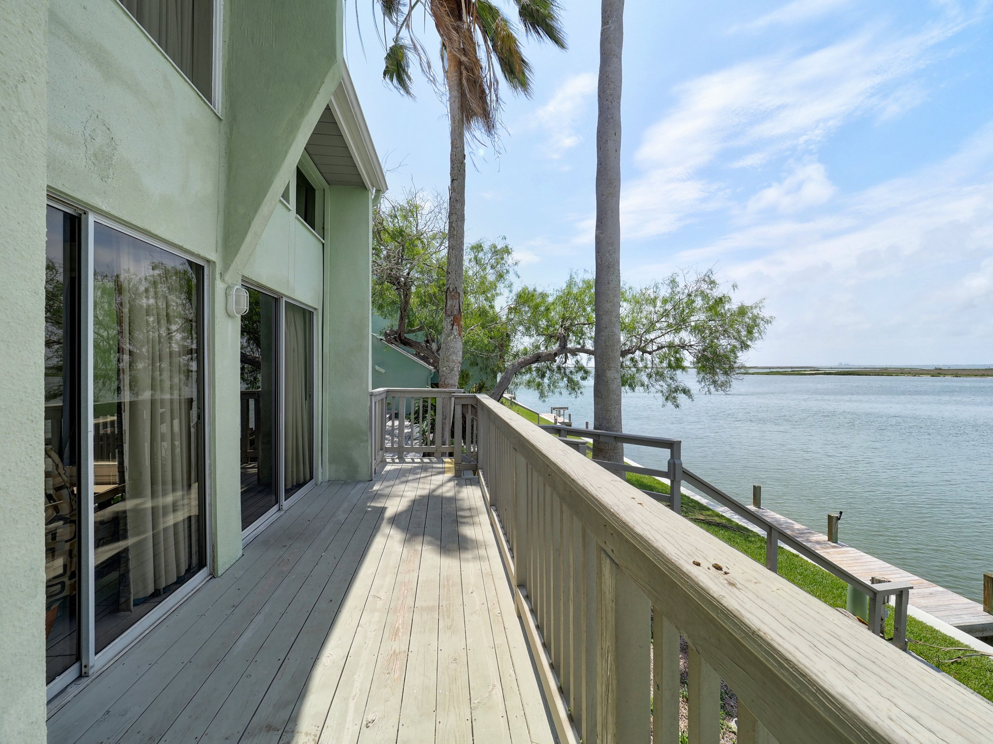 Reel in the lifestyle you’ve been looking for—where fishing days and sunset evenings come standard. This canal-front Puente Vista condo offers front-row views of the Laguna Madre and an easygoing coastal vibe that’s hard to beat. Featuring 2 bedrooms and 2 bathrooms in a split-level layout, this unit offers a functional design with added privacy between living and sleeping spaces. Step outside to a generous waterfront patio overlooking the bay and community dock—ideal for unwinding, entertaining, or dropping a line just steps from home. The single-car garage is a major bonus, providing covered parking plus extra storage for a golf cart, beach gear, or all your fishing essentials. Main deck has been redone in the last 3 years. A new water heater was installed April 2026. Puente Vista residents enjoy a range of amenities, including a resurfaced pool (2024), clubhouse, updated laundry facilities (2025), and plenty of parking for vehicles and boats. HOA dues cover water, cable, trash, and exterior maintenance, making for low-maintenance ownership. With short-term rentals permitted, this property is well-suited as a vacation rental, second home, or personal coastal retreat. Move-in ready as-is, or bring your vision and elevate it to your own style—either way, this waterfront opportunity checks all the boxes. Units 114 and 203 single car garage spaces are currently open to each other. Seller will install a wall to divide, or purchase both units for more space!