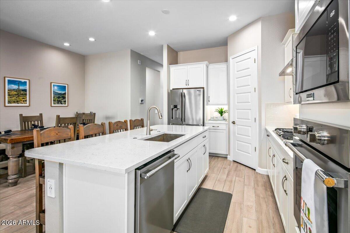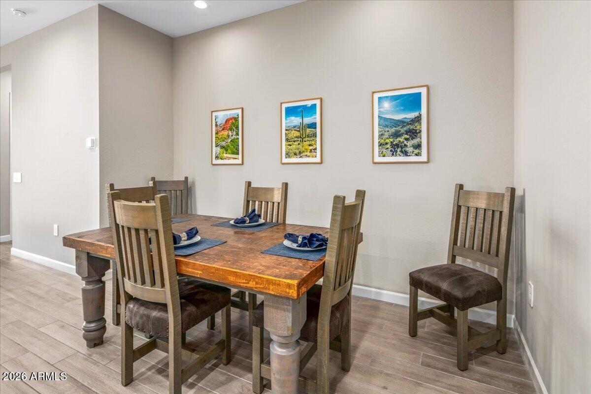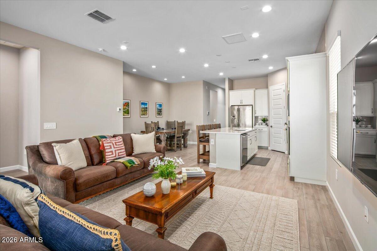 Enjoy effortless living in this exceptional community, where the nearby community center offers outstanding amenities including a recreation center, beautiful outdoor pool, fitness center, and community park with BBQs, picnic tables, and a children's play area. Enhancing that lifestyle is this beautiful single-level, zero-step home, perfectly situated on a lot backing to natural area open belt space with mountain views. Gently lived in and thoughtfully designed, the residence features a split-bedroom floor plan for privacy, porcelain plank flooring throughout, an upgraded kitchen, and a gorgeous upgraded primary bath. Combining comfort, convenience, and a serene setting, this is a property that truly deserves your attention.