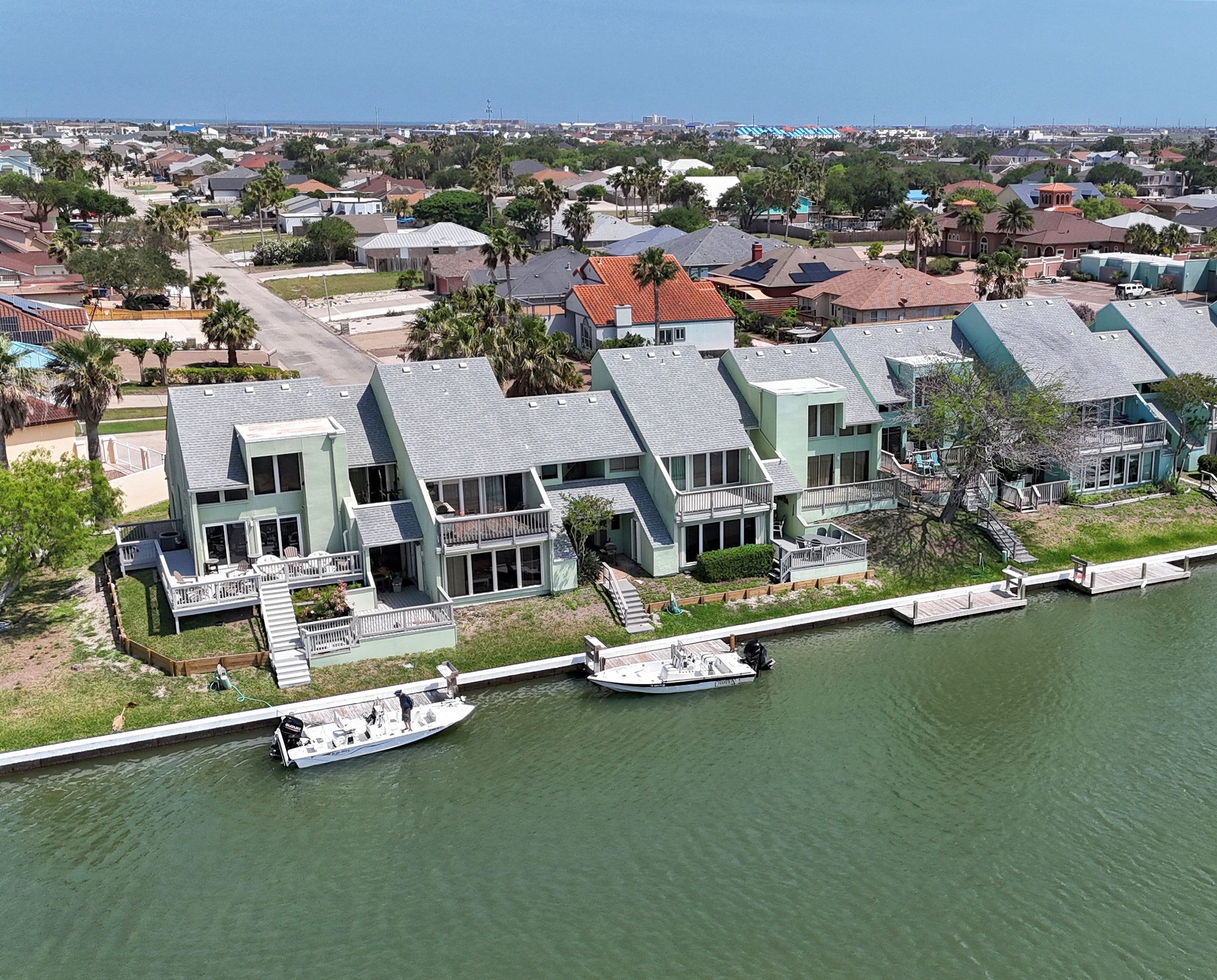Whether you enjoy catching fish or chasing sunsets, this canal-front Puente Vista condo offers the best of both. Welcome to waterfront living on the Laguna Madre, where bay views and glowing coastal sunsets set the tone for relaxed island life. This 2-bedroom, 2-bath split-level condo is designed for comfort and flexibility—ideal as a turnkey investment property or a blank canvas to update and make your own. The spacious layout offers separation between living and sleeping areas, while a large patio overlooks the water and community dock space, perfect for morning coffee, evening cocktails, or casting a line just steps from your door. A single-car garage provides covered parking and protection from the coastal elements, with plenty of room for a golf cart, fishing gear, and beach essentials. Puente Vista amenities include a community pool (resurfaced in 2024), clubhouse, updated laundry facilities (2025), and ample parking for both vehicles and boats. HOA dues conveniently cover water, cable, trash, and exterior maintenance—making ownership simple and stress-free. Short-term rentals are allowed, offering excellent income potential in a sought-after waterfront community. Whether you’re looking for a personal getaway, an investment opportunity, or both—this Laguna Madre gem delivers.