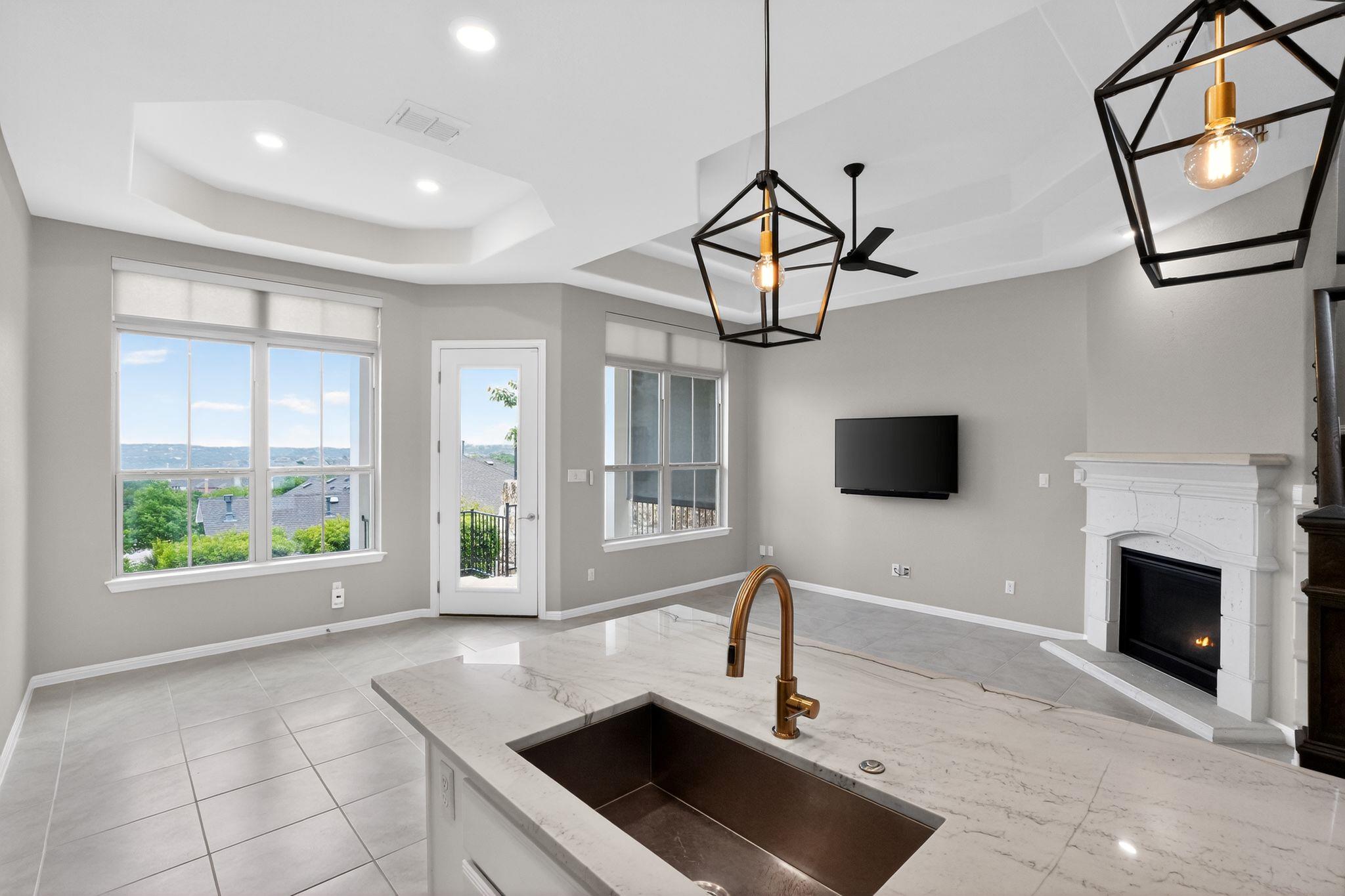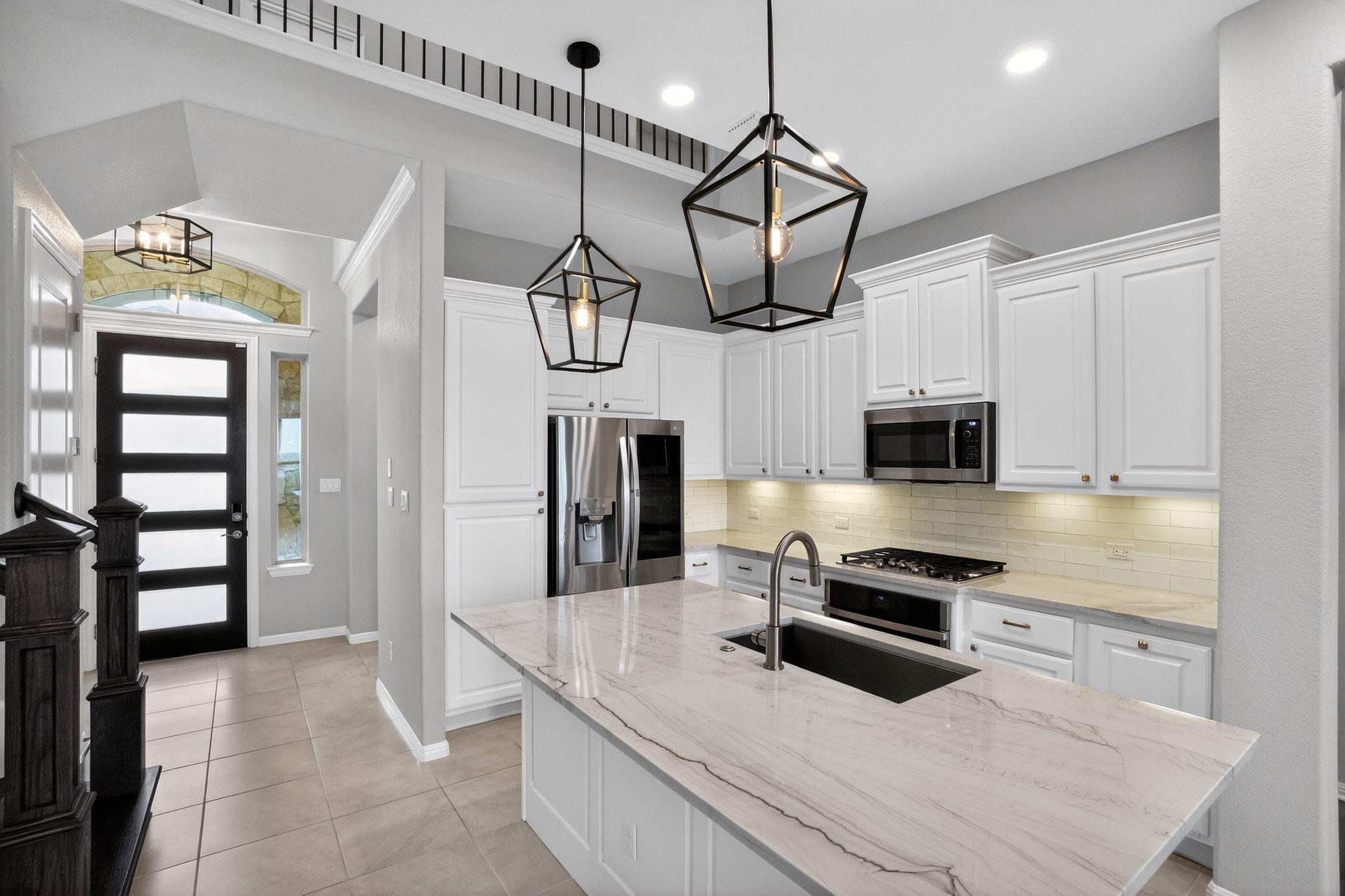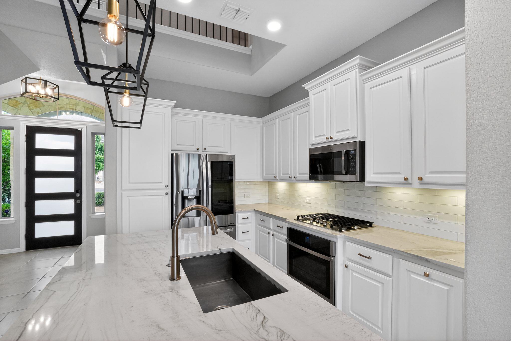 PREMIUM HILL COUNTRY RETREAT WITH STUNNING VIEWS. Wake up to breathtaking vistas in this sophisticated, low-maintenance attached home in the exclusive Vineyards at Rough Hollow. Offering the spacious feel of a single-family residence with the convenience of a managed community, this home is defined by high-end curation. INTERIOR: Open-concept layout with tray/coffered ceilings, wood and tile flooring, and a gas-log fireplace. The chef's kitchen features quartz countertops, propane cooktop, and stainless appliances (fridge included). LUXURY UPGRADES: Full-home water filtration/softener, remote-operated shades (blackout in primary), and a custom California Closet system. Includes washer/dryer and epoxy garage with built-in storage. OUTDOOR/AMENITIES: Covered patio with privacy shade, fenced yard with artificial turf (HOA maintained). Access to Yacht Club, 22 miles of trails, gym, and Highland Village lazy river. Award-winning Lake Travis ISD.
