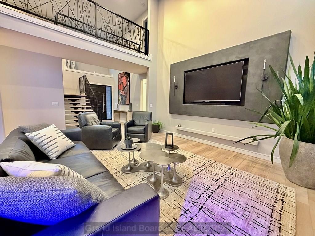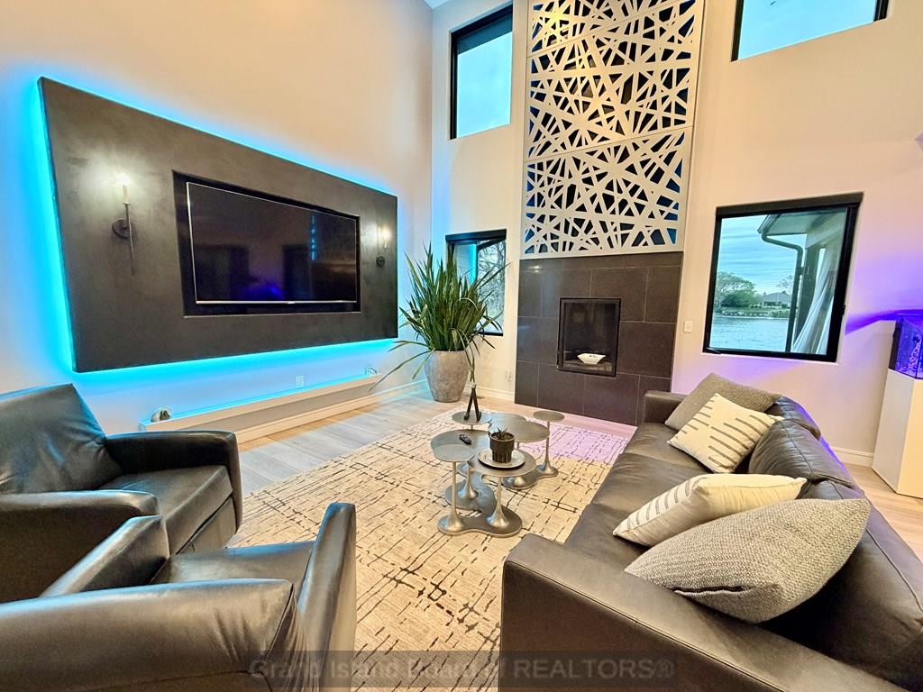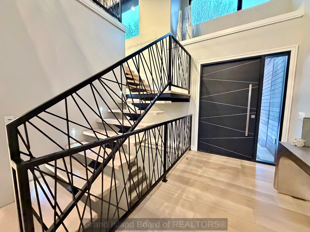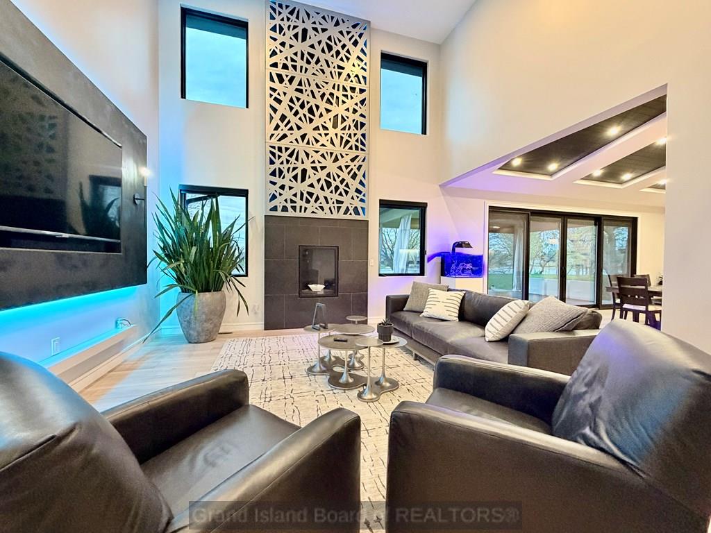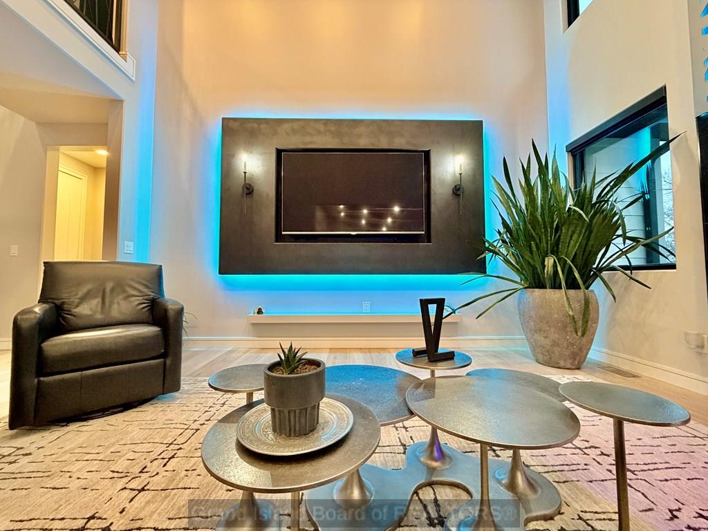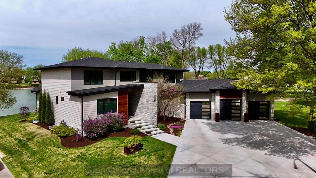 Modern luxury at its finest. From the moment you arrive, the exterior sets the tone for the high-end finishes throughout. Custom built with both structural efficiency and elevated design in mind, every detail has been carefully curated. Enjoy stunning lake views from the main living area and the spacious primary suite, which also features a large walk-in closet and a true retreat-like feel. The living room showcases a striking floor-to-ceiling fireplace with custom backlighting that extends into the second story, creating a dramatic focal point. The kitchen is equally impressive with upgraded cabinetry, quartz countertops, and a clean, modern design. A custom staircase and railing lead to a second-story catwalk overlooking the main living space, adding both style and architectural interest. The upper-level bedrooms boast, elevated views, generously sized closets, and private full baths. The basement expands your living options and home has an oversized garage for any lifestyle need.