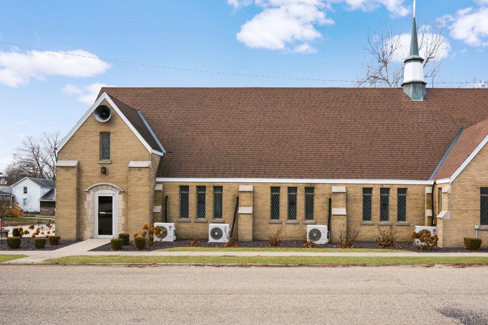 This beautifully maintained church in Danvers, Illinois offers endless possibilities. The 5,300 square-foot facility is in excellent condition and completely move-in ready. A longtime local landmark, it serves as an ideal home for a growing congregation, ministry, or organization seeking quality space with character. It also presents a fantastic opportunity for creative repurposing. With its solid foundation and welcoming presence, this church is perfectly positioned for continued faith, community, and future possibilities. This spacious and inviting church features solid full brick construction that has stood the test of time. It offers comfortable heated floors throughout, creating a warm and welcoming atmosphere even during the coldest Illinois winters. The main sanctuary comfortably seats over 100 people and includes an upstairs choir loft and a permanent altar that will remain with the property. Additional amenities include a full kitchen with two gas stoves and three sinks, a dedicated staff office, two classrooms, and a large hall ideal for gatherings and events.