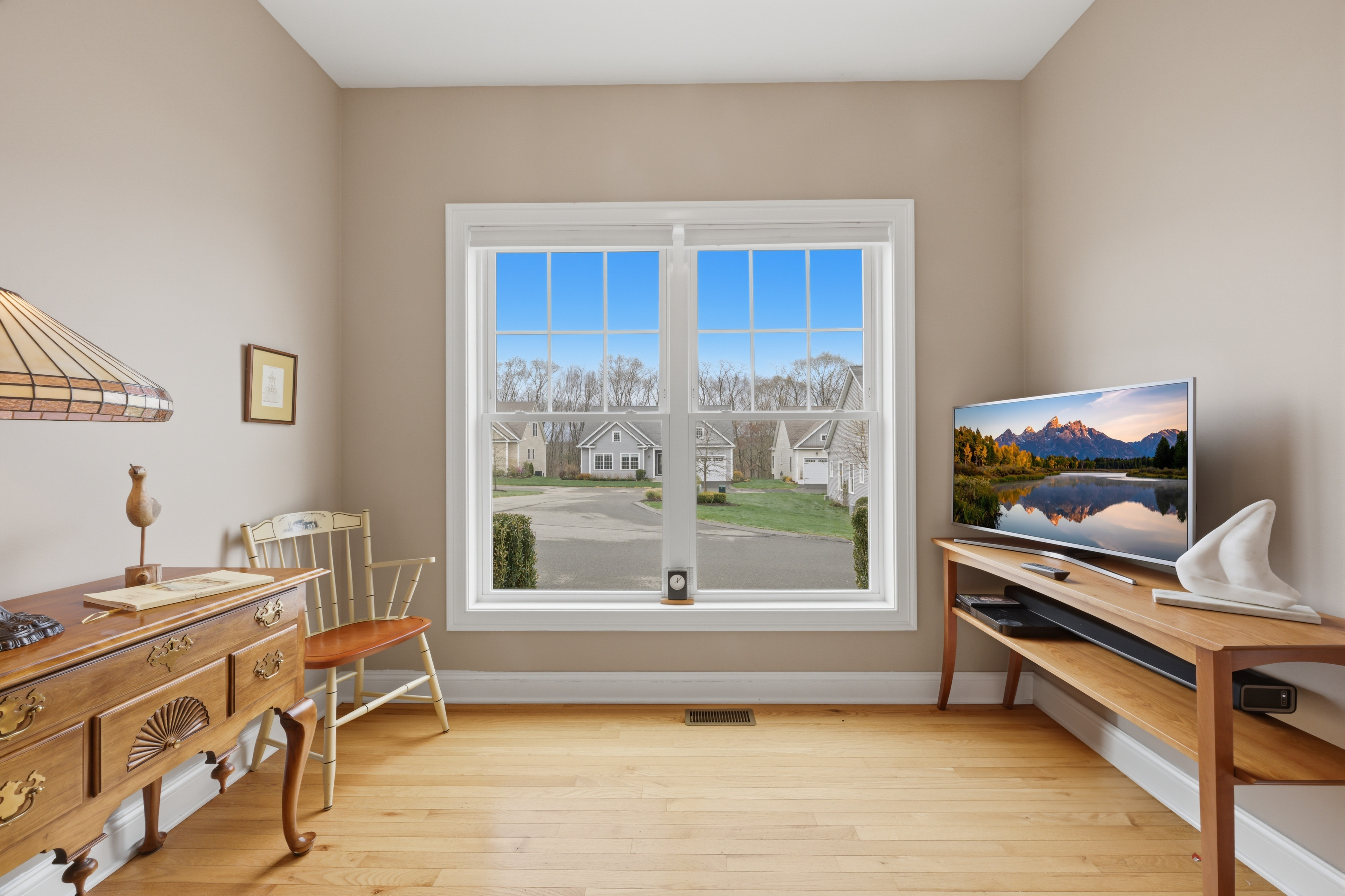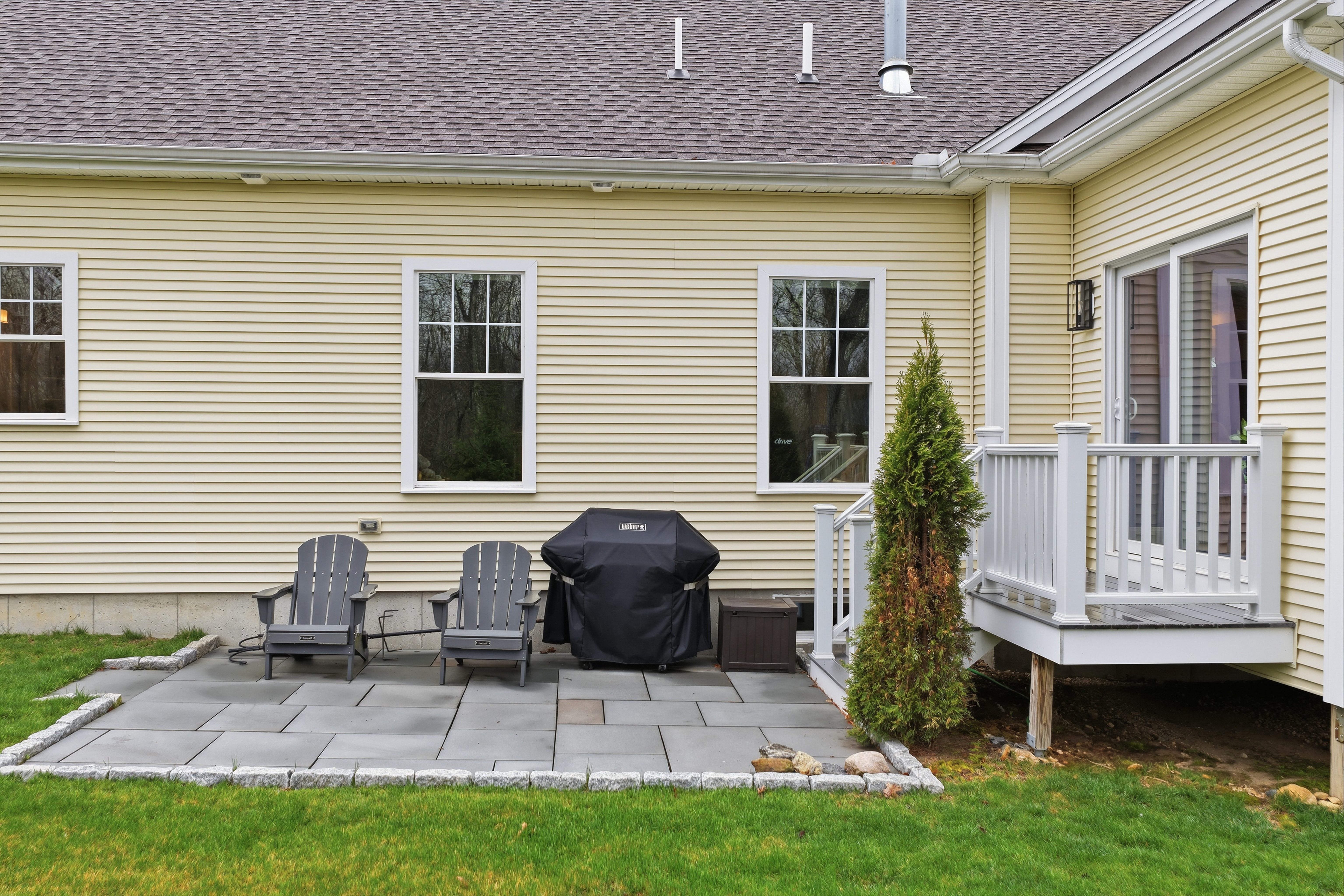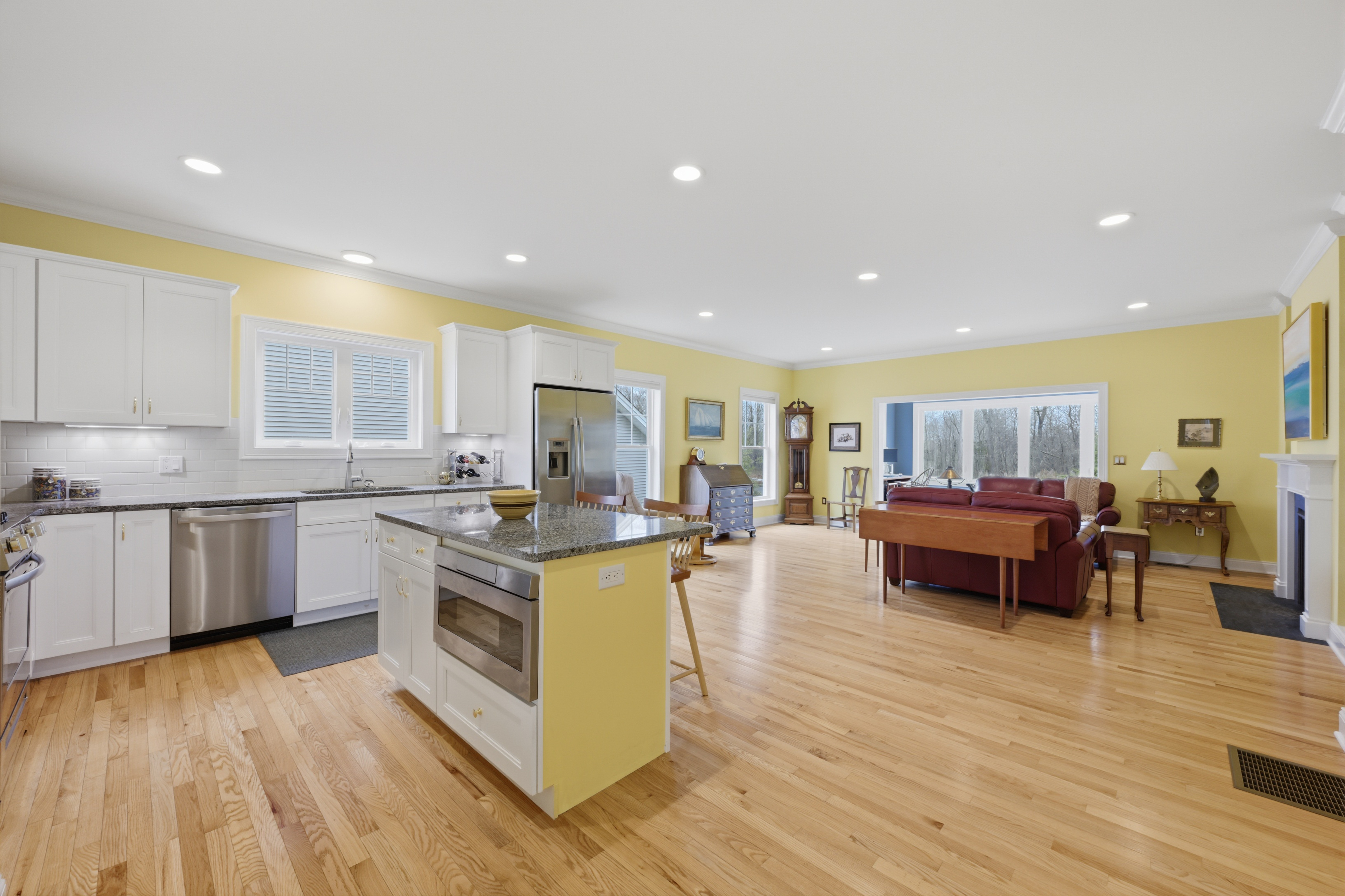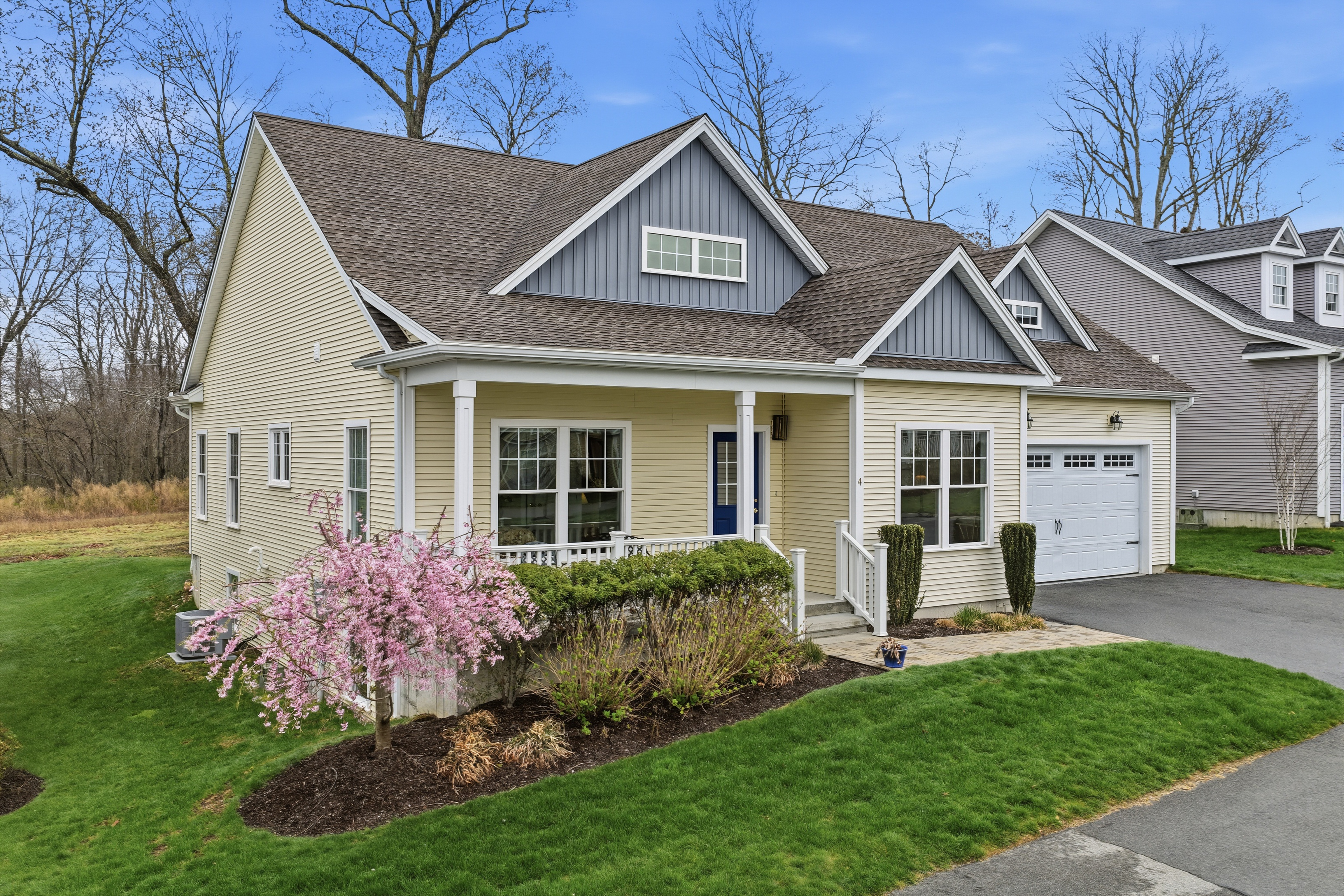 Tucked within an intimate enclave of just 26 thoughtfully designed homes in Essex -- often celebrated as "The Best Small Town in America" -- this one-owner residence, built in 2018, offers a refined yet effortless lifestyle. A free-standing design provides privacy, while the community handles lawn care and snow removal, making everyday living refreshingly simple. Low utility costs and favorable Essex taxes add to the appeal. Inside, the Centerbrook layout is bright and inviting, centered around a white kitchen with stainless appliances and a generous island that opens to a comfortable living and dining space. A sunroom extends the living area, filling the home with natural light and offering easy access to the backyard. The first-floor primary suite features dual walk-in closets and a spacious bath with a walk-in shower. In addition to a guest room, another flexible room in the front can serve as a den, office, study. With first-floor laundry and two full baths, the home blends thoughtful design with easy, low-maintenance living.
