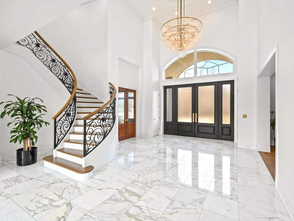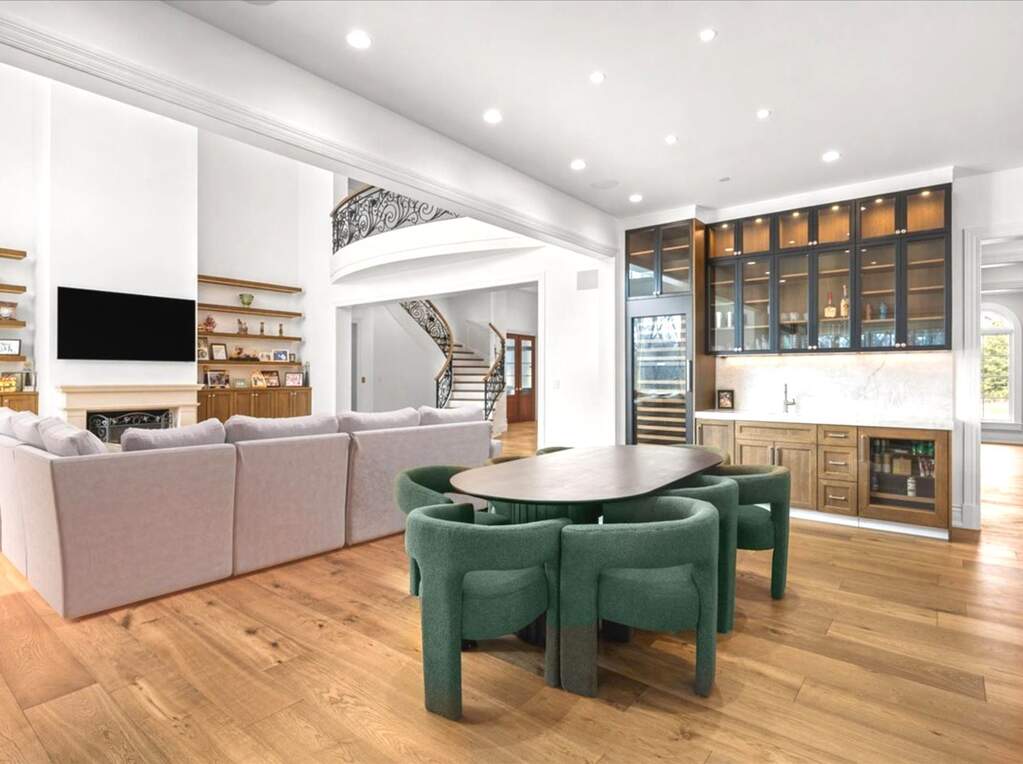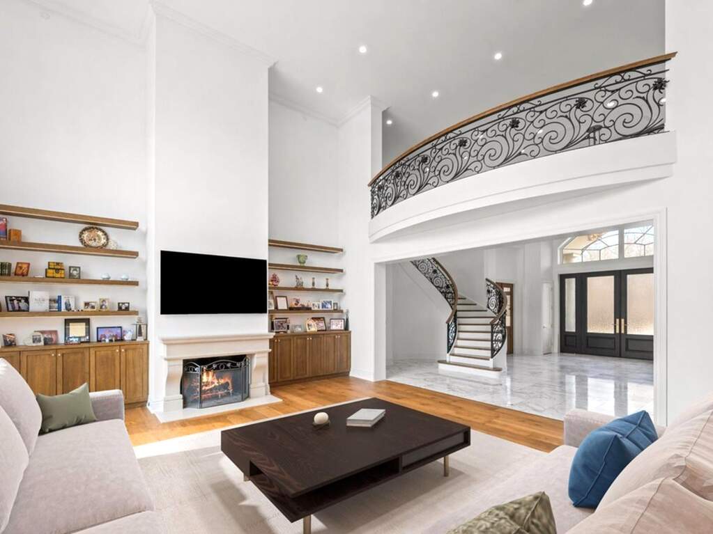 Sophisticated new custom built 5 bedroom, 6 full bath & 2 half bath home with guest house, patio, pool & spa located on over 3 acres. This limestone & stucco clad home w/composite terra cotta Spanish roof tiles boasts unsurpassed quality construction by Red Rock Homes & is accompanied w/high-end interior designer finishes by Ilene Chase. Some of the home's highlights include: soaring ceilings, open floor plan, wide plank hardwood floors, custom built-ins, wood-paneled elevator, professional grade appliances, upgraded electrical & Smart home integration system, guest house, 50'x25' outdoor pool & spa. 1st level features a grand foyer w/soaring ceiling, RH brushed brass & crystal tiered chandelier, marble floors & bridal staircase. A formal dining room that is the ideal entertaining space connects to a built-in butler's pantry w/Quartzite counters & antiqued mirror backsplash. Expansive sun-filled great room w/22' ceilings, stone surround wood-burning fireplace that is flanked by custom wood built-ins & French sliders leading to outdoor entertaining areas. The great room leads directly to a gourmet chef's kitchen featuring custom bespoke white cabinetry, Quartzite Iceberg counters & backsplash, professional ss appliances featuring 60" commercial Wolf range w/double ovens, Wolf microwave, Sub-Zero refrigerator/freezer & 2 Bosch dishwashers. A large center island w/Iceberg Quartzite waterfall countertop, prep sink, seating & tons of storage. Wet bar w/custom bespoke dark-stained wood & black cabinetry, Quartzite counter & backsplash, ss hammered bar sink, ice maker, beverage refrigerator plus full-size Sub-Zero designer wine refrigerator. Spacious eat-in area is perfect for large gatherings & opens to a bright 4-season sunroom w/vaulted wood-paneled ceiling & a wall of glass doors that make indoor/outdoor entertaining seamless. Formal powder room w/custom wall covering, vanity w/marble counter & herringbone oval sink & eclectic brass sconces. The private primary wing of the home features a handsome study w/wood & reeded glass French privacy doors, herringbone hardwood floors, wet bar, black marble carved fireplace mantle surround, grass cloth wallcovering & wood coffered ceiling w/smoke eater. The office leads to a secondary formal powder room w/custom wood vanity with double thick block marble countertop, custom wall covering and modern sconces. A luxurious primary suite w/tray ceiling, gas fireplace & sliders that lead to patio & pool areas. Other highlights include a morning bar, dressing area & custom walk-in closet w/ substantial built-ins. Spa-like luxurious primary bath featuring porcelain tile heated floors, double vanities w/quartz countertops, separate make-up vanity, oversized shower w/steam, rain showerhead, wall sprays and sleek touch-style control for Smart bath features, plus Kohler jetted soaking tub w/quartz decking & 2 commode closets, one with urinal. Mudroom w/custom built-ins & back staircase access, plus spacious laundry room is located off the 4 car heated garage w/EV chargers for each space. Completing the 1st level is a full pool bath & changing area w/custom built-in storage, located off the mudroom w/sliders leading directly to rear pool, spa & patio. The 2nd level boasts a catwalk w/magnificent views of the foyer & great room below. 3 additional generous-sized bedrooms all w/en-suite luxurious baths & custom walk-in closets. Plumbed for additional washer/dryer. Lower level features huge rec room, wet bar w/wine fridge, exercise room, dry-sauna, 5th bedroom w/full bath & tons of storage. The ideal outdoor PRIVATE entertaining space features a 9' deep in-ground pool & spa surrounded by expansive 5,000 sq. ft. porcelain tile patio decking, built-in fire-pit & outdoor BBQ grill w/stone surround & honed bluestone countertop. An 1,100 sq ft guest house provides guests privacy with sitting/rec room, full kitchen, bedroom w/en-suite bath, laundry & changing area. A rare opportunity to own this brand-new home!