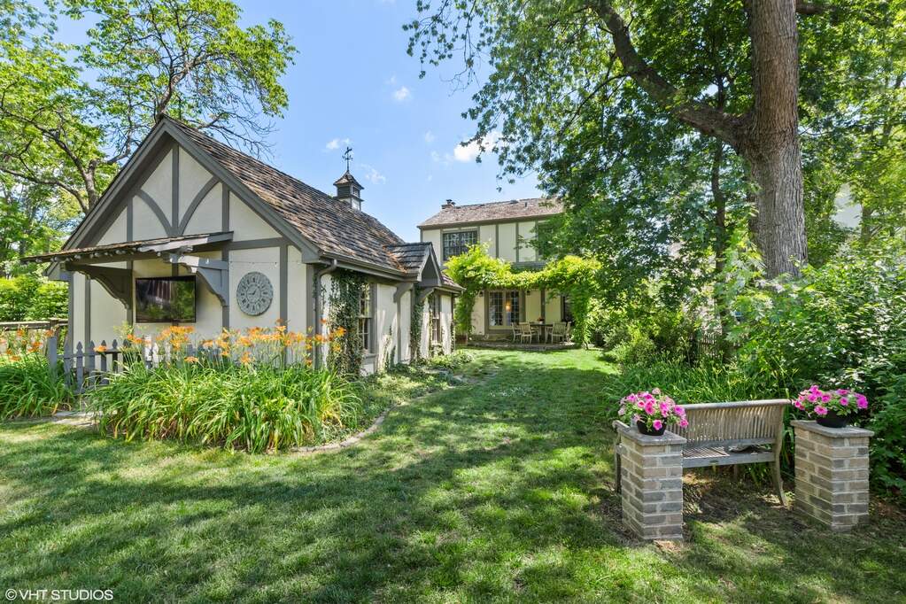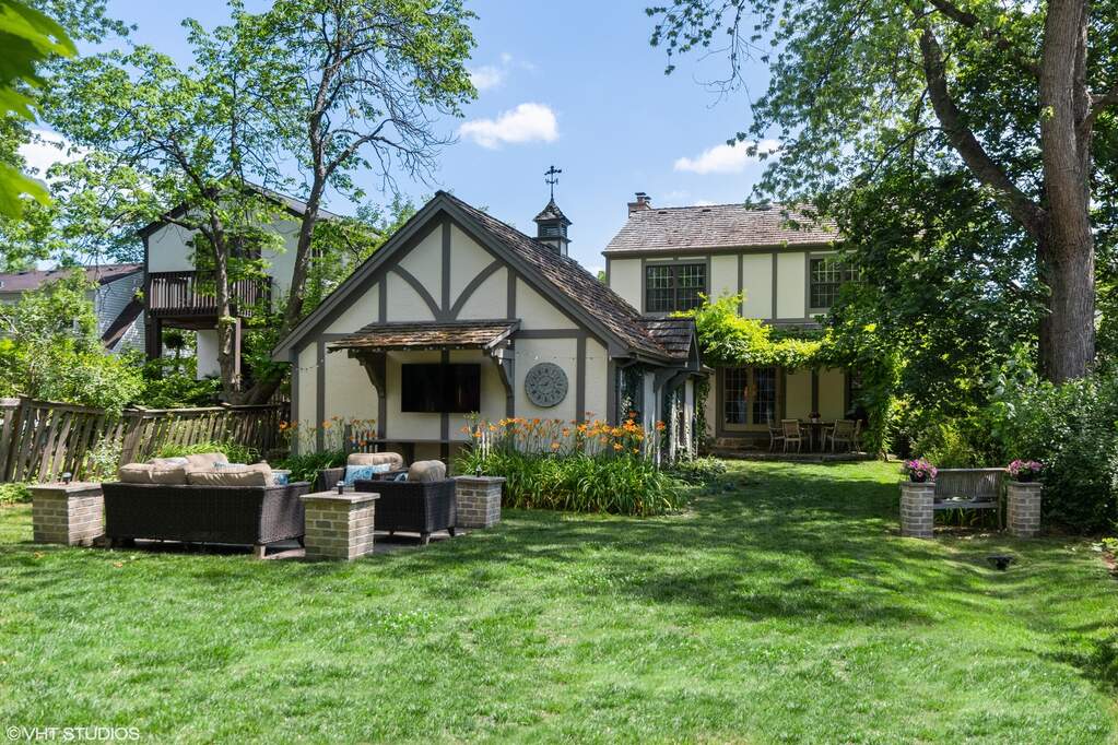 Welcome home to this adorable Tudor home with an incredible location walkable to downtown HP, Ravinia, and Green Bay Trail. Upon entering the home, you'll see a living room with wood-burning fireplace and elegant built-ins, a light and bright study, and a stunning kitchen with beverage fridge and peninsula with counter seating. A custom banquette in the dining room adds charm and convenience. The second floor has a primary suite featuring an extra-large en-suite bathroom and multiple closets, including a walk-in, and two more bedrooms that share a hall bath. The lower level has loads of living space for play or entertaining, large laundry room, several large storage closets, and a full bath. Outstanding outdoor space, featuring two patios and an impressively-sized yard. The first patio has a pergola with its own ceiling of vines for ultimate ambiance, and the second patio has a built-in fire pit and covered place to hang an outdoor TV, including power access to the garage for game days. The backyard is fenced-in via an electric gate on the driveway. A huge 2-car heated garage with additional storage above is the cherry on top! Please note the roof has been replaced with asphalt shingles (2024). Showings will begin on Thursday, 4/30.