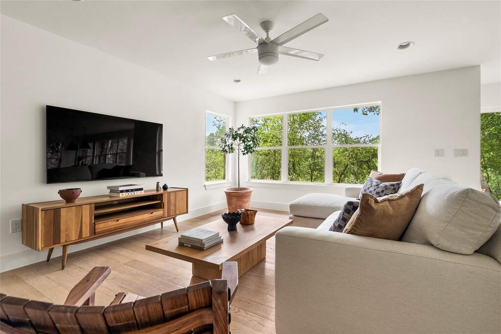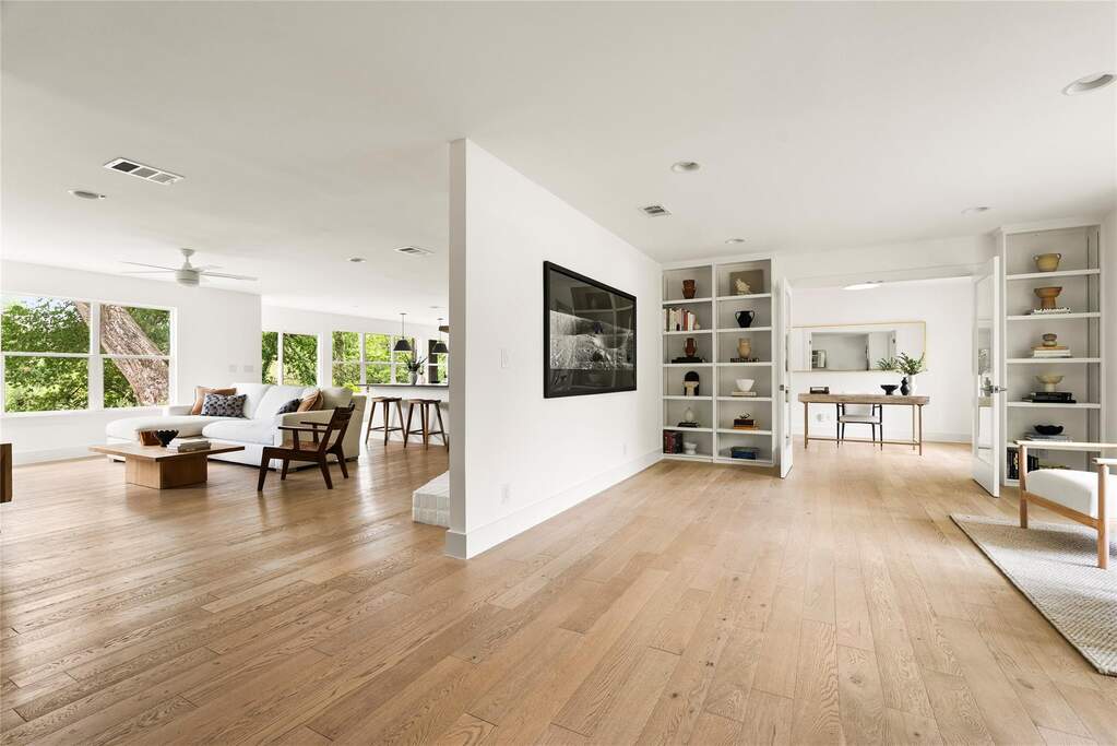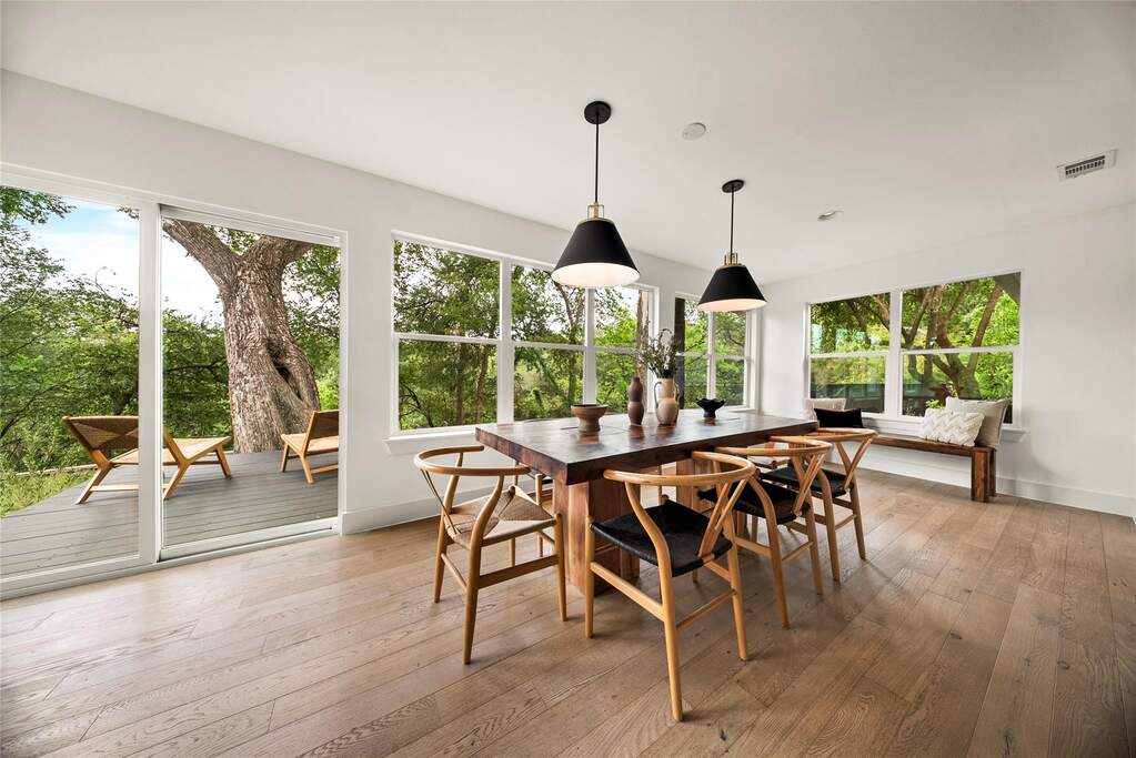 Tucked along Shoal Creek in the heart of Shoalmont, this beautifully renovated 1959 ranch style home offers a rare blend of privacy, space, and effortless Central Austin living. Set on an expansive .63-acre lot with no rear neighbors, the property opens to peaceful, uninterrupted creekside views - an unexpected retreat just minutes from the city's most vibrant destinations. Spanning over 2,250 square feet, the single-story layout is both functional and inviting, featuring 3 bedrooms, 2 baths, and a dedicated office. A striking wall of windows anchors the living spaces, drawing in natural light and framing the lush, tree-lined backdrop. White oak floors, custom cabinetry, quartz countertops, and thoughtfully selected finishes reflect the home's timeless design with modern comfort. The connection to the outdoors is seamless. A flat, usable backyard is designed for both quiet mornings and lively gatherings, with stairs leading directly down to Shoal Creek for easy access to explore and unwind. Native plantings and drought-tolerant landscaping create a low-maintenance, environmentally conscious setting, while a Certified Wildlife Habitat and pollinator garden invite butterflies, songbirds, and even the occasional red-shouldered hawk - offering a backyard experience that feels both curated and completely natural. A versatile two-car garage adds flexibility, easily serving as a studio or workspace. Quiet, central, and undeniably special, this is a rare opportunity to own a true Shoalmont original-where classic architecture meets a setting that's nearly impossible to replicate.