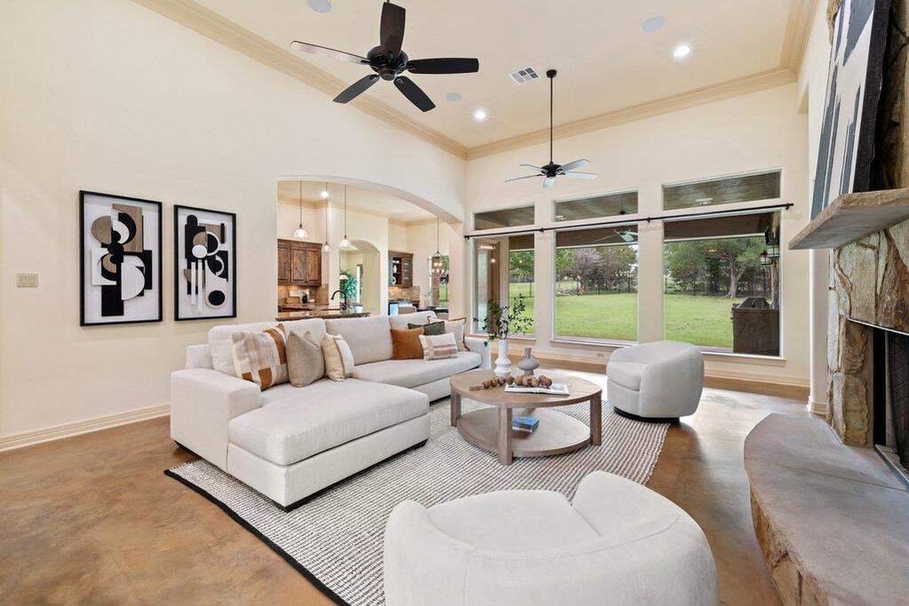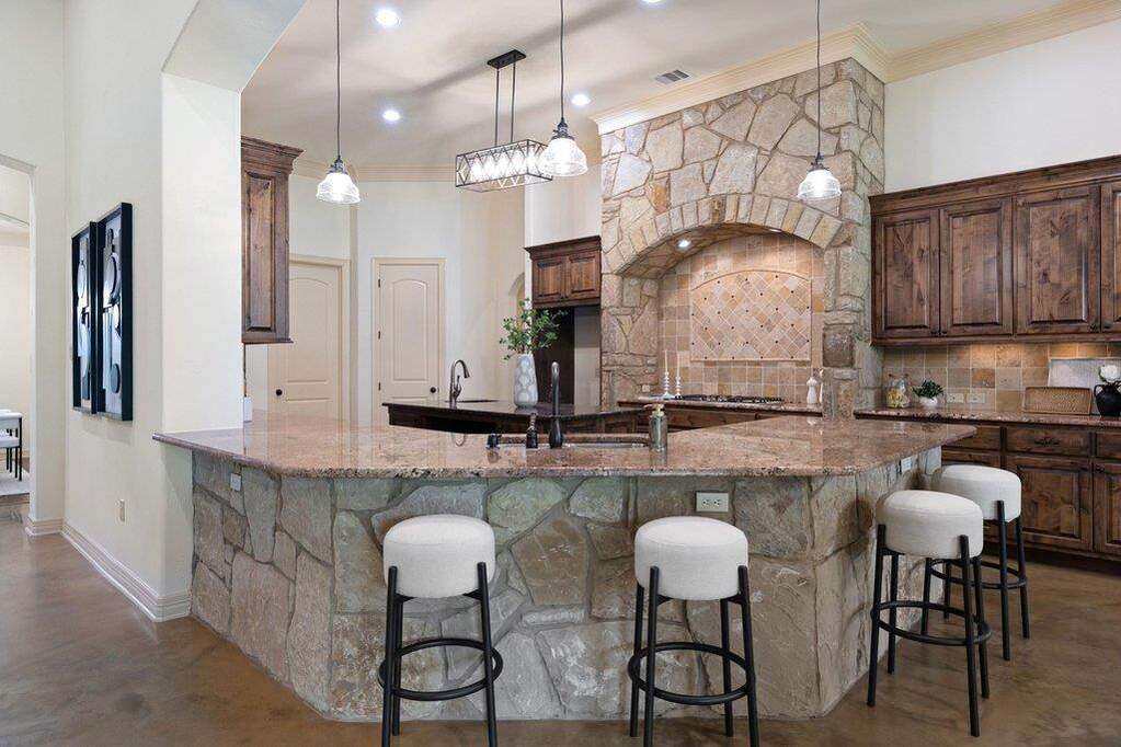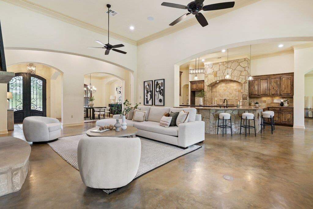 Custom built single-level residence in the highly desirable Estates of Westlake in the Woods community of Georgetown, Texas. A 1.1 acre lot with gentle upward slope helps create the home's impressive presence. Light stone and stucco exterior and the mature oaks in the front yard perfectly frame the home. Spanning over 3,600 square feet, the interior is defined by soaring ceilings and an atmosphere of "casual luxury." Stained concrete floors and natural stone accents seamlessly blend high-end refinement with the relaxed Hill Country aesthetic the community is known for. At the center of the residence sits a magnificent great room, anchored by a floor-to-ceiling stone fireplace and flanked by custom built-ins. This space flows effortlessly into the chef's kitchen and dual dining areas, making it an ideal hub for daily living. The kitchen is a masterclass in utility and style, featuring abundant custom cabinetry, a large center island, stainless appliances, and a dedicated wine bar equipped with a wine refrigerator and specialized storage. For more versatile entertaining, a secondary living area and a private media room are tucked thoughtfully off the kitchen. The Owner's Suite serves as a secluded sanctuary at the rear of the home, boasting rich hardwood flooring and an expansive walk-in closet. The floor plan is rounded out by a dedicated executive office, abundant storage throughout, and a side-entry three-car garage. The transition to outdoor living is seamless via the covered back patio, which features a full outdoor kitchen-perfect for enjoying the peace and privacy of the massive lot. Two miles from Lake Georgetown and Jim Hogg Park; 8 miles from Georgetown's charming historic square.