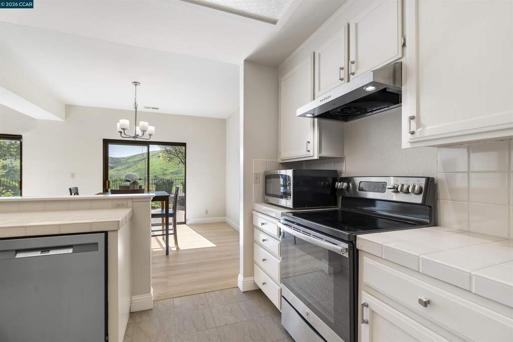 Fabulous Blackhawk Townhome with Gorgeous Views!! Beautiful Eagle Nest Townhome with 1,976 sq.ft. apx. on .11 ac. lot apx. inside the gates of Blackhawk. Charming Entrance! Marble tile foyer. 1st floor powder bathroom. Inviting kitchen with GE Range and recent stylish painted cabinetry, hardware and new Whirlpool stainless refrigerator. The adjoining family room conveniently located next to the kitchen is an ideal entertainment area or workspace area. New stylish laminate flooring in the family room, living room and dining area. The beautiful living room and dining area have picturesque views of the surrounding hills and access to the charming rear yard and outdoor patio. Well-designed floorplan with three bedrooms, two full baths and a convenient laundry room on the upper level. Primary Suite with volume ceilings, ceiling fan/light, and picturesque views. The adjoining primary bathroom with new elegant luxury vinyl flooring, two vanities, separate tub and shower and a walk-in closet. The upstairs secondary bedrooms share a lovely jack and jill bathroom. Gorgeous new laminate flooring in the Family Room and Living Room and Dining Room. New Carpet in 2025. Neutral Paint throughout. Fabulous place to call home for great indoor-outdoor living and views!