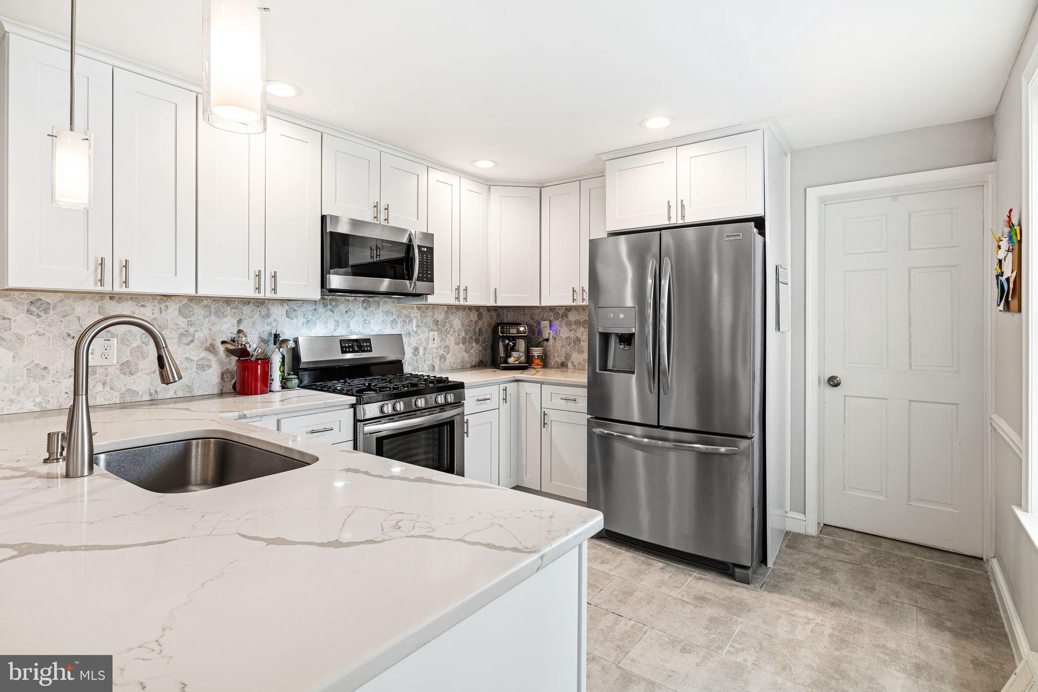 Welcome to 2316 Parrish Street - a 17-foot-wide, 3-bedroom, 3.5-bath row home on one of Fairmount's most beautiful tree-lined blocks. Fully-renovated in 2020 and further improved with major upgrades through 2024. Enter into a sun-filled, oversized living room with soaring 9-foot ceilings and a classic fireplace with a modernized mantel. Refinished hardwood floors run throughout. The open-concept dining and kitchen area is anchored by quartz countertops, a marble backsplash, tile flooring, and stainless steel appliances. A dedicated laundry area and a convenient powder room round out the first floor, which also leads to a private back patio - your first of two outdoor spaces. Upstairs, the second floor offers a generously sized bedroom with a full hall bath, plus a second bedroom with its own en-suite bath. The third floor features a flexible bedroom or primary suite, complete with a fully permitted, newly added full bathroom (2024) - giving the home a total of 3.5 baths. Step outside from the third floor onto the brand-new composite roof deck (2024), with centered skyline views perfect for entertaining, sunsets, and fireworks. The finished basement offers excellent additional living space with high ceilings and a natural light-filled egress window - ideal as a gym, media room, or home office - with a separate unfinished storage area as well. Recent major updates include: new roof (2023), new composite roof deck (2024), permitted third-floor bathroom addition (2024), recessed lighting and updated fixtures throughout, modern stair railings, and replacement windows throughout. All of this on a spectacular block, just a short walk to Fairmount Avenue's restaurants, bars, and coffee shops, plus Boathouse Row, the Art Museum, the Barnes, Whole Foods, Kelly Drive, and the Schuylkill River Trail.