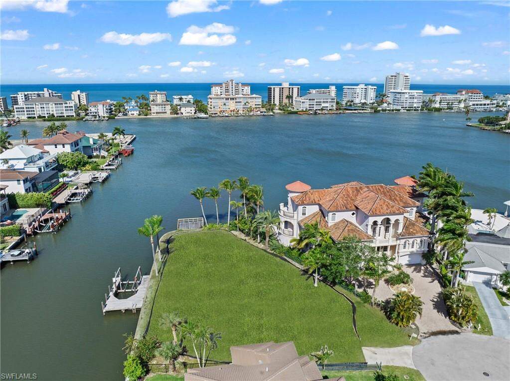 Wide bay views from this exceptional oversized point lot in Vanderbilt Beach! This property represents a trophy investment, the perfect canvas for your forever home with Southwest Exposure for Year-Round Sunsets! Discover a rare opportunity to own in highly sought after Conners community near the Ritz Carlton. Nestled at the end of a serene cul-de-sac, this stunning property boasts an impressive 0.37 acres of premium waterfront bliss featuring an astounding ~191 feet of water frontage. Perfect for boating enthusiasts, offers direct Gulf access, allowing you to be just minutes away from the open waters of the Gulf. Imagine crafting your custom estate on this expansive canvas, with ample space for a stunning residence, a luxurious pool, and generous outdoor living areas all framed by panoramic water views that will leave you in awe. This coveted point lot allows you to moor your boat on the side, preserving your breathtaking wide-open views and ensuring picturesque vistas from every angle! Enjoy the upscale shopping and dining at Mercato, and the luxurious amenities of The Ritz-Carlton. With no HOA restrictions. Embrace the coastal lifestyle you've always dreamed of make your vision a reality.
