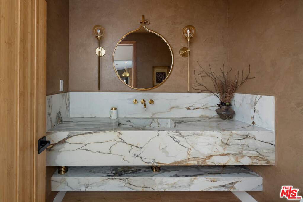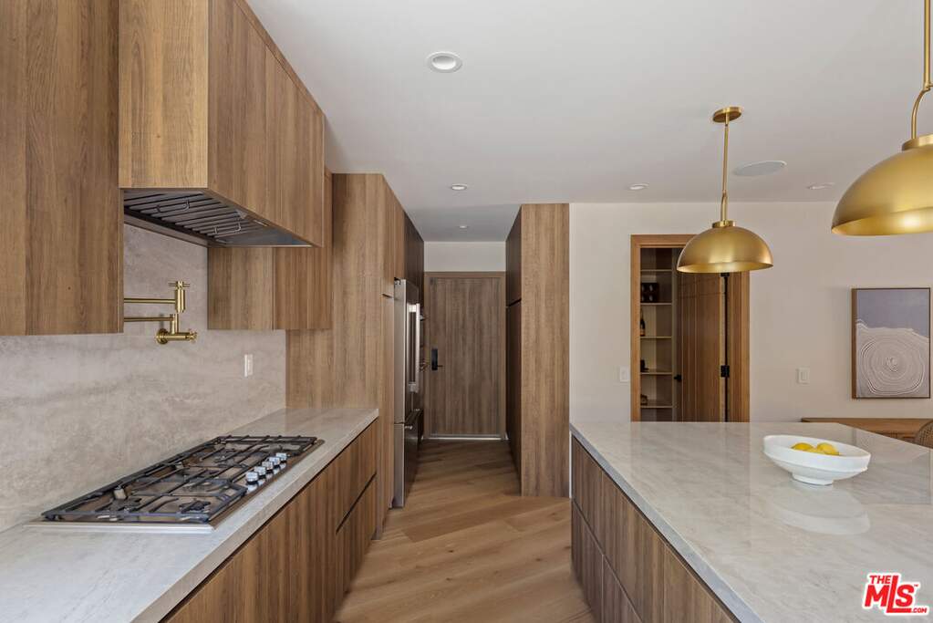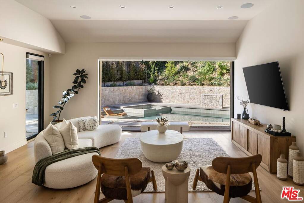 Nestled in the coveted hills of Sherman Oaks, this FULLY FURNISHED contemporary home offers 4 bedrooms and 3.5 baths with the perfect blend of luxury, style, and functionality. Step through custom double entry doors into an elegant living space highlighted by a stunning travertine porcelain slab fireplace and soaring 11-foot ceilings - wide-plank engineered wood floors flow throughout, while each bathroom showcases a refined Roman clay finish. Expansive Fleetwood sliding doors open to a private resort-like backyard with pool, spa, custom ledger stone throughout, a Pentair system and a full outdoor kitchen including a built-in barbecue, sink, and refrigerator surrounded by mature ficus throughout, ideal for effortless entertaining. This smart home is fully integrated with advanced RTI and ADT systems, featuring upgraded switches, Episode speakers, security cameras, and a premium whole-house audio setup. Thoughtfully designed and move-in ready, this home caters to the most discerning renters seeking a turnkey, fully furnished sanctuary in one of the Valley's most desirable neighborhoods.