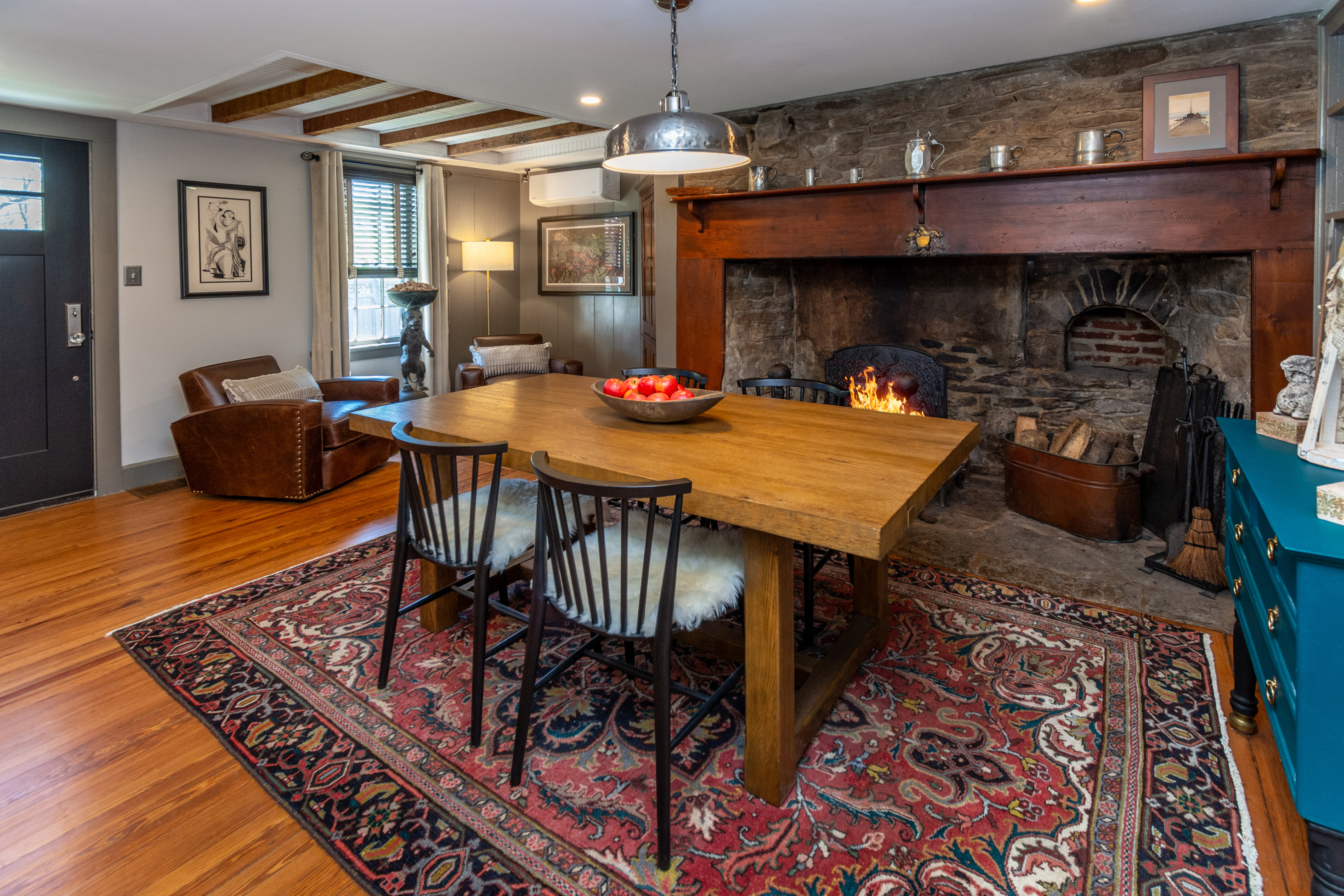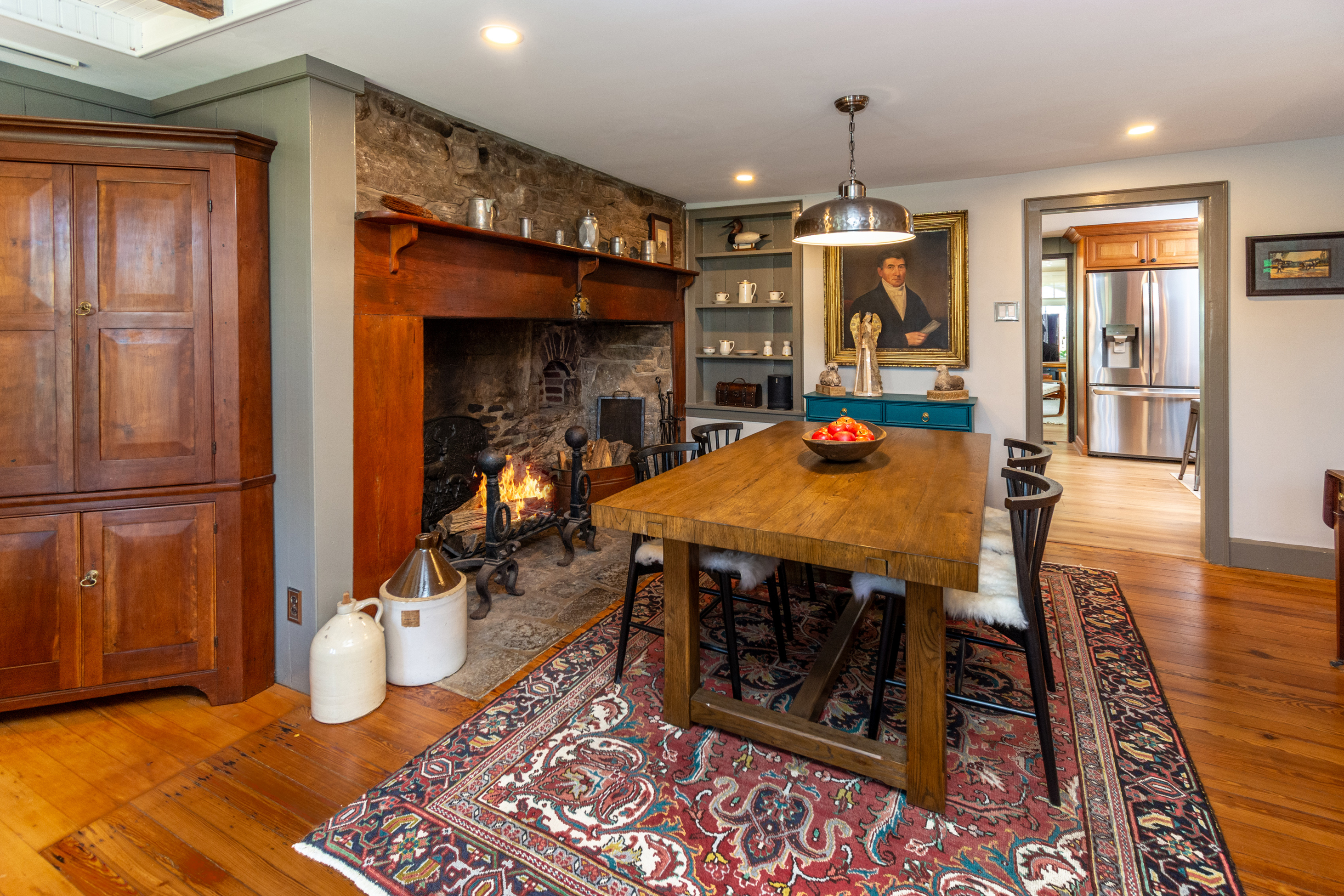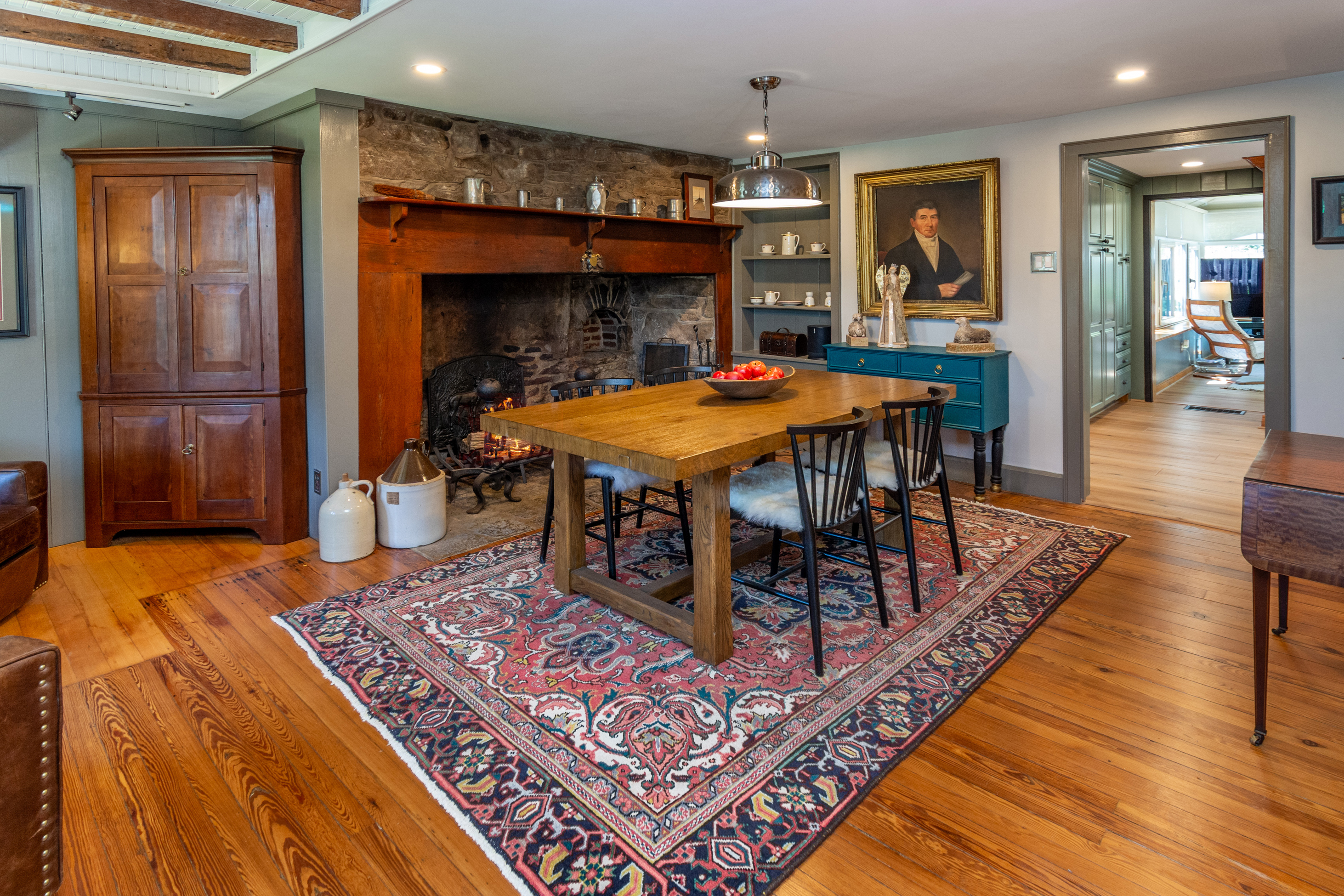 This property stands out in the best possible way. Tucked into scenic Solebury and just moments from New Hope and Lambertville, it blends classic Bucks County character with thoughtful, modern enhancements to create a truly special offering for those who appreciate both heritage and design. The grounds feel like a private retreat, featuring a recently renovated pool, fenced areas ideal for pets, and a mix of outbuildings that expand the property's possibilities. A sizable two-story barn with a heated studio, office, and workshop invites creativity. An original stone smokehouse with electric, a second level and the original smoking hearth intact, offers many possibilities. Mature landscaping surrounds the home with something in bloom all summer long. A bluestone patio adjacent to the smokehouse with a covered pergola and outdoor lighting sets the stage for entertaining or quiet evenings outside, draped in Edison lights, and the pool area, framed by trellises, feels like your own secret hideaway. Inside, the home reflects its early 19th-century origins while embracing a refined, updated aesthetic. Rich details such as random-width pumpkin pine floors, original built-in cabinetry, a dramatic walk-in stone fireplace with a period mantel and stone hearth is perfectly located in the formal dining room, and intricate hand-carved accents remain intact. Throughout the home, the woodwork has been carefully restored and painted, adding a polished finish that complements the historic elements. Hidden behind hand carved barn-style doors in the living room is a library and media center, adjacent to the second wood-burning stone fireplace and original cabinetry from the late 1700’s. The kitchen offers a fresh, modern feel while maintaining its connection to the home’s character. It features premium stainless appliances, including a wine fridge, honed granite surfaces, gas stove with a vented hood and a seamless flow into the sunroom with new AC and custom shades. A smartly designed kitchen with a full-extension roll-out pantry for maximum storage and an adjacent mudroom with generous closet space. A clever pass-through between the cozy sunroom and kitchen is perfect for entertaining. The laundry wing and renovated full bathroom, with direct access to a pathway leading to the pool area is smartly done with a soapstone sink, fully tiled room with radiant heat placed in the walls completes the main level. Upstairs, three bedrooms provide comfortable accommodation. One standout is a two-level suite with a home office below and a bedroom above, complete with cathedral ceilings and a skylight that brings in soft light. Just off this space is an oversized walk-in closet with built-ins, and a vision to convert it into an additional bathroom for those who may wish to expand. A large attic space is accessible from the walk-in closet area. Two additional bedrooms and a well-kept bath round out the second floor. A circular drive with a Belgian block entrance offers convenient parking in front, with additional off-street space accessible from Green Hill Road. Set in one of Bucks County’s most desirable locations, with easy access to New Hope, Peddler’s Village, Doylestown, and the Delaware River towns, this home offers a rare combination of history, craftsmanship, and updated living.