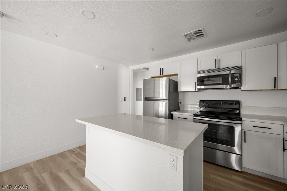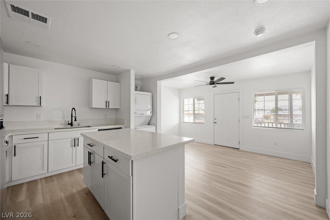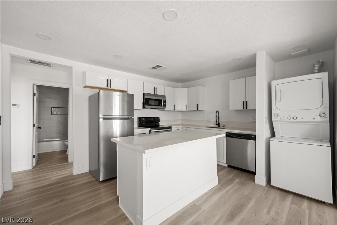 Welcome home to this beautifully remodeled 3-bedroom unit in a turnkey fourplex, where modern design meets everyday convenience. Step inside to an open-concept layout featuring stylish laminate flooring, recessed lighting, and a bright, contemporary feel throughout. The upgraded kitchen is designed to impress with white shaker cabinets, quartz countertops, and stainless steel appliances - including a refrigerator, range, microwave, and in-unit stacked washer & dryer for added convenience. This unit is Appx 800 Sq ft. The bathrooms have been thoughtfully updated with a sleek vanity and tiled shower, giving it a clean, modern finish. Enjoy peace of mind knowing the entire property has been upgraded with a new roof, windows, doors, and driveway, and a freshly painted exterior with crisp white walls and bold black trim for a sharp, modern look.