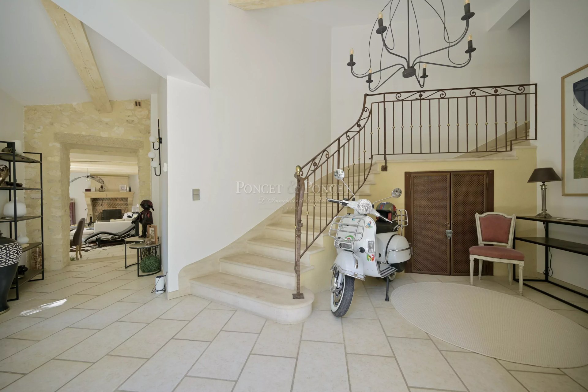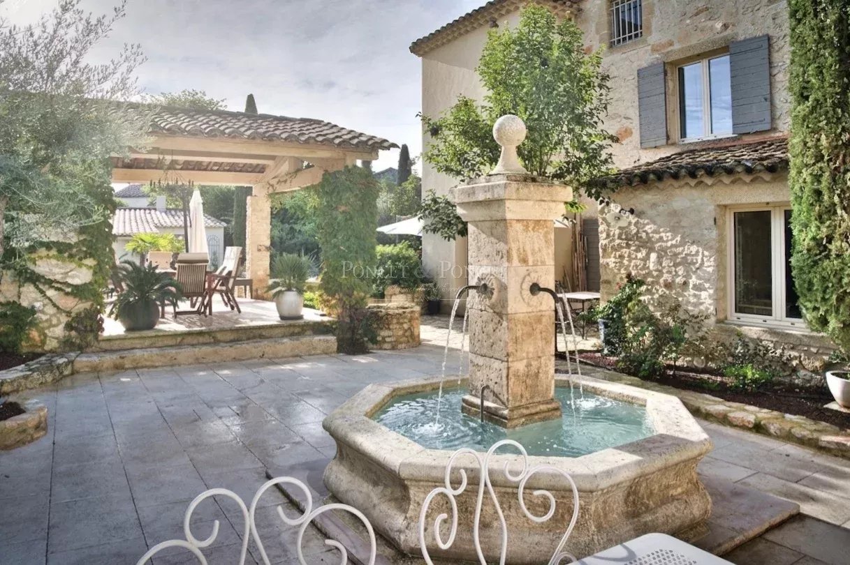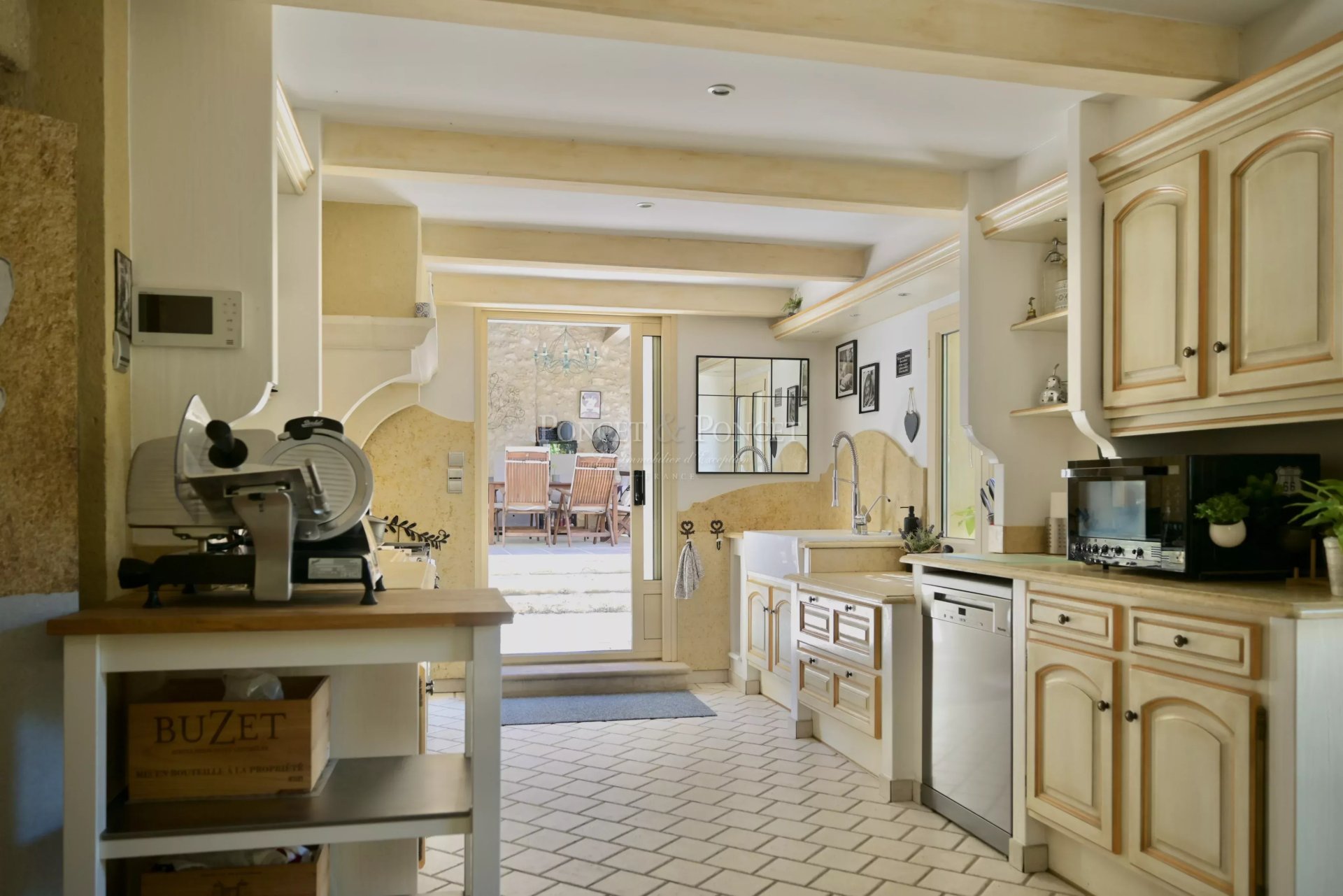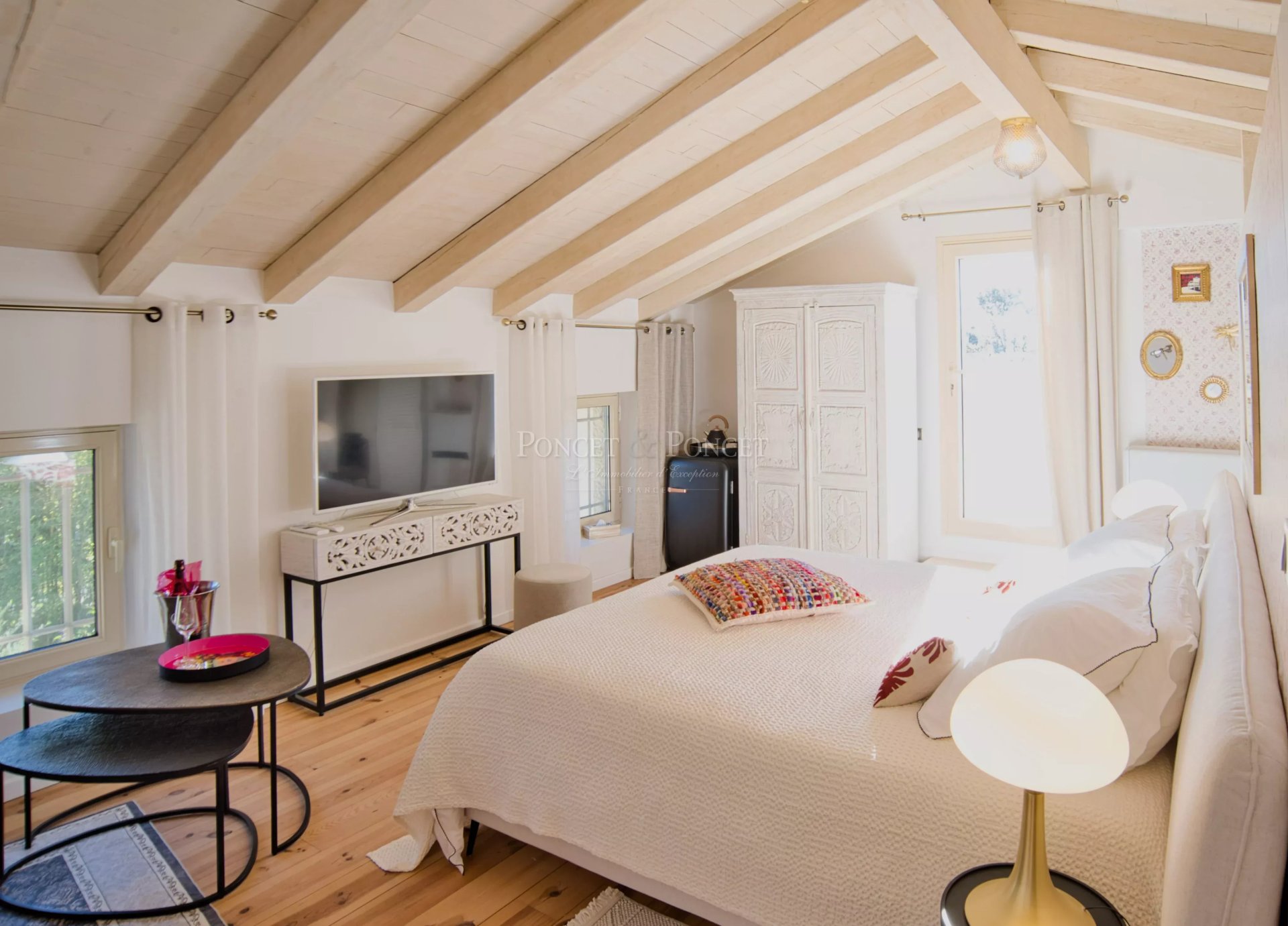 This elegant stone house, fully renovated and tastefully decorated, offers 359 sqm of living space and a layout that is both functional and harmonious. It is organized around several independent entrances along the façade: a first entrance leads to the warm living areas as well as a private section comprising two bedrooms, a dressing room, and a bathroom; a second entrance provides access to three additional bedrooms, each with its own shower room or bathroom, including a remarkable suite with a solarium and jacuzzi; finally, an independent annex by the pool hosts the last suite, offering privacy and comfort for guests. The property is further enhanced by a study, a laundry room, two fireplaces, a gym, a cellar, and two garages. Outside, the beautifully landscaped 1,200 sqm garden, perfectly maintained, features a swimming pool and a pleasant covered terrace, all benefiting from full southern exposure. Geothermal heating ensures optimal comfort throughout the year.