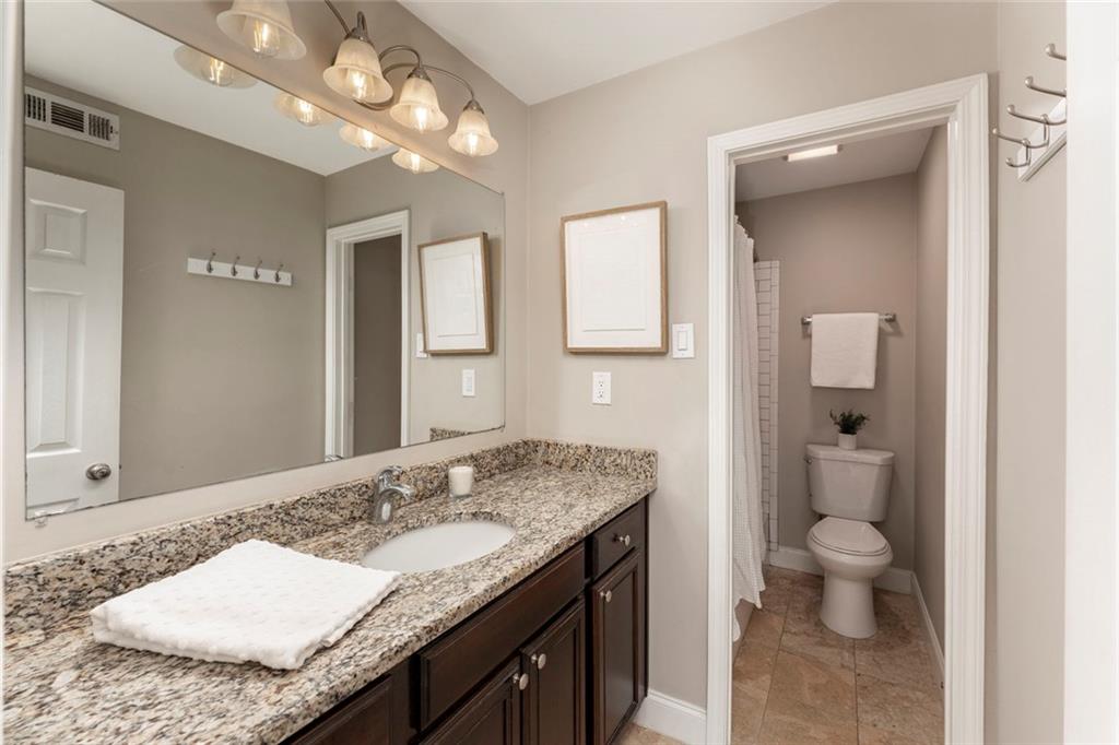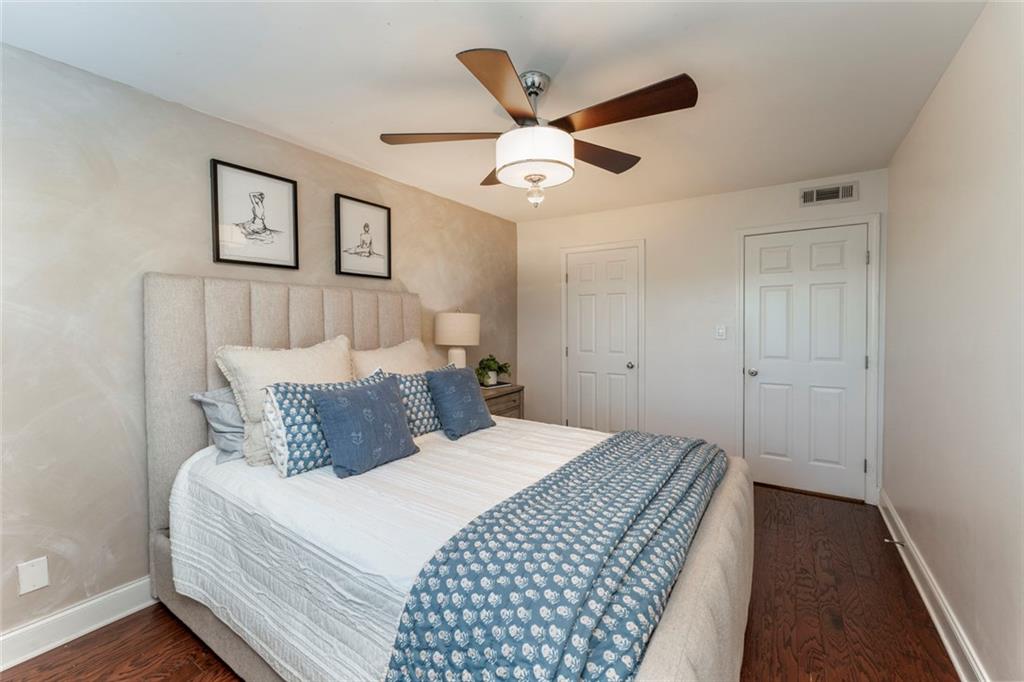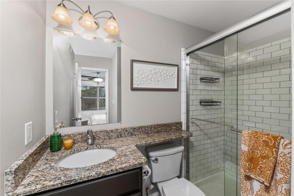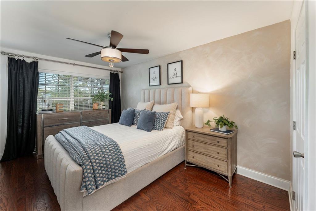 Beautiful 2-bedroom, 2.5-bath townhome-style condominium located in the peaceful, resort-style gated community of Stone Manor, in the heart of Sandy Springs. Enjoy all the conveniences of city living in a serene, well-maintained setting. Meticulously manicured landscaping and charming walkways create an elegant European ambiance throughout the community. This ideally situated unit is just steps from the pool, clubhouse, and recently updated fitness center. Inside, you'll find stone countertops and vanities, along with hardwood floors that provide both style and ease of maintenance. The bedrooms and private back deck overlook a wooded area, offering added privacy and a tranquil atmosphere. Custom built-ins provide abundant storage, enhancing both functionality and design. Walk to nearby shopping, parks, and trails, and enjoy quick access to Roswell Road and major highways (285, 75, and 85), making commuting anywhere in Atlanta simple and convenient.