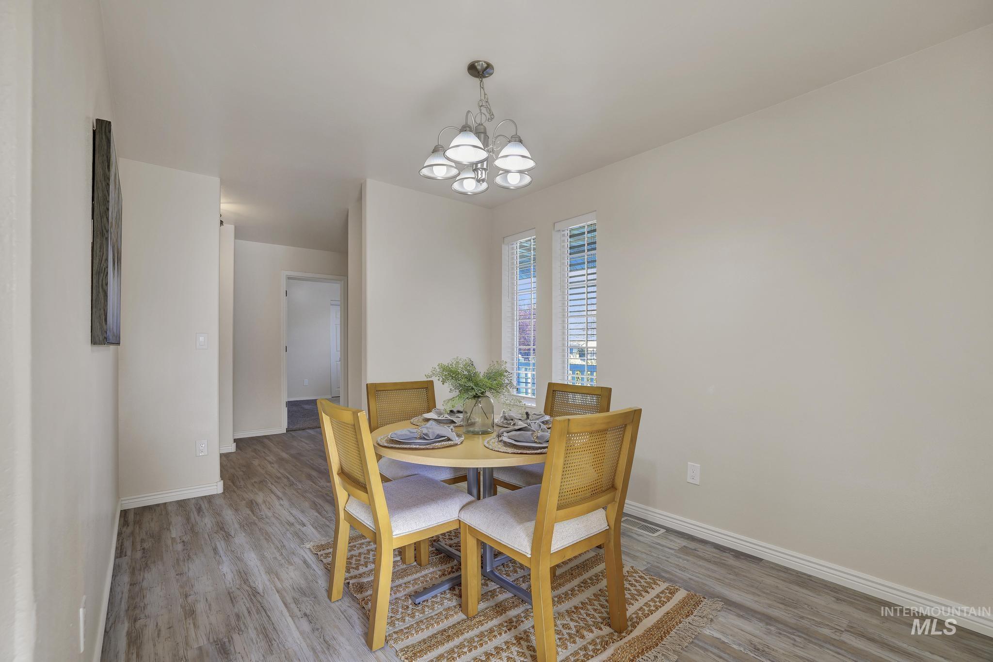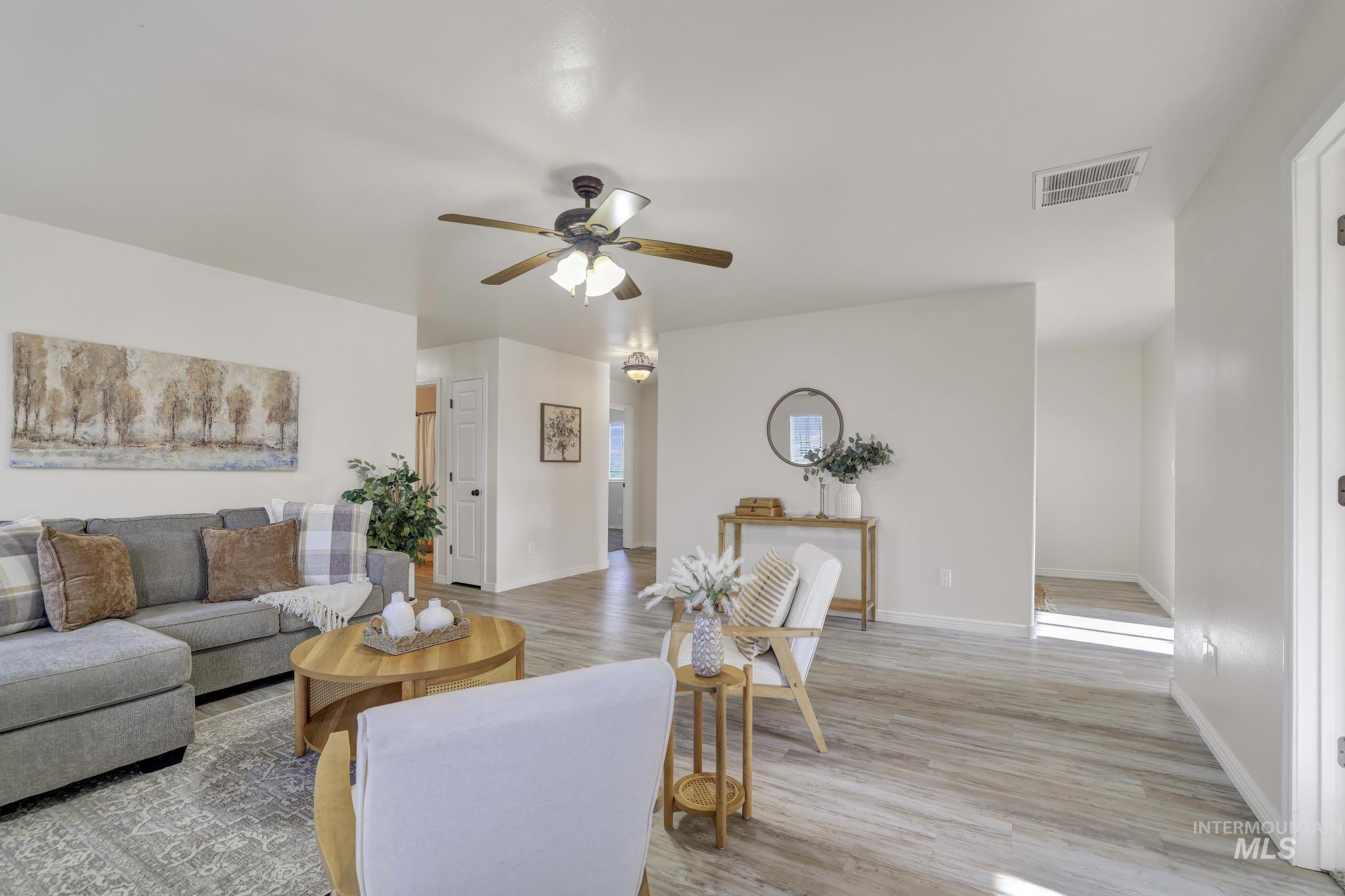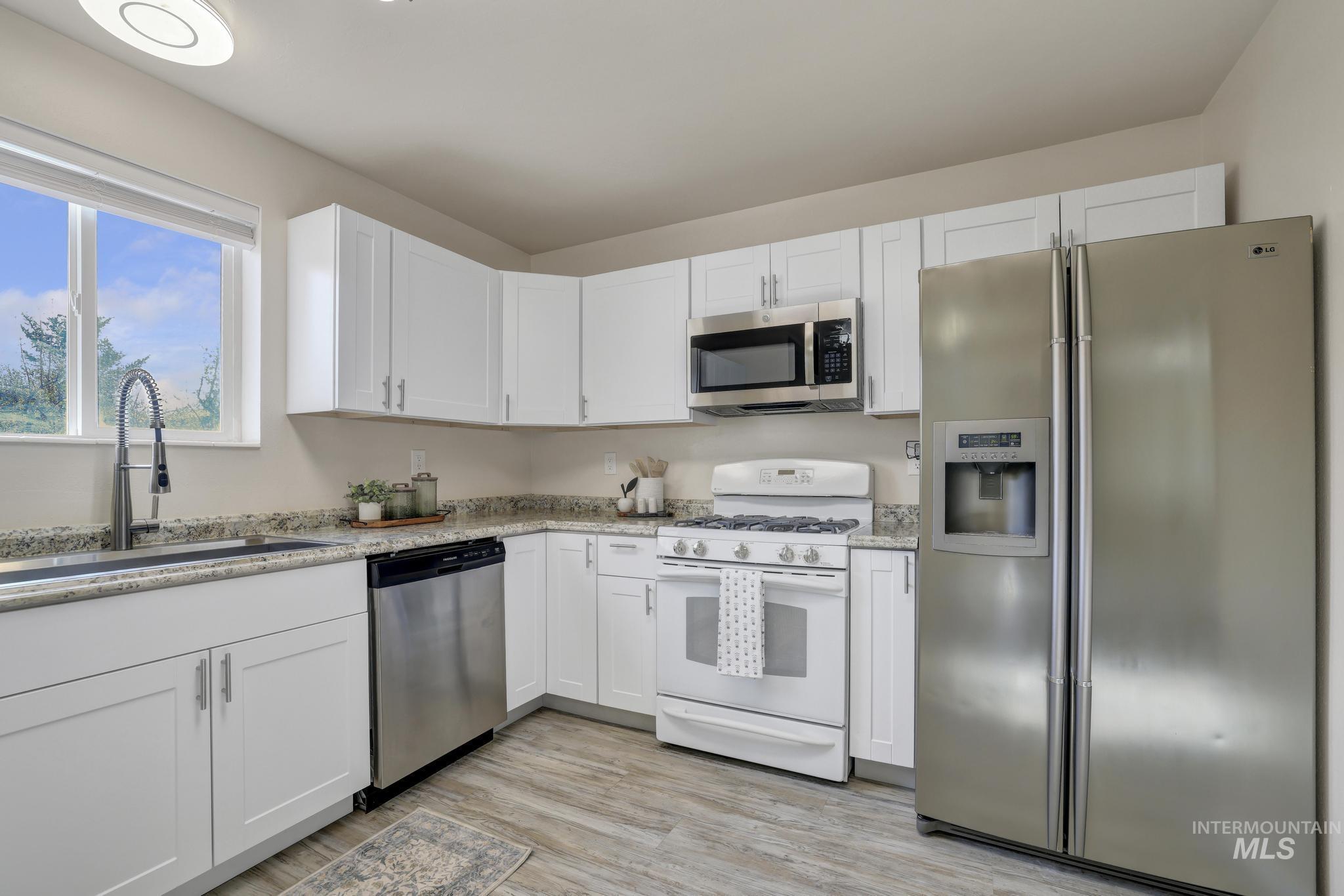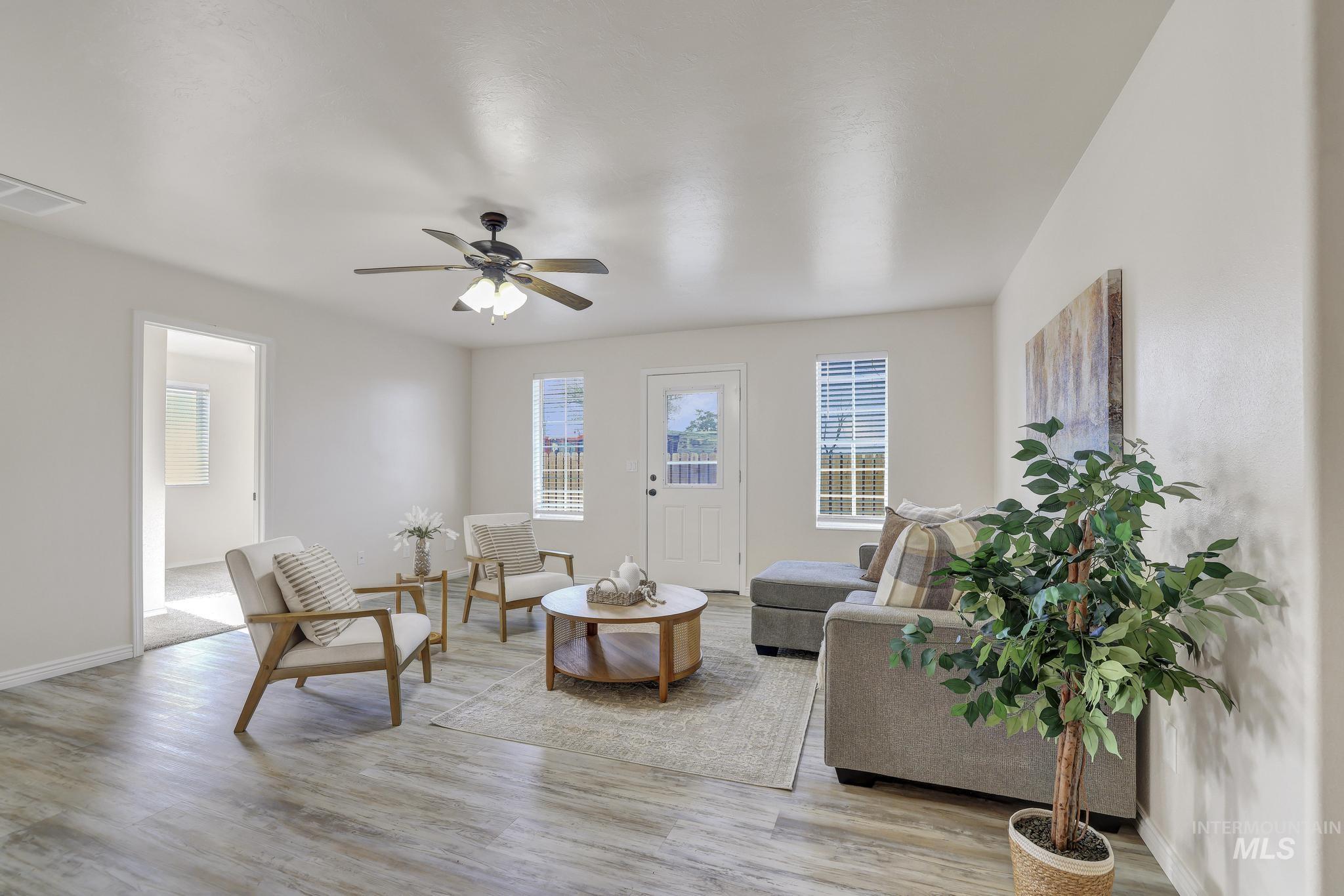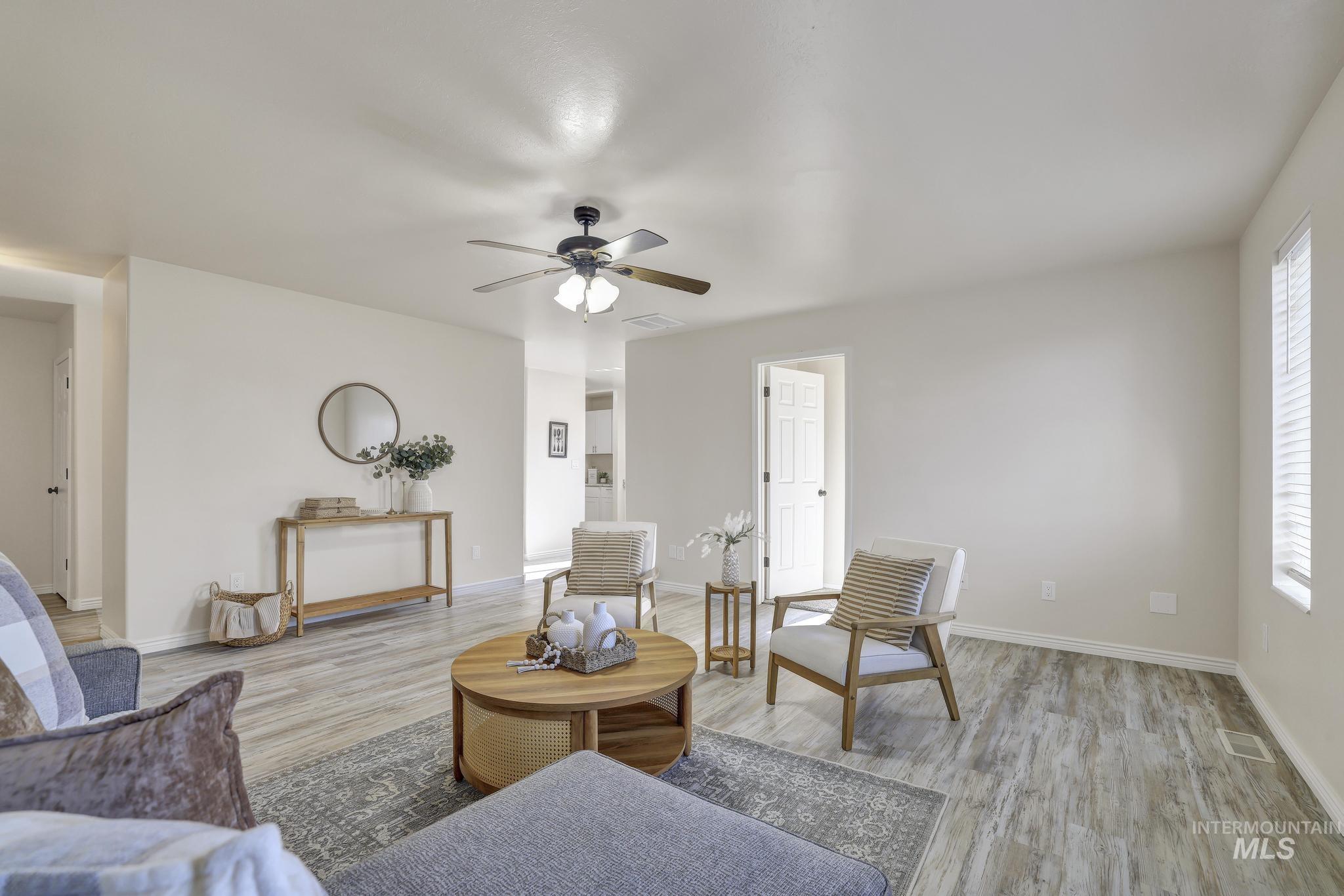 Welcome to 201 Garnet in Kimberly, a thoughtfully updated single-level home that blends comfort, function, and style in all the right ways. This 4-bedroom, 2-bath home features a well-designed floor plan that offers a little more privacy than the typical layout. As you walk in, the kitchen is intentionally set back, creating a more inviting living space right from the front door. The kitchen itself has been beautifully remodeled with fresh white cabinetry, giving it a clean, modern feel that's both bright and timeless. You'll also appreciate the separate dining area, perfect for hosting or everyday meals without feeling tucked into the main living space. The primary suite is a standout, featuring an updated bathroom with dual sinks and a large soaking tub that gives it a more relaxed, spa-like feel. Throughout the main living areas, you'll find durable LVP flooring that ties everything together and makes day-to-day living easy. Step outside to a fully fenced backyard complete with a sprinkler system, a spacious deck, and a gas BBQ hookup, making it set up and ready for summer evenings and entertaining. With an attached 2-car garage and a location in a desirable Kimberly neighborhood, this home checks the boxes for both functionality and lifestyle.