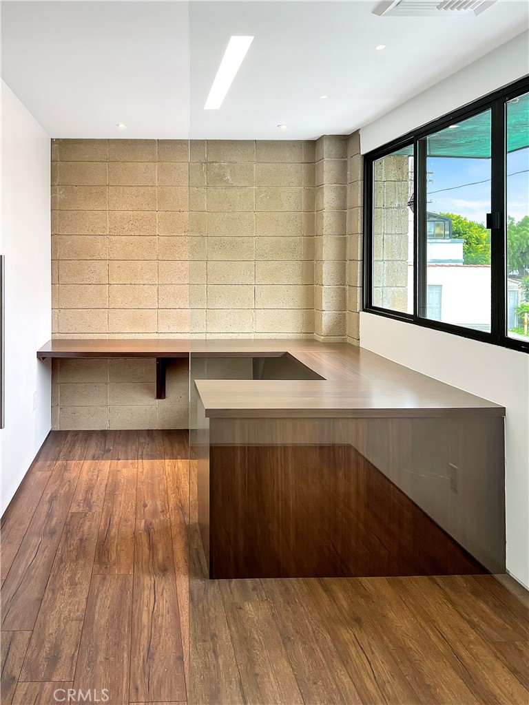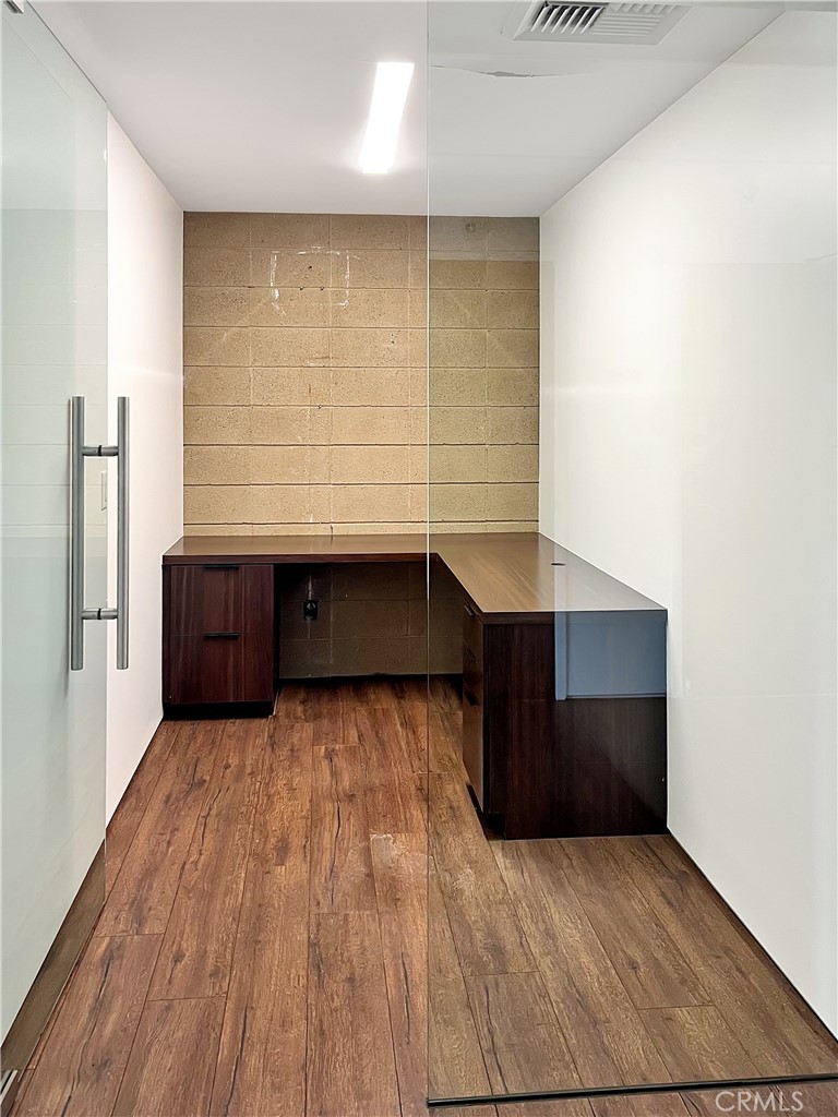 Office space for lease in a rare architectural gem designed by Eric Lloyd Wright. This one-of-a-kind building reflects the vision of an owner who set out to create more than just a workspace--it is a personal expression brought to life through thoughtful design and organic architecture. The exterior has patina copper and steel siding that changes color with age. The pyramid roof was designed with exact specifications of the Great Pyramid! The interior has been completely built out so nothing to do-- just move in! There are 2 units available for lease. Unit 201 has wood-like flooring, a nice sized main room with desks and cabinets, a kitchen area and 3 private offices all with built in desks. Incredible mountain views can be seen from the main area. Unit 202 has white marble flooring and 3 private offices with built in desks, shelving and a storage room. Both of these office space units are very special with dramatic interior pyramid ceilings. Both units have heating and A/C, the Restroom is located downstairs and each unit comes with 2 assigned parking spaces with an automatic gate entry. MUST SEE to appreciate. Located in a prime area of Glendale. No Build Out required. MOVE IN READY! A workspace that stands apart from the ordinary!