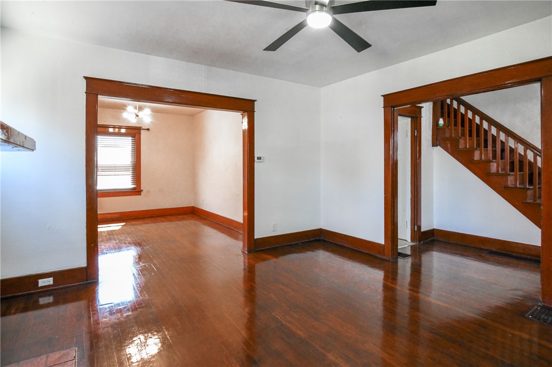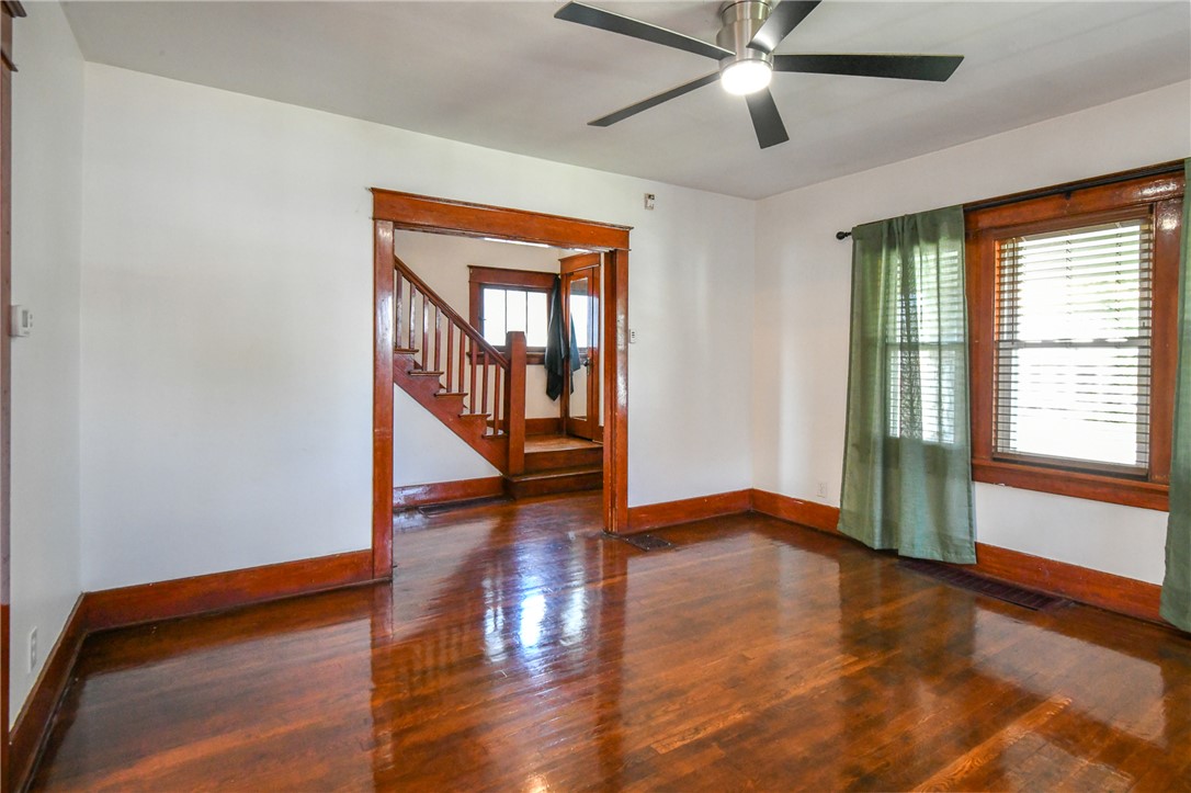 This inviting two-story residence is move-in ready, ensuring immediate comfort. Significant improvements have been thoughtfully integrated, providing aesthetic appeal and peace of mind. An updated electrical box and a roof replaced in 2019 contribute to long-term value. Inside, find a beautifully refreshed interior with new flooring throughout the home within the last year. Refinished hardwood floors and staircase. The kitchen benefits from updated flooring, creating a bright and functional space. New carpeting in the upstairs bedrooms and hallway. The bathroom, updated within the past two years, showcases modern fixtures. Outside, a fenced yard, complemented by a charming porch. A detached two-car garage offers ample parking and storage. This home is a true gem, meticulously prepared for its next chapter.