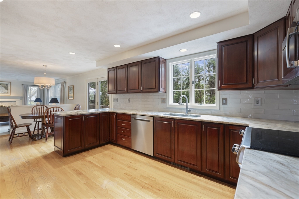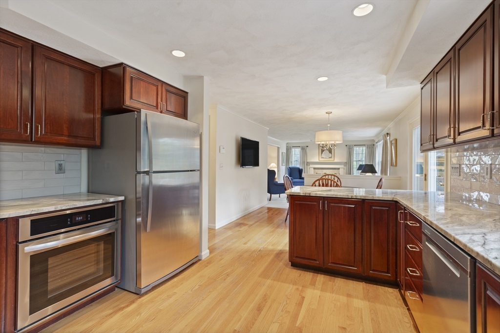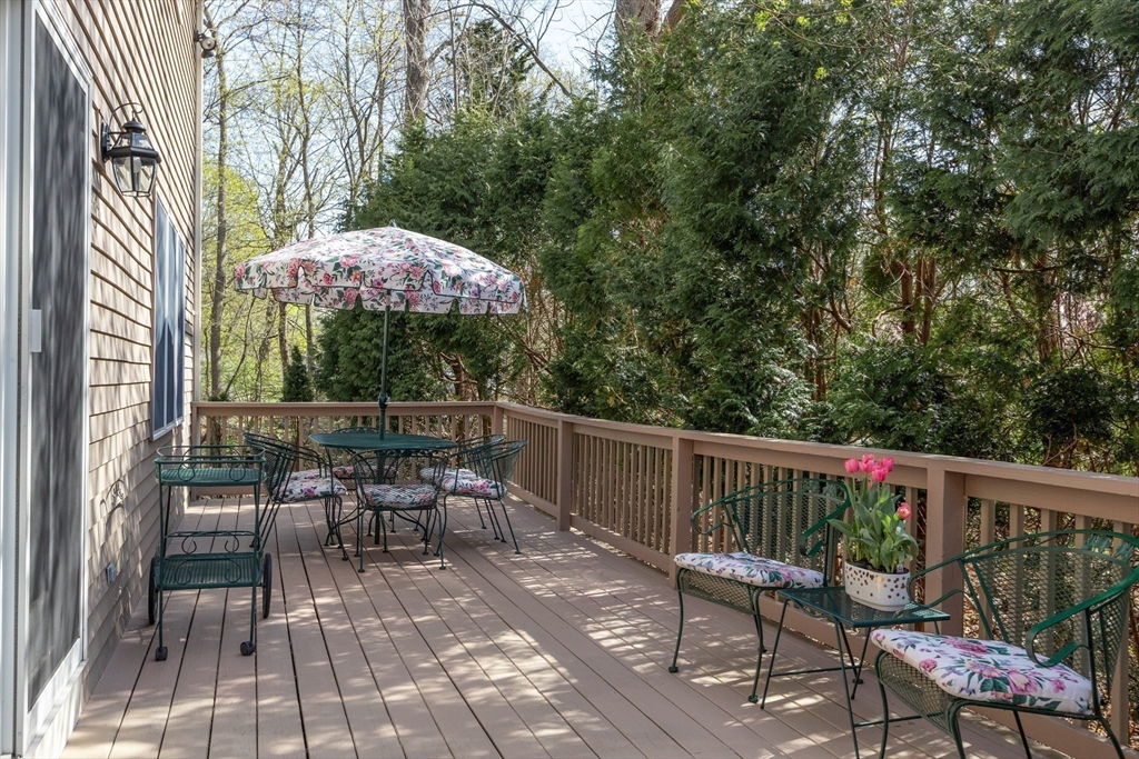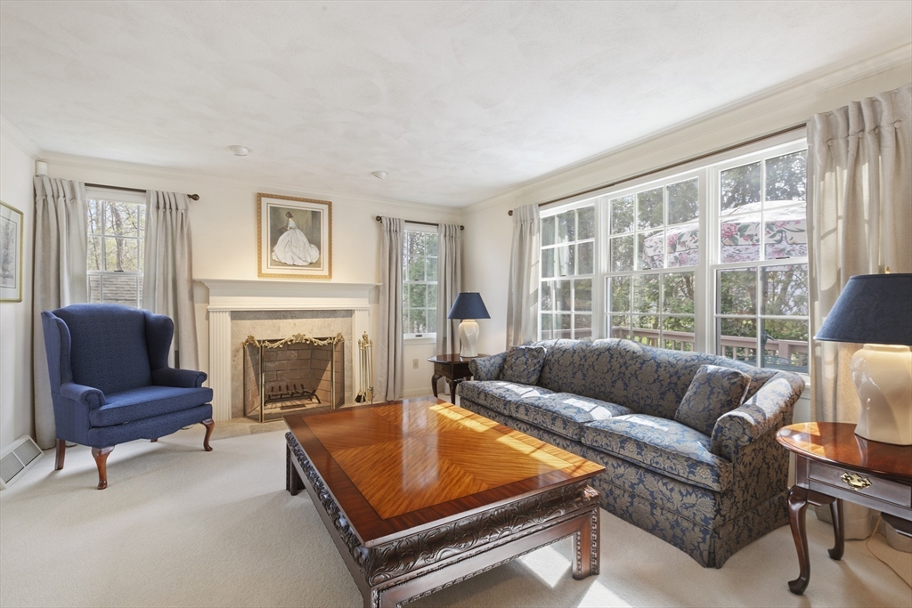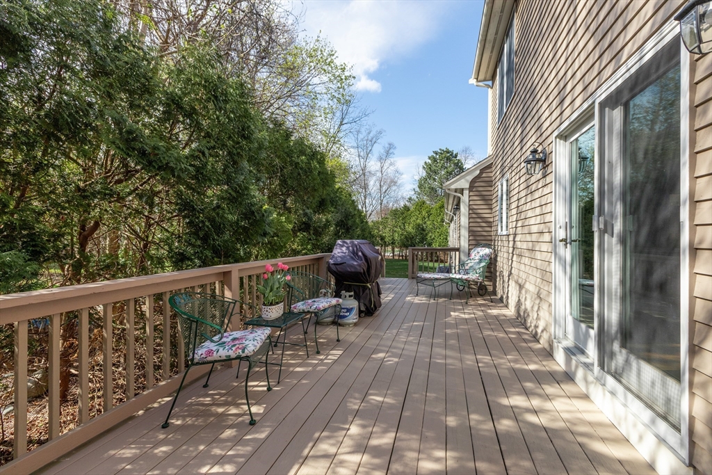 Custom built by its original owner and impeccably maintained, this exceptional four-bedroom Colonial offers the perfect blend of versatility, privacy, and convenience. Tucked away at the end of a cul-de-sac, the home enjoys a private oasis while remaining just moments from a vibrant downtown and adjacent to town recreation fields. Designed for both everyday living and entertaining, the fully appointed kitchen features stainless steel appliances, double ovens, and abundant cabinetry, seamlessly flowing into the dining area and fireplaced family room. A slider leads to an oversized deck overlooking the lush, Tuscan-inspired landscaping that creates a serene and secluded backyard retreat. A standout feature is the thoughtfully designed first-floor addition, originally built as an in-law apartment. Complete with a private front entrance, full bath, laundry, bedroom, and sitting area, this flexible space is ideal for extended family, guests, a home office, or entertaining.
