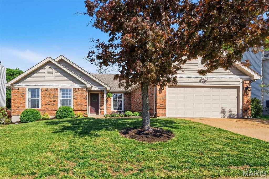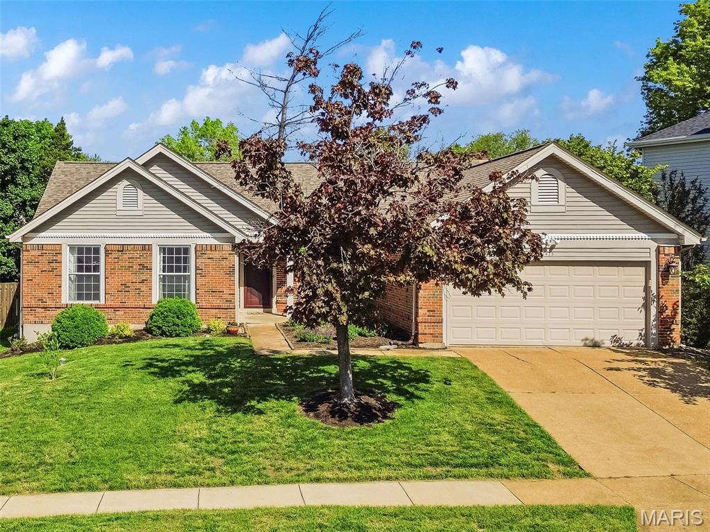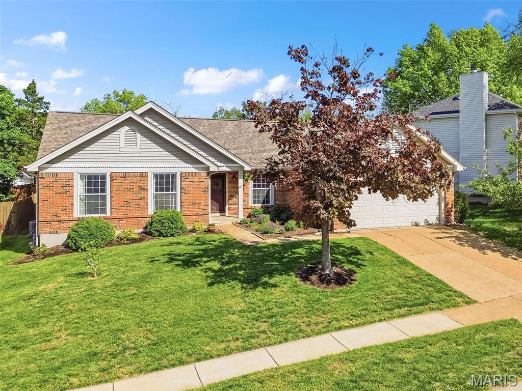 Welcome to this beautifully updated ranch home in the desirable Westbrooke Subdivision in Ballwin, MO. Offering 3 bedrooms and 2 full bathrooms, this home features a bright, open floorplan designed for comfortable everyday living and easy entertaining. The spacious living room showcases hardwood flooring and a cozy gas fireplace, flowing seamlessly into the eat-in kitchen complete with granite countertops, breakfast bar, and ample cabinet space. The main floor laundry adds convenience to your daily routine. The large primary suite includes an updated private bathroom, while additional bedrooms feature durable LVP flooring and fresh new carpet in the hallway. Step outside to enjoy the fenced backyard and covered patio - perfect for relaxing or hosting gatherings. Additional highlights include a new roof and thoughtful updates throughout.