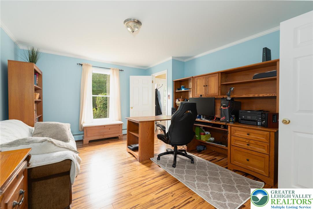 Beautiful 2-story Colonial situated on 1.48 acres in Brandywine SD. This property looks and feels spacious, offering a perfect blend of space, comfort, and thoughtful updates. Featuring 4 bedrooms, 2 1/2 baths, and a 2-car garage, the home includes elegant crown molding and warm bamboo flooring, adding a touch of character and continuity to the main living spaces. The eat-in kitchen, remodeled in 2017, features granite countertops, a ceramic tile backsplash, stainless steel appliances, a breakfast bar, and a dining area. The formal dining room opens to the rear deck - perfect for indoor/outdoor entertaining. The main level also offers a cozy living room, a flexible office or family room, and a convenient laundry room. Upstairs, the spacious primary bedroom includes a walk-in closet and private bath. Three additional bedrooms and a full hall bathroom complete the second floor, with Bedroom 2 offering great natural light and beautiful views of the backyard.The finished basement provides open space ideal for entertaining, while the unfinished area features built-in shelving & a workbench. A wood-burning stove supplements heat on the lower level & 1st floor during colder months.Outdoor highlights include a 12x16 shed attached to an 11x11 garage shed, a rear parking pad, grapevines, space for gardening, and a swing set. With its spacious layout, remodeled kitchen, versatile living areas, and beautifully maintained outdoor space, this home offers both everyday comfort & room to grow.