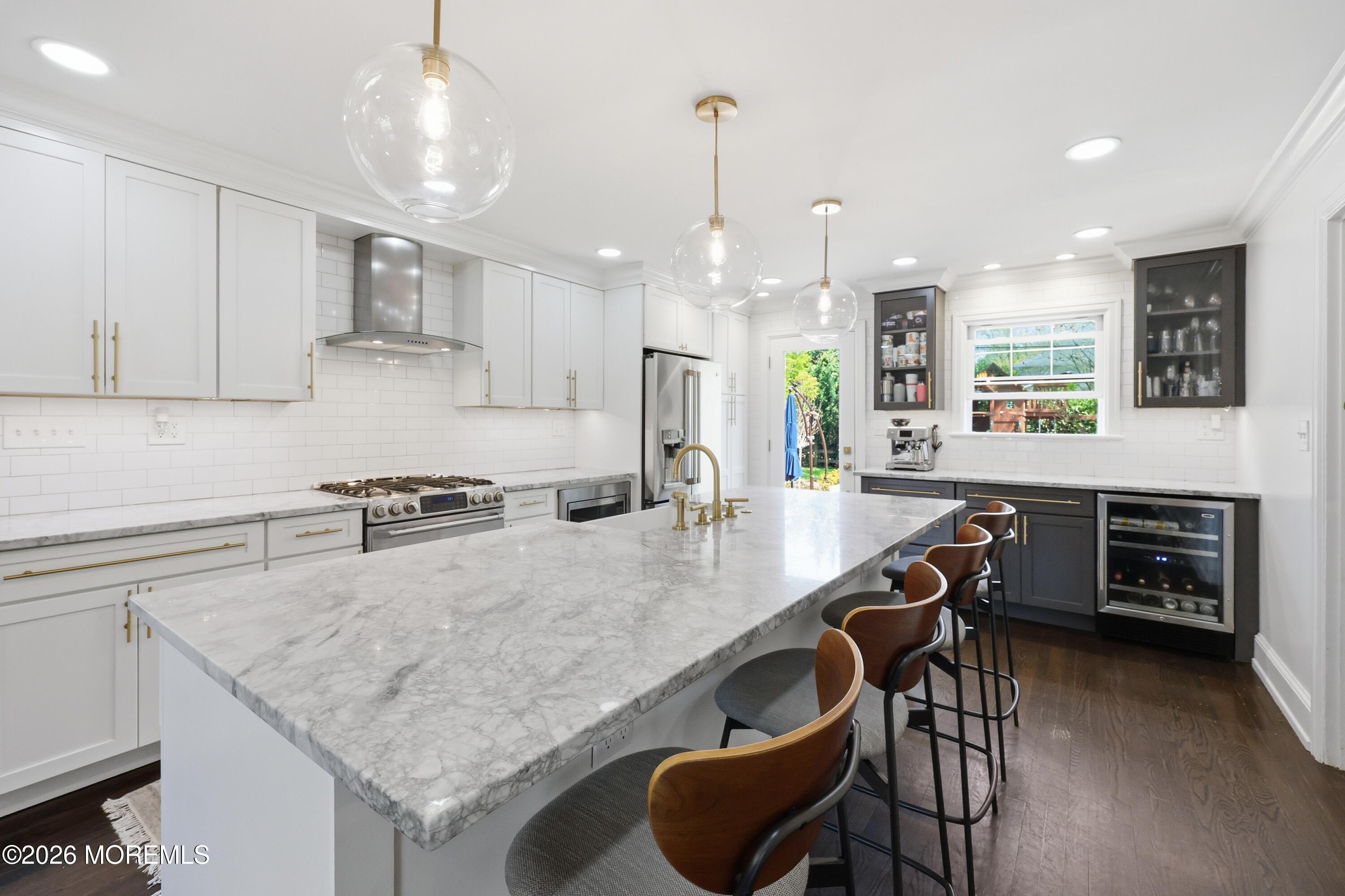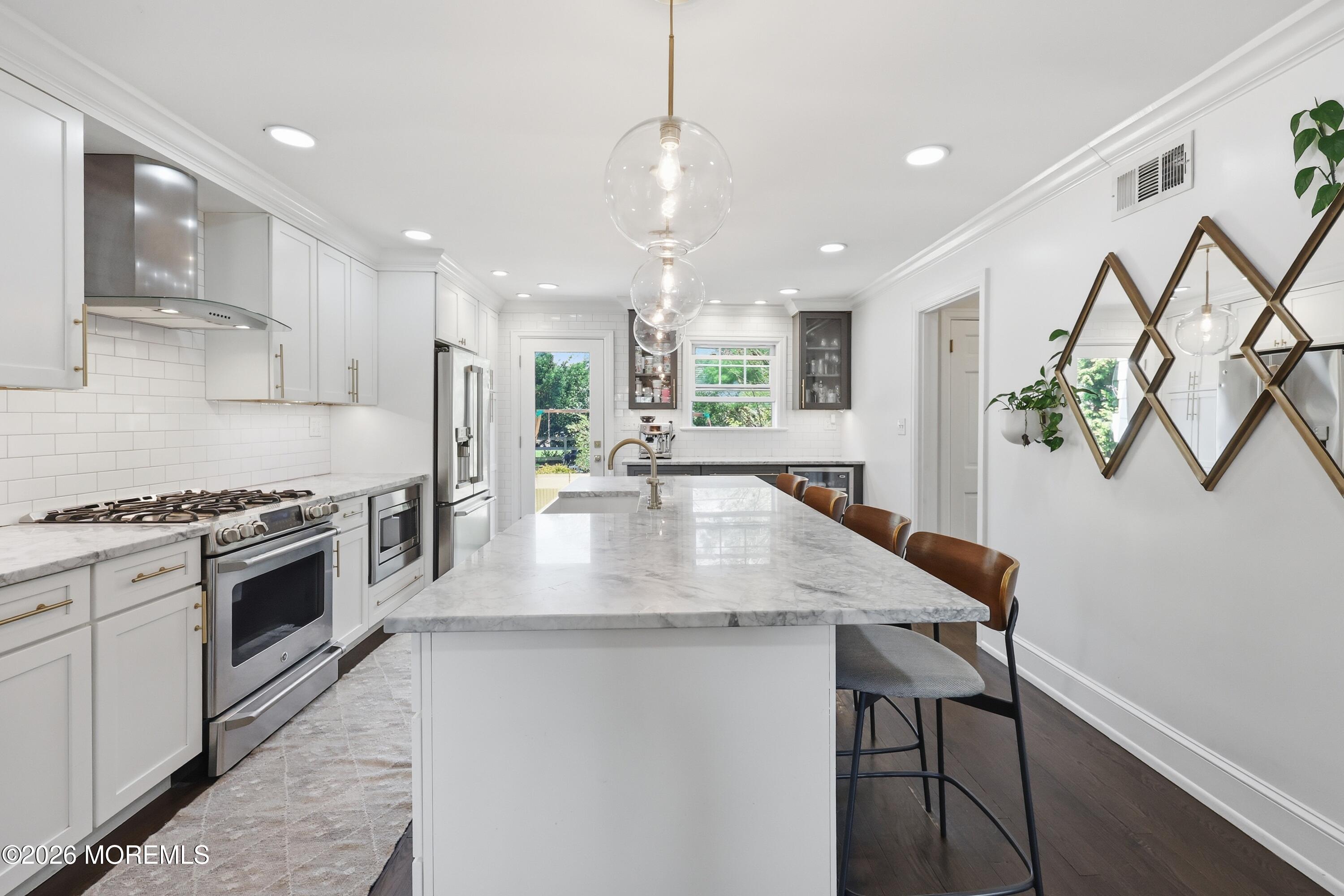 NOW AVAILABLE! Opportunity knocks in one of Shrewsbury's most sought-after neighborhoods! This idyllic 5 bedroom, 3.5 bath Center Hall Colonial is set on nearly half an acre of beautifully landscaped property. Inside, you'll find generously sized bedrooms, hardwood floors, a formal living room with a striking fireplace, and a sun-filled heated sunroom perfect for year round enjoyment. The kitchen is perfection! Light, bright & beautifully updated w/ quartzite countertops, custom cabinets, SS appliances and finished w/ brushed gold fixtures. The serene backyard is fully fenced and offers a peaceful outdoor retreat. Add'l highlights include a full basement and 2-car garage. Ideally located just minutes from the train, Garden State Parkway, ferry access, and local shops. This is one of those MUST SEE homes. Make your appt to see it today!