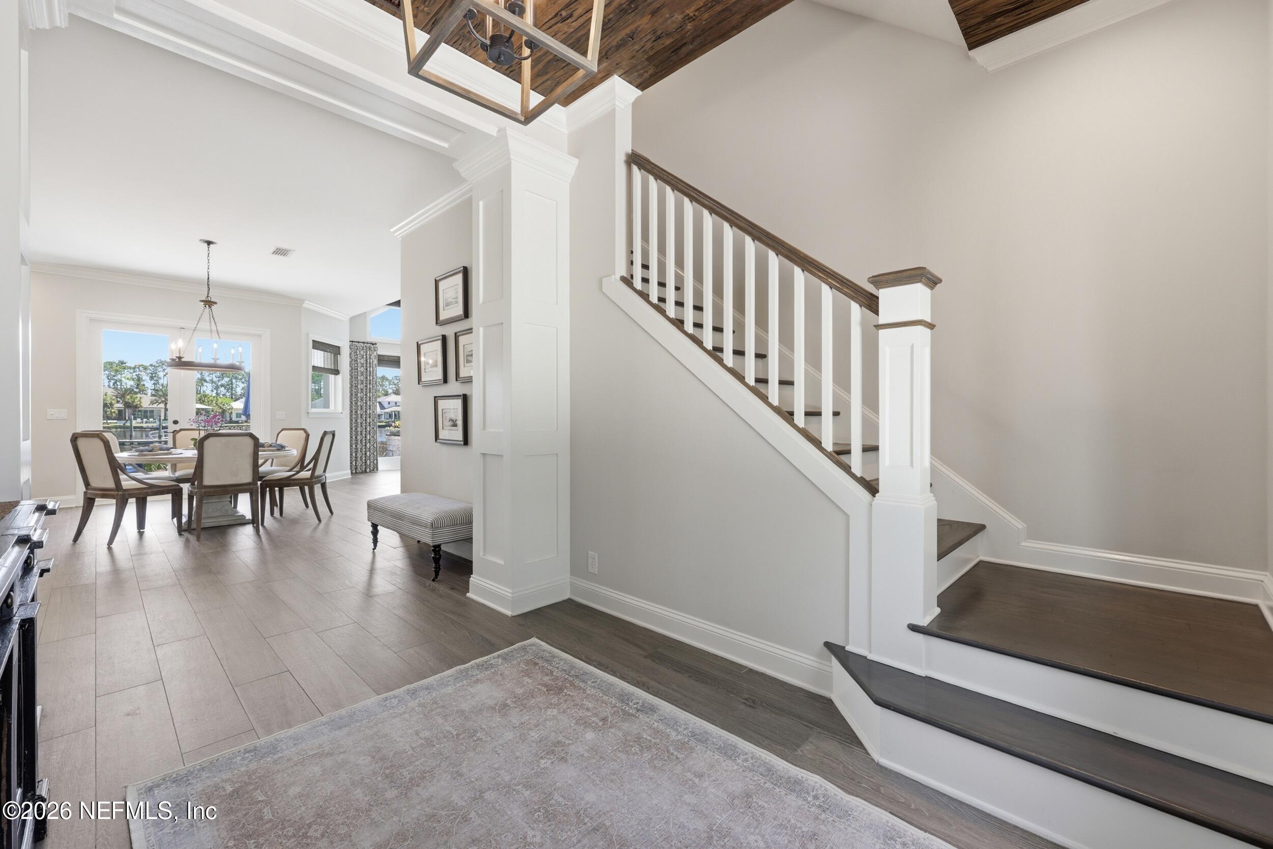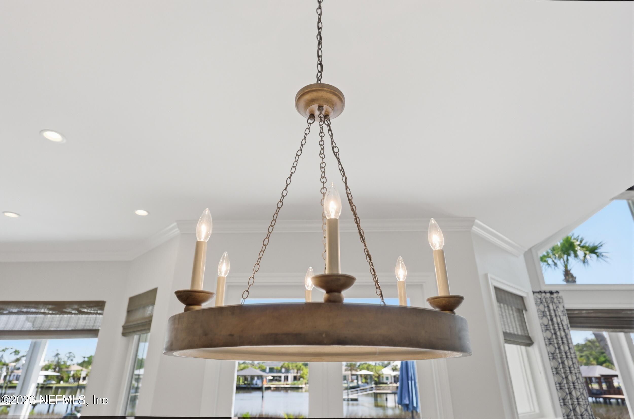 Welcome to the Palm Valley Yacht Club -- at least, that's what the homeowners lovingly call this stunning waterfront retreat nestled within a private enclave of just nine homes. Situated on nearly an acre, this completely remodeled four-bedroom, four-and-a-half-bathroom residence sits on an east-facing rear lot, which means spectacular coastal breezes and breathtaking sunrises over the Intracoastal Waterway. While west-facing neighbors bake in the afternoon heat, you'll be sipping something cold under the gazebo, entertaining beside the summer kitchen, or casting a line from your new Trex dock and floating dock. The outdoor space here is nothing short of extraordinary. A freshly resurfaced remarcite pool with designer tile gleams beneath a new pool cage, surrounded by elegant pavers that extend from the driveway through the back patio. The double-sided gas fireplace connects the vaulted great room seamlessly to the outdoor lanai -- because why choose between inside and outside when you can have both? Inside, wood-look tile floors flow throughout smooth walls and soaring beamed ceilings. The kitchen boasts a Wolf induction cooktop, Bosch built-in refrigerator, Asko dishwasher, and warming drawer. A dedicated bar features walnut countertops, wine fridge, oven, refrigerator, oven and prep sink. The primary bathroom offers a luxurious steam shower, while a loft and dedicated den provide flexible living space. Energy efficiency shines with spray foam insulation, two Navien tankless gas water heaters, a private well eliminating water bills, and new windows throughout. Conveniently located near top-rated Ponte Vedra High School and everyday shopping. Schedule your private showing and discover the Intracoastal lifestyle you deserve.