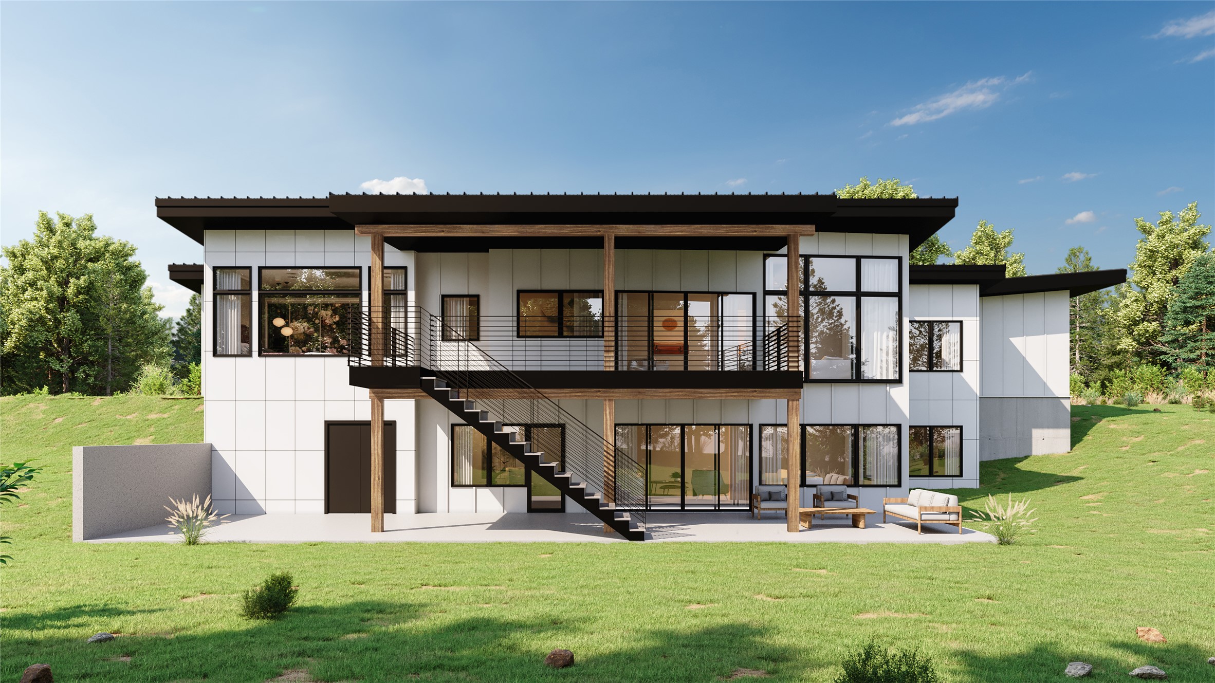 To-be-built custom modern mountain home in the exclusive gated community of Circle H Ranch, ideally positioned above the Missoula Valley to capture expansive mountain and valley views. This architect-designed residence offers approximately 3,731 sq ft, with the option for 5 bedrooms, 3.5 bathrooms, and a 3-car garage, thoughtfully designed for seamless indoor-outdoor living. The main level features an open-concept layout with expansive windows, a chef's kitchen with large island and walk-in pantry, and a dedicated dining area. The primary suite serves as a private retreat with a spa-inspired bath, walk-in closet, and direct outdoor access. Two additional main-level bedrooms offer flexibility for guests, office, or den. The daylight walk-out lower level includes a spacious recreation/media room, two additional bedrooms, and a full bath, with the option to finish for additional living space. Outdoor living spaces include a covered deck, lower patio, and multiple areas designed for entertaining and enjoying the surrounding landscape. Offered as a true custom build, buyers have the opportunity to collaborate with the interior designer to personalize finishes and selections within a structured allowance package while benefiting from pre-designed plans and systems. Pricing reflects construction budgets that alight with the quality, performance, and functionality of a residence of this caliber. Circle H Ranch is Missoula's premier gated community, offering privacy, open space, and access to extensive private trails, all within minutes of the airport and a convenient drive to downtown Missoula.