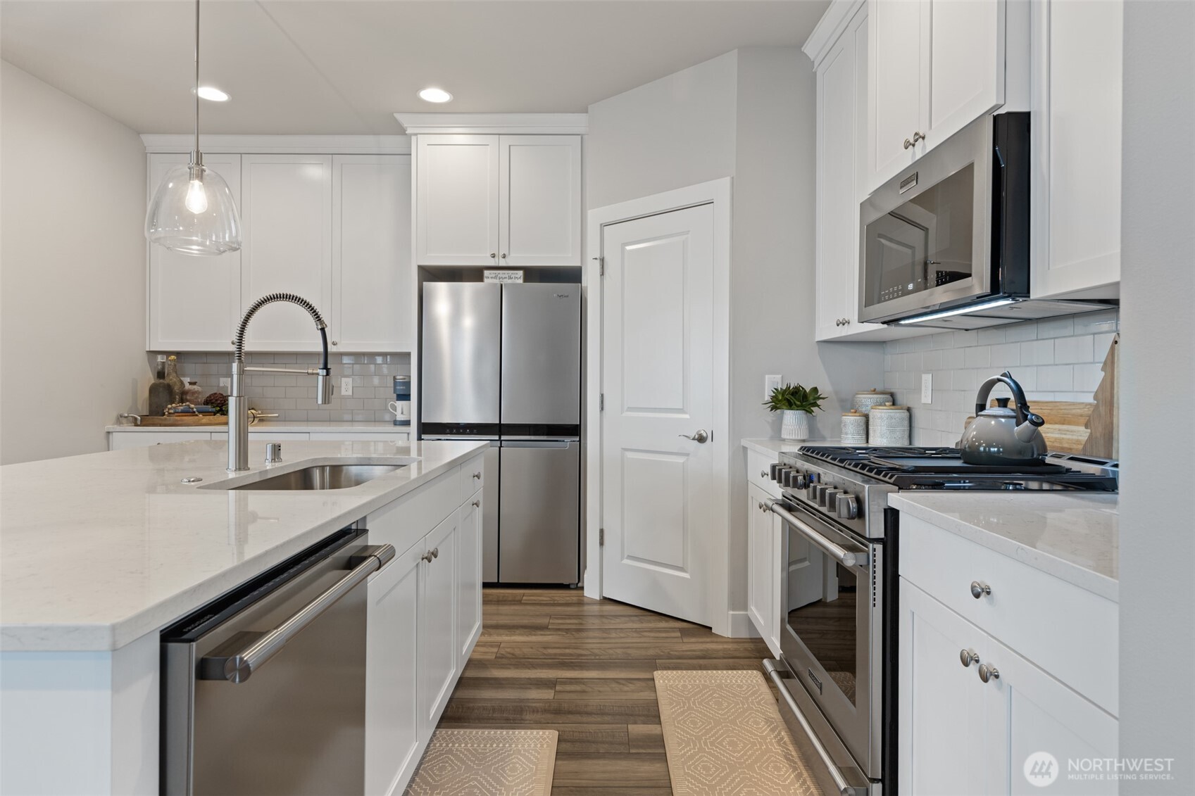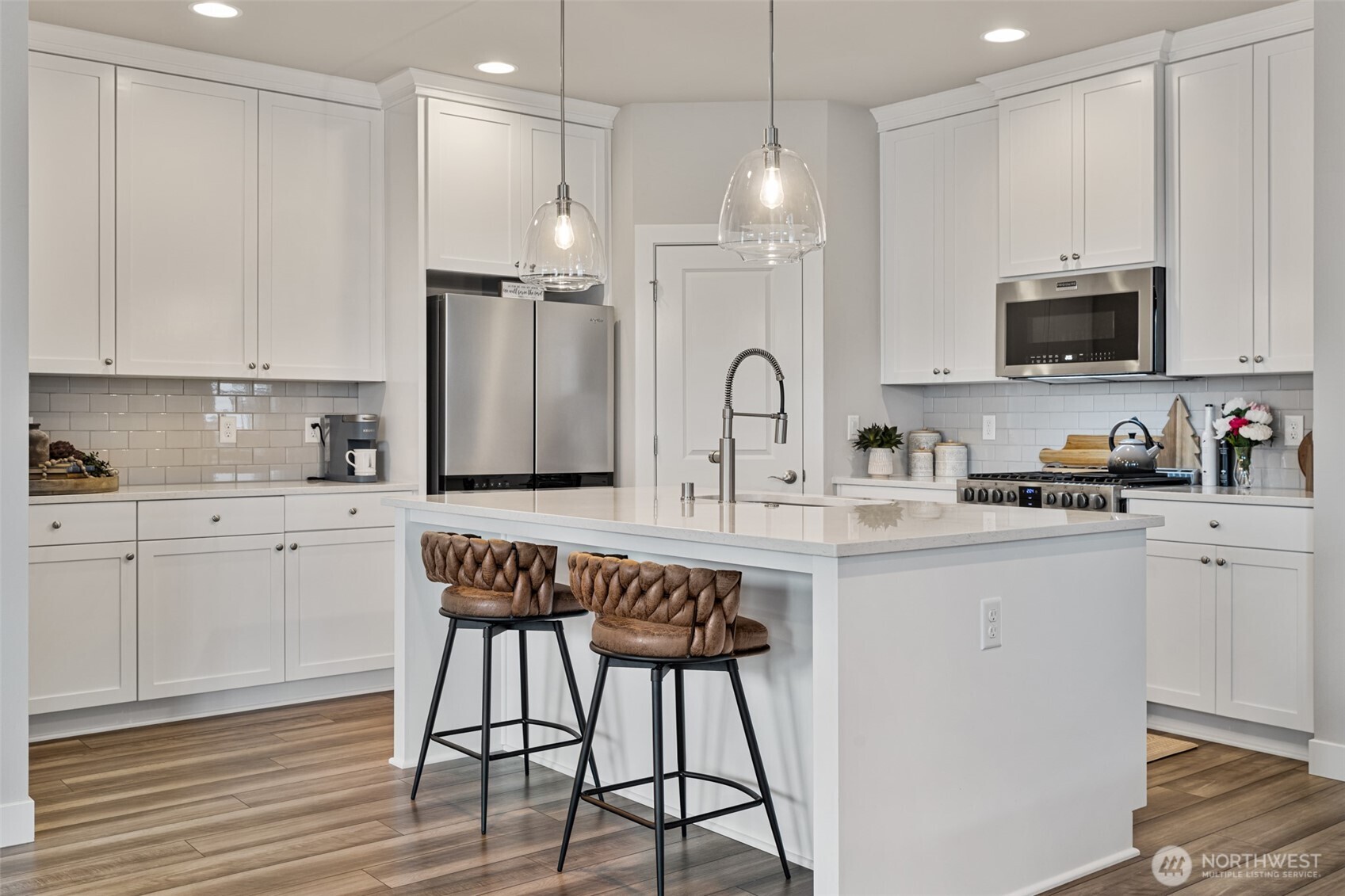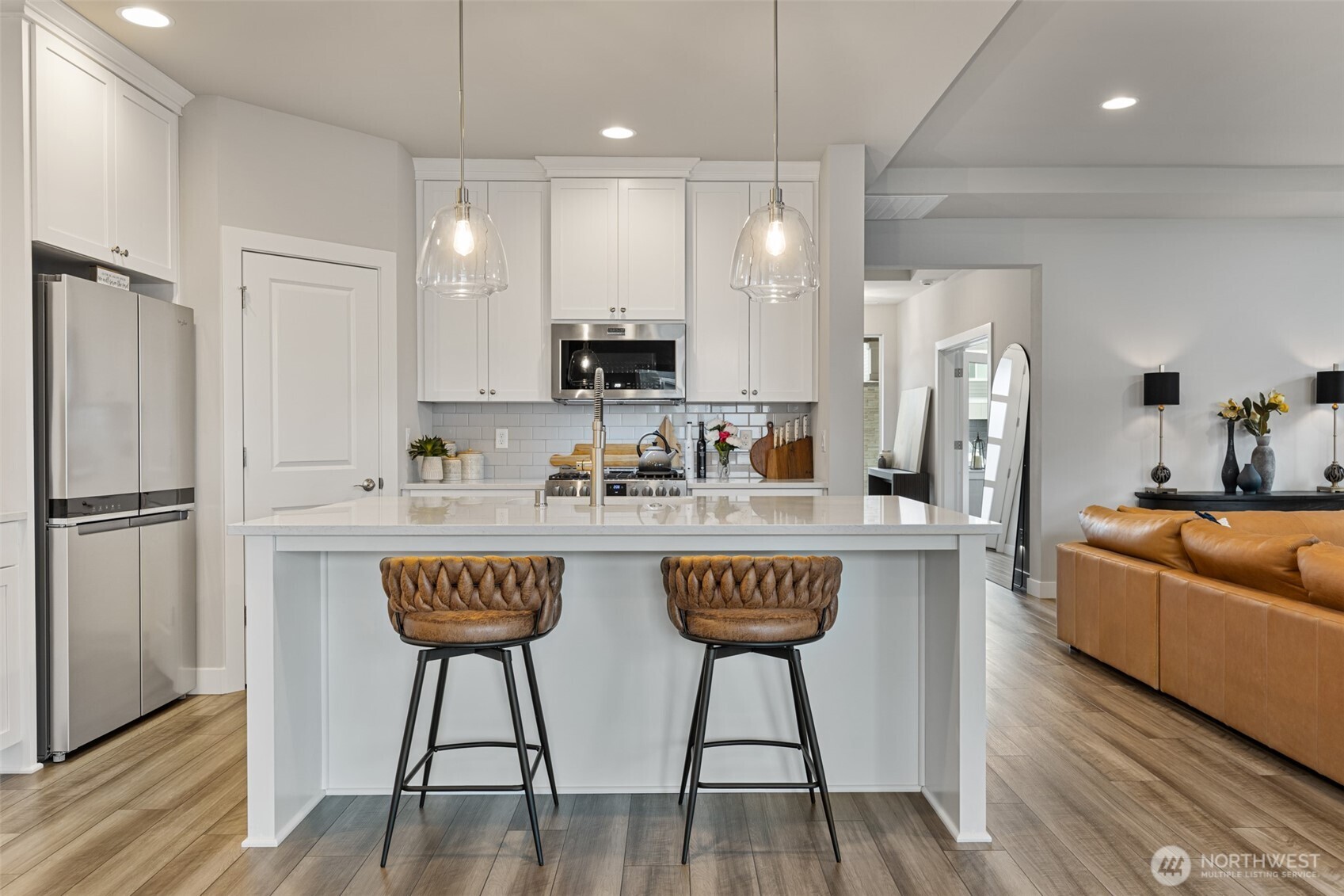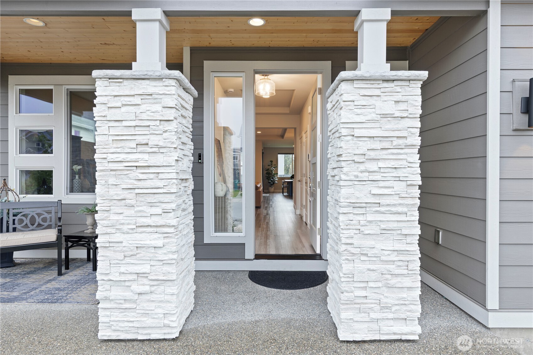 Nestled in the foothills near downtown Enumclaw, this barely lived-in Pacific Lifestyle Home blends modern comfort with a welcoming community atmosphere. While you're close to town and still in King County, Enumclaw serves as a gateway to mountain adventures - whether hiking, exploring, or simply enjoying the natural beauty nearby. Inside, the main floor primary suite offers a spacious walk-in closet and luxurious five-piece bath. The chef's kitchen includes a gas cooktop, stainless steel appliances, a walk-in pantry, and a casual eat-in area. The dining space, accented by a feature wall, opens onto a covered patio - perfect for year-round enjoyment. Custom blinds provide a polished touch and privacy. The main floor also includes an office with double glass doors. Upstairs, a spacious loft and two oversized bedrooms await. The fully fenced yard is ideal for activities and pets. Enjoy Enumclaw's local charm and the mountain lifestyle right at your doorstep!